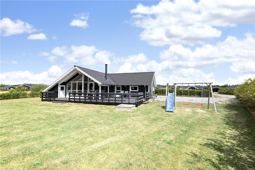 Ferielivet kommer til at foregå i hyggelige, indbydende og børnevenlige rammer, når valget falder på dette dejlige sommerhus, der ligger for enden af en lille sidevej på en stor, grøn grund.