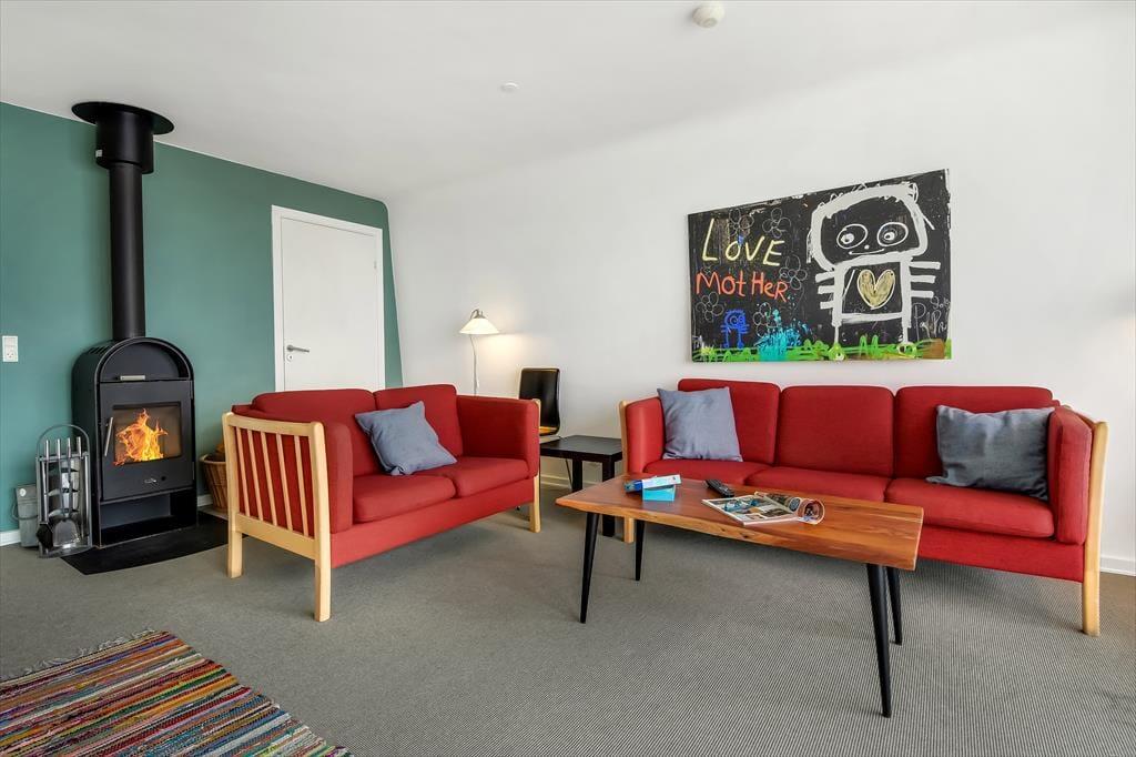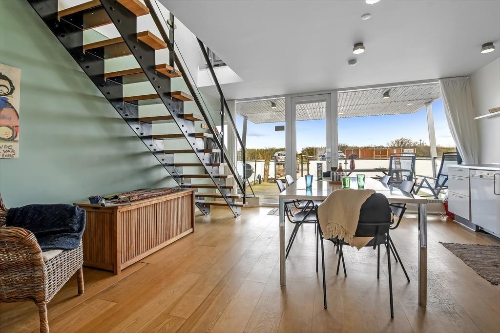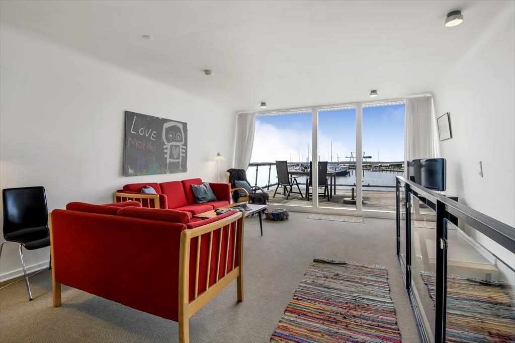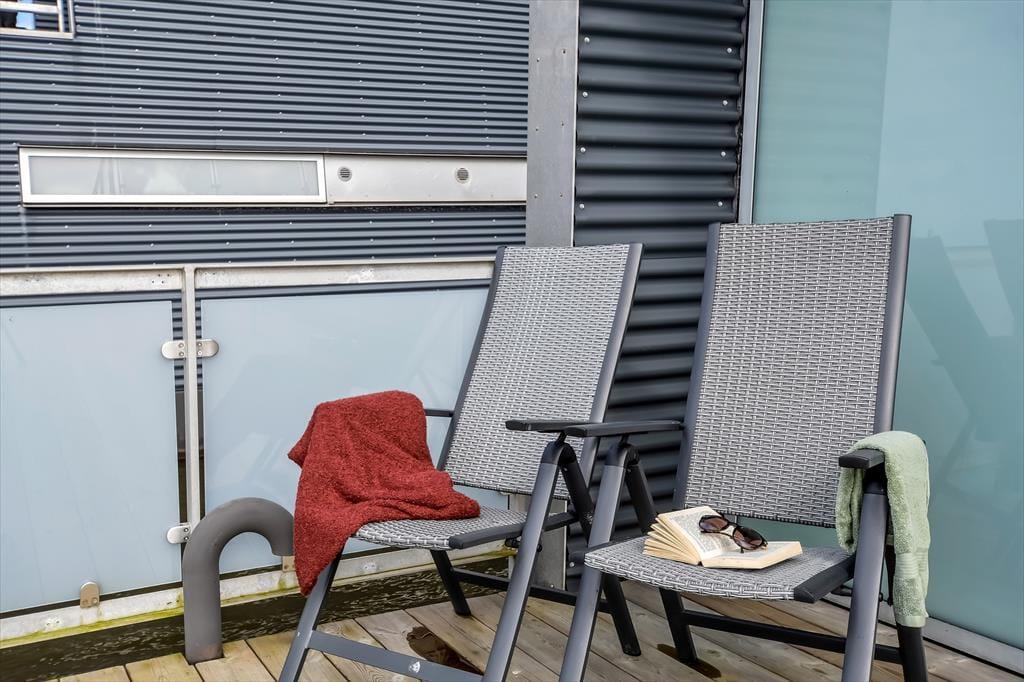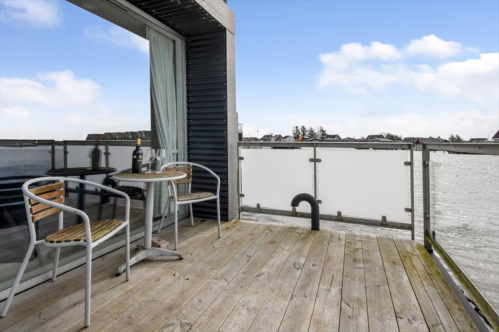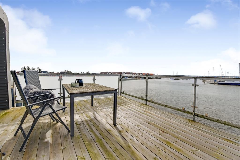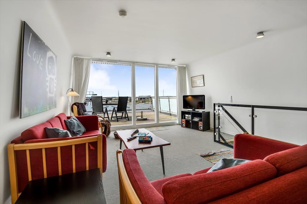 Der er lagt op til en sjov og anderledes sommerhusferie, når den foregår på en husbåd. I vågner op til bølgeskvulp om morgenen, og dagen igennem har I frisk havluft i næseborene og udsyn over vandet. Samtidig er det ikke en frit flydende ferieoplevelse, for båden er fast forankret i havnen, og den er desuden et stabilt byggeri på to etager, der i alt byder på 105 velindrettede kvadratmeter inden døre. Atmosfæren er let og luftig, for farvetonerne er lyse, og de store vinduespartier sørger for et generøst lysindfald. I stueplan kan I hygge jer sammen i det store spisekøkken, og hvis I hellere vil sidde i en blød sofa nær brændeovnen, skal I gå op til førstesalens dejlige udsigtsstue. Husbådens tre soveværelser er fordelt både oppe og nede, mens de to badeværelser – hvoraf det ene er udstyret med spabad og det andet med sauna – begge ligger i stueplan. Vil I gerne have hunden med på ferie, betales et ekstragebyr på DKK 400.