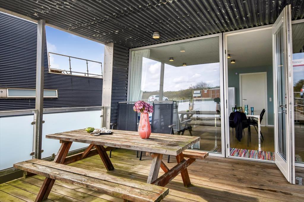 Ude under åben himmel kan I nyde livet på de tre terrasser – eller soldæk, om man vil. I stueplan er det dejligt at sidde både i for- og agterstavnen, men hvis I virkelig vil beundre panoramaudsigten, skal I gå op til førstesalens udeareal, for heroppefra har I et godt overblik over havnen og frit udsyn til de smukke solnedgange over fjorden.