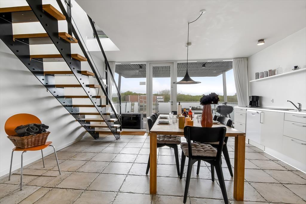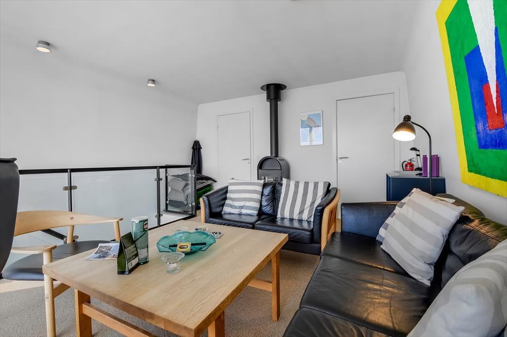 På ”Jojka”får I den unikke oplevelse af at være tæt på vandet døgnet rundt – uanset om I opholder jer indenfor eller sidder på soldækkene. Og selvom det er en husbåd, kan I se frem til det samme komfortniveau som i et moderne sommerhus, for rummene er lyse, luftige og smagfuldt indrettet af en indretningsarkitekt. Inden døre får I 105 m² at brede jer på fordelt på to etager: I stueplan ligger et soveværelse, et rummeligt spisekøkken og hele to badeværelser, hvoraf det ene er udstyret med spabad og det andet med sauna. Går I op på førstesalen, kommer I til en dejlig stue med brændeovn, bløde siddemøbler og store vinduespartier, så afslapningsstunderne foregår med fjorden som smukt bagtæppe. Yderligere to soveværelser ligger også her på etagen, og derfor er der i alt plads til seks feriegæster.
