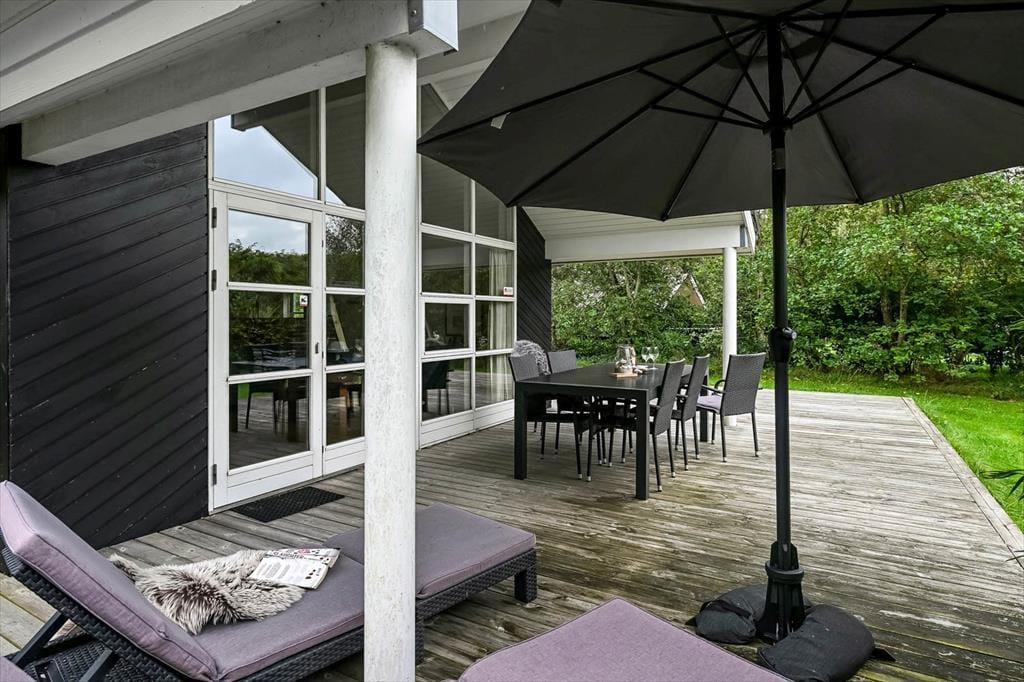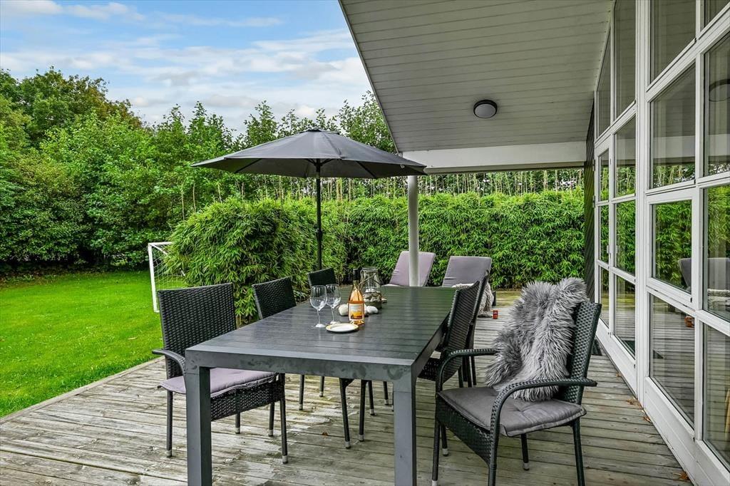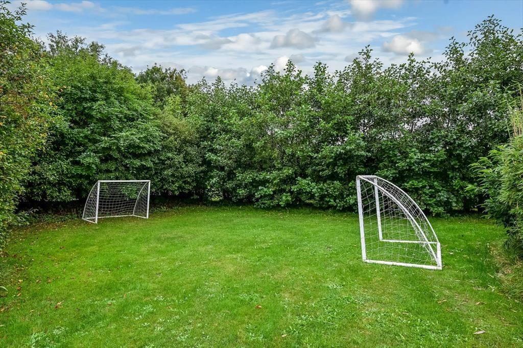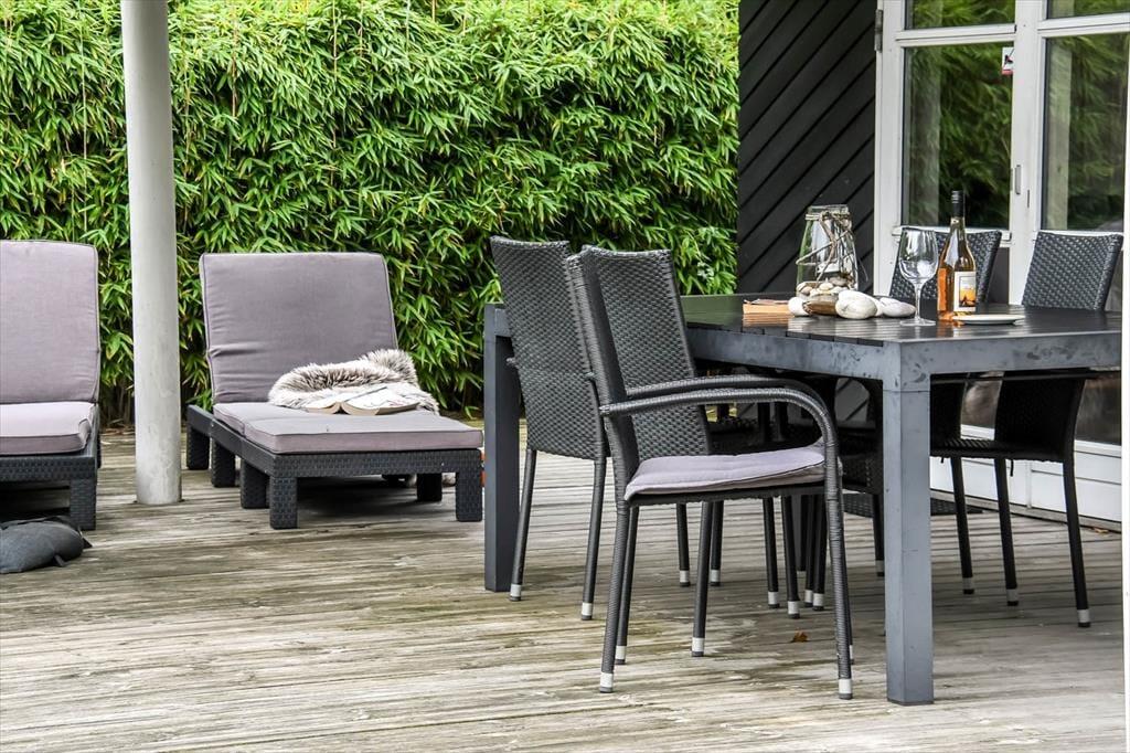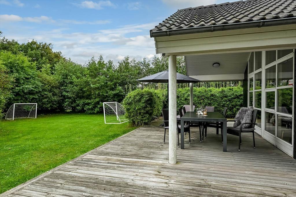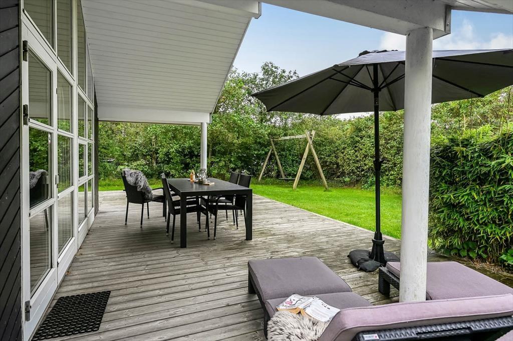 Ude i det fri har I ligeledes fine forhold, for her kan I nyde livet i fulde drag på den grønne, afskærmede grund. Til de yngste er der gyngestativ og fodboldmål, og græsplænen kan også sagtens fungere som bane, når I vil spille vikingespil eller andre havespil. Vil I hellere slappe af i en god liggestol, kan I slå jer ned på det sydvendte terrassemiljø, der byder på både åbne og overdækkede områder.