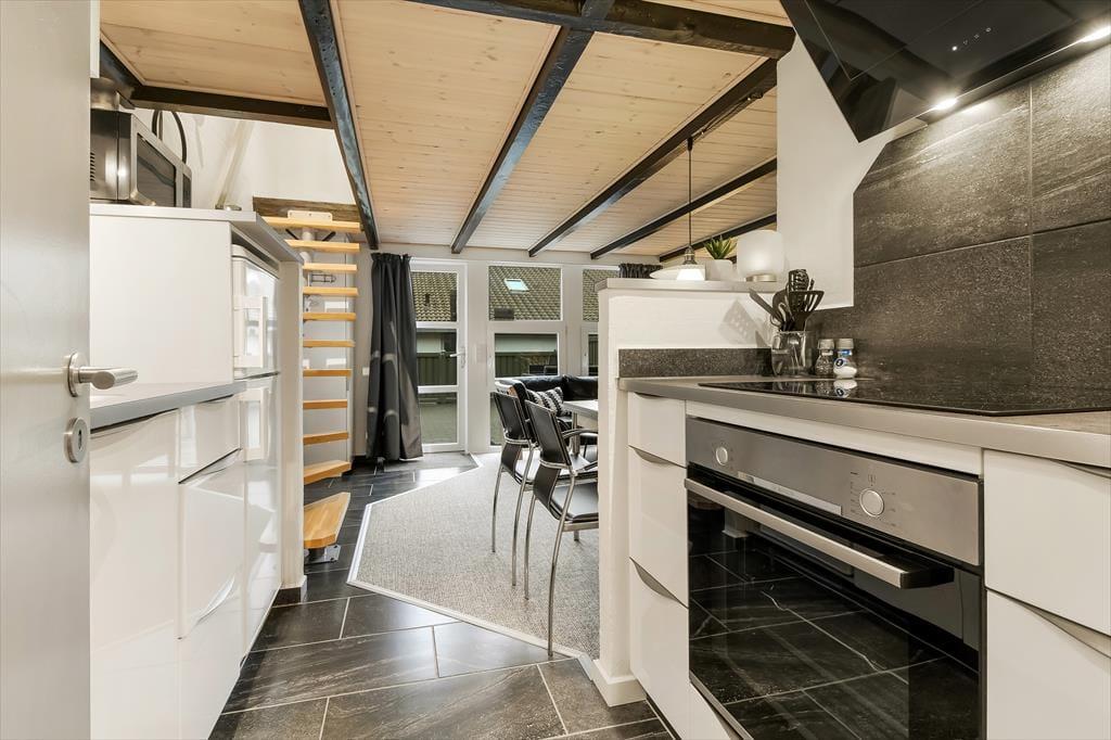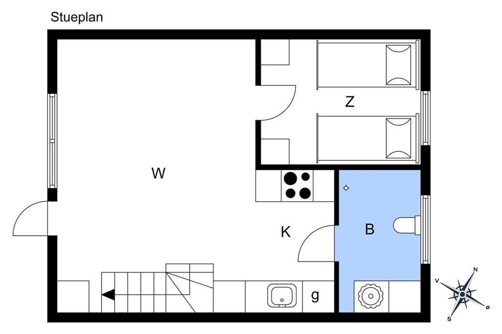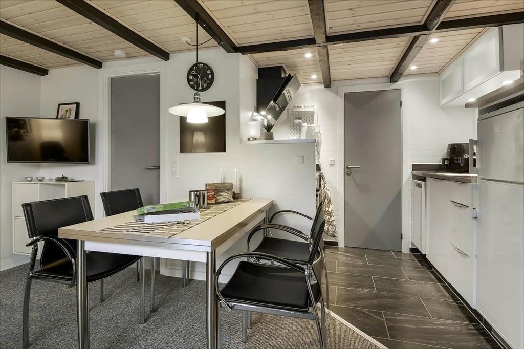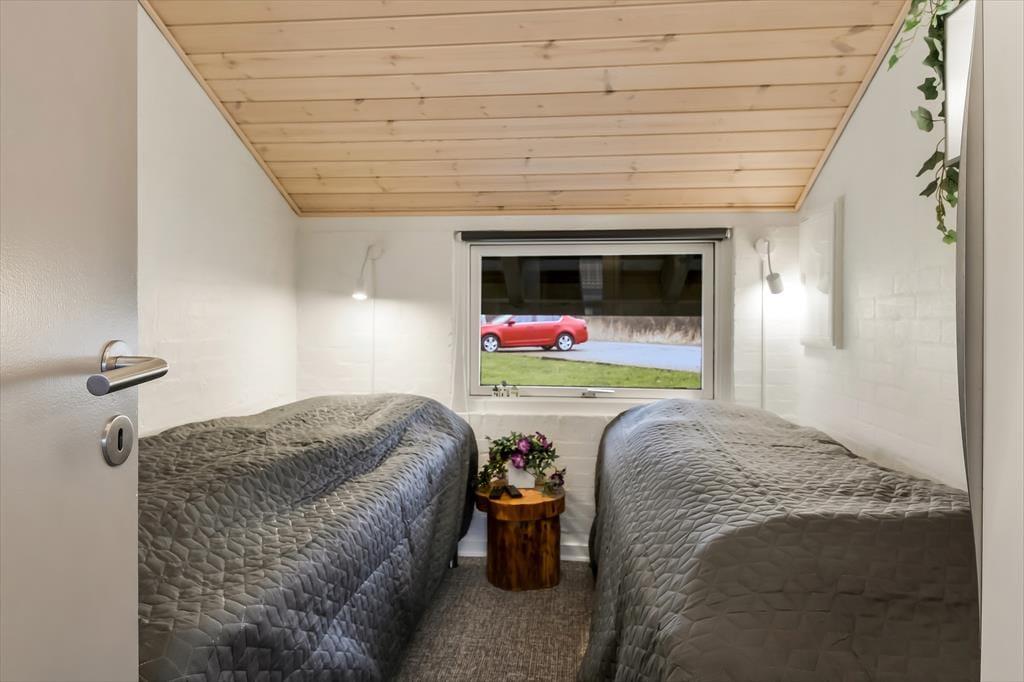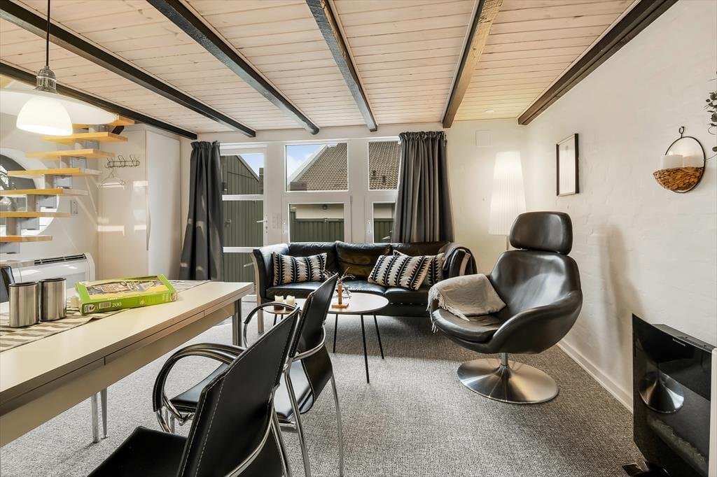 Ferielejligheden er blevet renoveret i 2020, og det fremgår tydeligt, at opdateringen er sket på særdeles grundig vis. Det færdige udtryk er nemlig lyst og lækkert, og møblementet er nøje udvalgt, så det passer godt ind i alle rum. I stueetagen ligger stue og køkken samlet som et dejligt opholdsrum, hvor I kan lave mad, se TV og slappe af i sofaafdelingen med en god bog. Et pænt badeværelse hører ligeledes med til planløsningen foruden et godt soveværelse, der er indrettet med praktiske garderobeskabe og to elevationssenge. Tager I trappen op ovenpå, finder I yderligere to elevationssenge, så i alt kan fire personer sove komfortabelt her i ferieboligen.