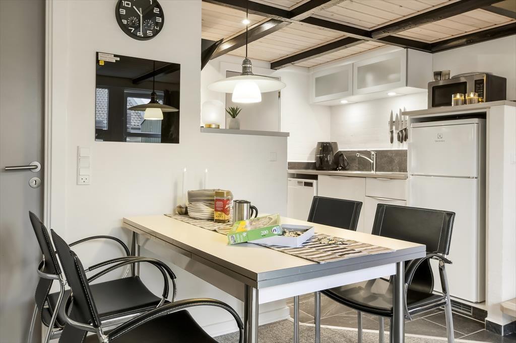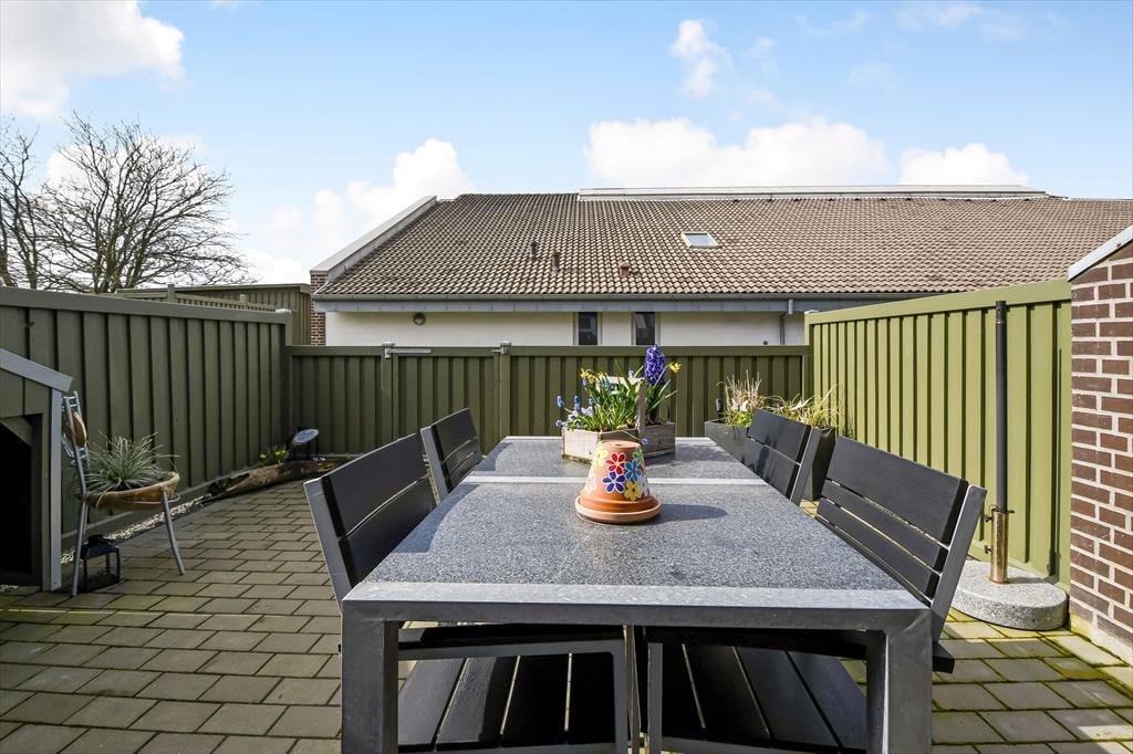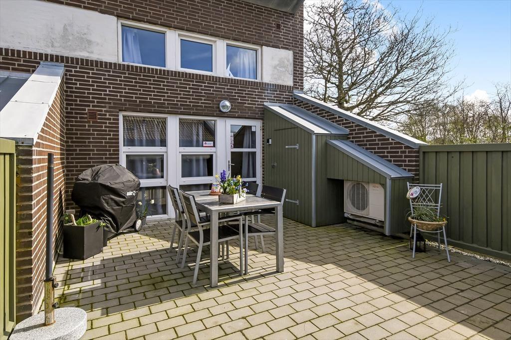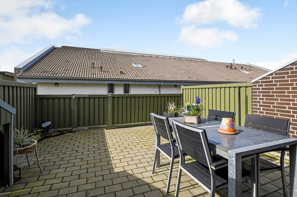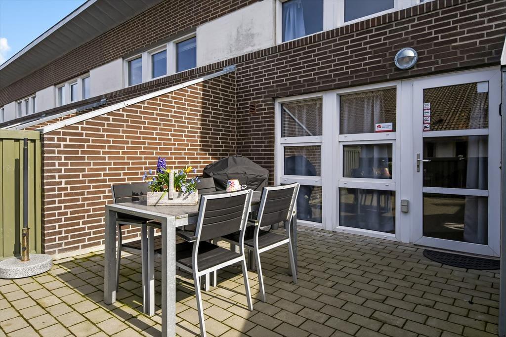 Komfortabelt får I det bestemt også ude i det fri på den sydvestvendte terrasse, der er udstyret med gode havemøbler, parasol og gasgrill. Lejligheden ligger i den ene ende af ejendommen, så det er nemt at smutte ud på græsset, hvis børnene vil lege. I har desuden kort afstand til feriecentrets legepladser, hvor de yngste blandt andet kan hoppe på hoppepude og gynge. De ældre feriegæster kan også få glæde af de fælles udearealer, som blandt andet byder på boldbane, petanquebane og fiskerenseplads.