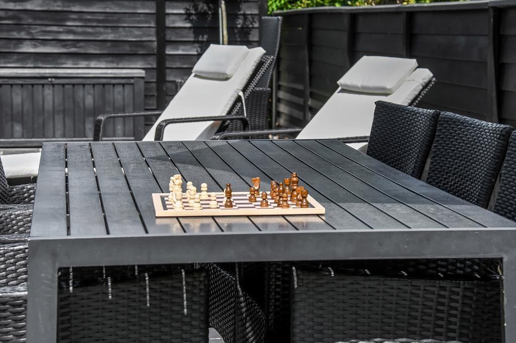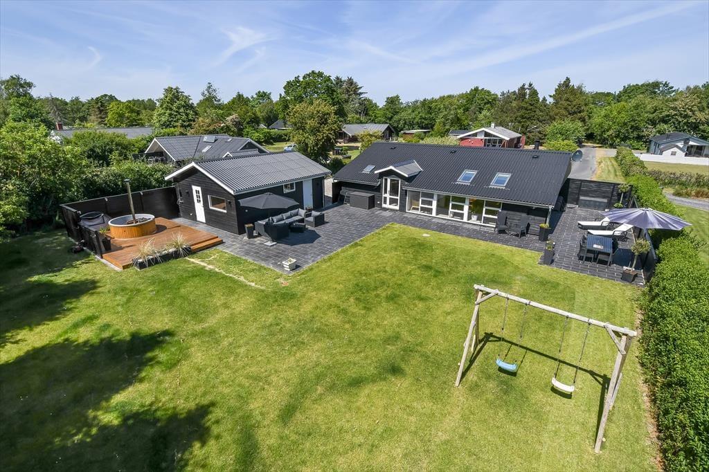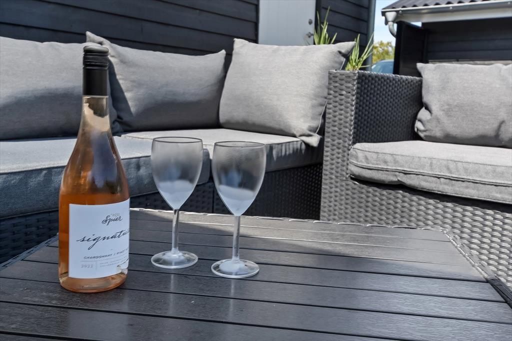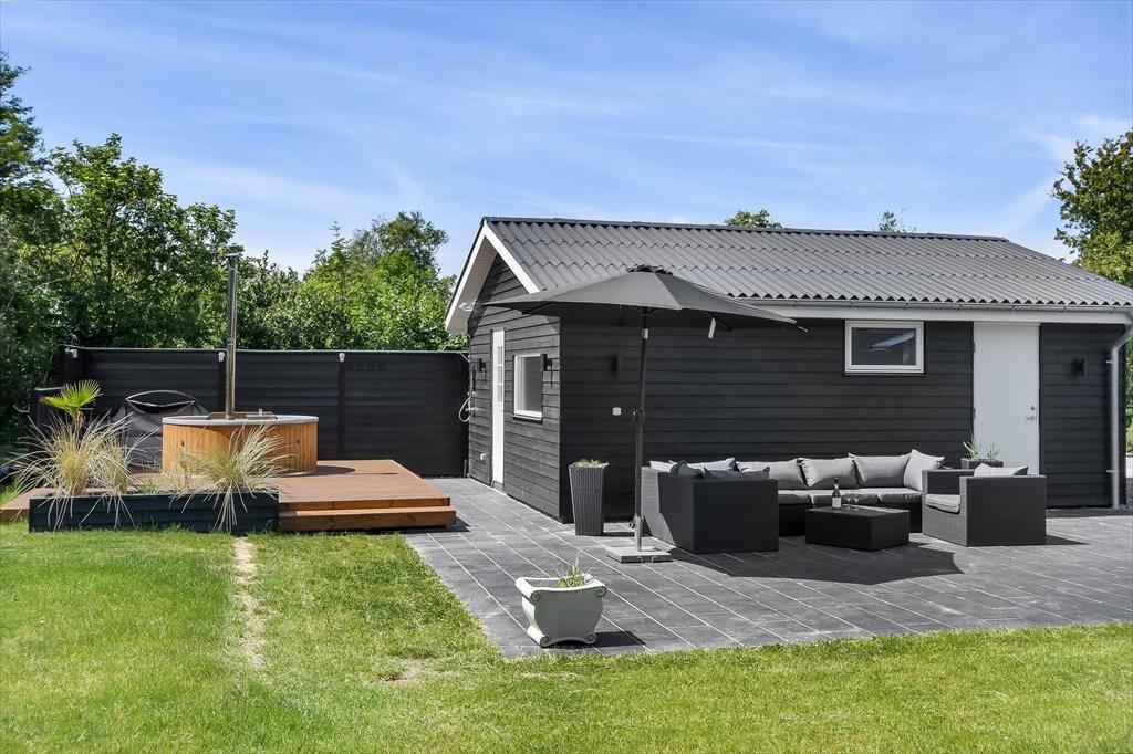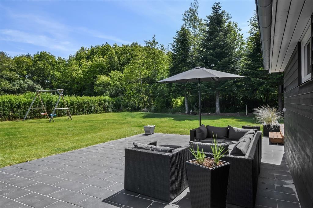 Sommerhuset ligger på en 1000 m² stor grund, hvor der er masser af plads til både afslapning og aktiviteter under åben himmel. Start dagen med en kop kaffe på terrassen, mens solen langsomt stiger op over trætoppene. Senere kan du nyde solen i liggestolen, tage et spil kroket på græsplænen eller bare læne dig tilbage og lytte til fuglenes kvidren. Når aftenen falder på, kan I tænde op i grillen og samles omkring et lækkert måltid i de lune sommeraftener. Børnene vil elske den store have, hvor de kan lege frit, mens de voksne nyder roen og den friske luft.