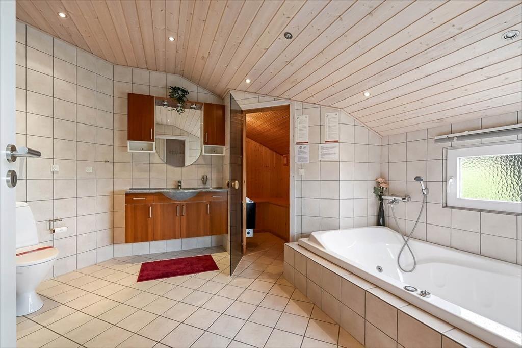 Sommerhuset, der er opført i 2005, har fået en opdatering i 2020, så det fremstår lyst, velholdt og særdeles indbydende. I alt har I 94 velindrettede kvadratmeter at brede jer på inden døre, der blandt andet byder på tre gode soveværelser og to badeværelser. På det største badeværelse er der ikke bare tørretumbler og vaskemaskine, men også et spabad og en sauna, så der er både tænkt på de praktiske og de mere luksusprægede forhold. En anden skøn detalje er, at der er gulvvarme – ikke kun på badeværelserne, men også i køkkenet og stuen, der ligger samlet centralt i huset. Stuens brændeovn skal nok også gøre lykke på en kølig dag, og til aftenens hyggestunder er det rart, at der er TV med parabol og Chromecast.