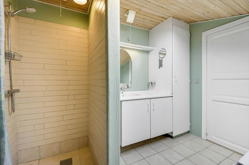 Sommerhuset er renoveret i 2018, så de mange indendørs kvadratmeter fremstår velholdte og indbydende. Hyggelig er atmosfæren bestemt også– ikke mindst i opholdsafdelingen, hvor køkken-alrum og stue ligger i åben forbindelse, blot adskilt af et par trin. Når I hygger jer her, har I godt overblik over de grønne, fredede omgivelser og kig til fjorden, og så er der både brændeovn og varmepumpe, der gør det let at holde varmen selv på kølige aftener. Huset har desuden et badeværelse og tre gode soveværelser, der giver plads til i alt seks feriegæster. Desuden er der i 2021 kommet et anneks på 10 m² med to enkeltsenge og toilet med håndvask, så her er der plads til yderligere to personer.