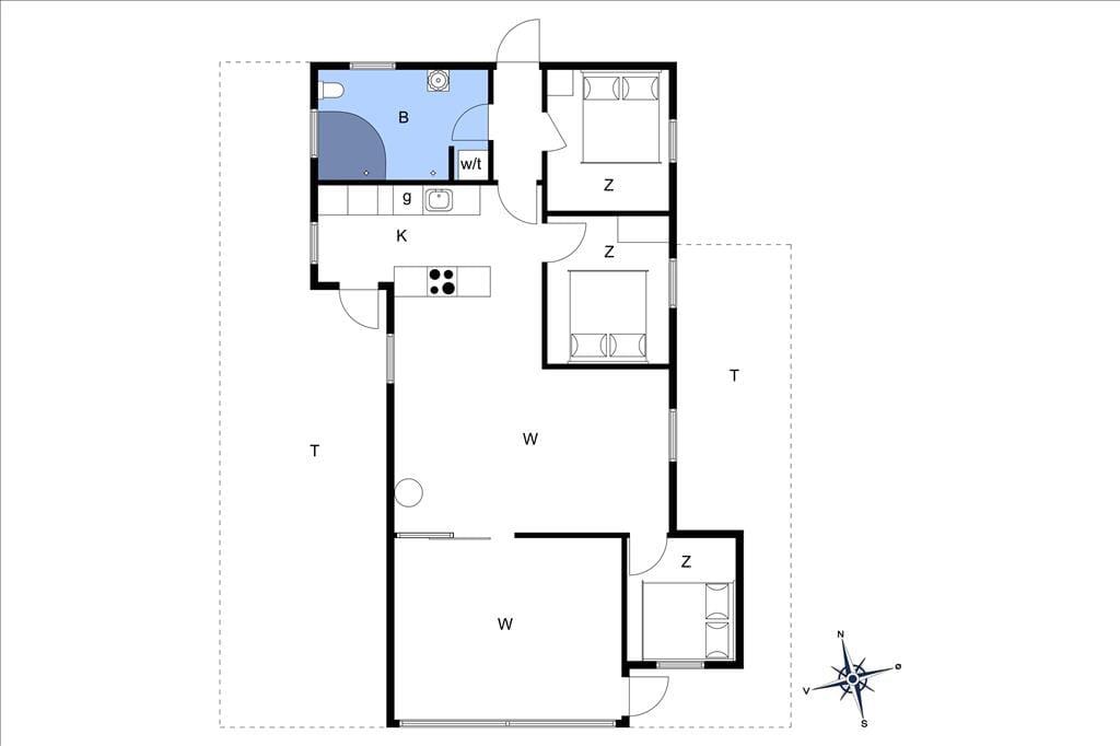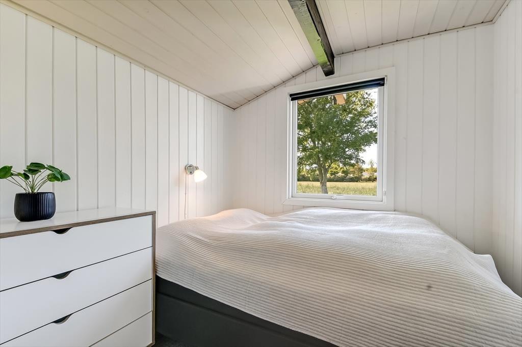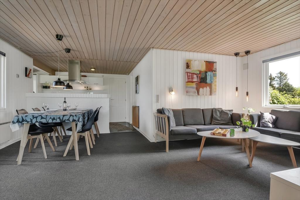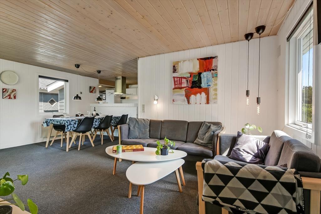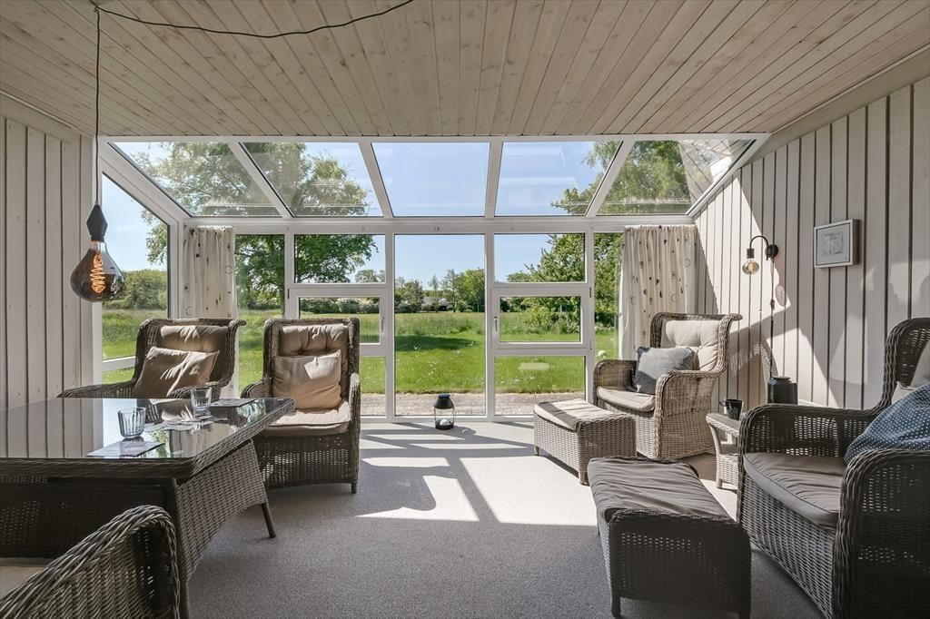 Et spabad, en brændeovn og en udestue er nogle af de lækre detaljer, der gør ferielivet særdeles behageligt her i huset. Spabadet er ikke overraskende placeret på badeværelset, så hvis I trænger til wellness og total afslapning, er det her, det foregår. Brændeovnen står i det hyggelige opholdsrum, hvor stue og køkken er forenet på velfungerende vis. Går I ud gennem glasdøren, kommer I til udestuen, der er et velindrettet og dejligt lyst rum med et stort, sydvendt vinduesparti. Soveværelser er der tre af, og de er alle indrettet med dobbeltseng, så der er sovepladser til op til seks personer.
