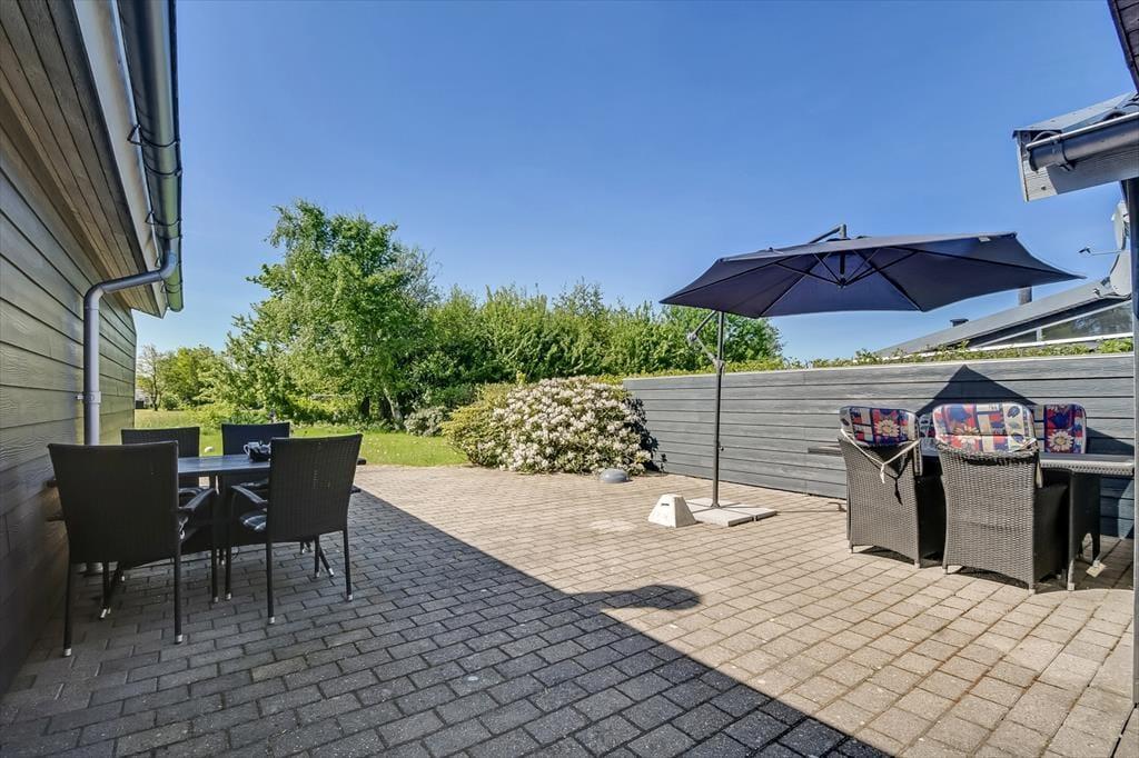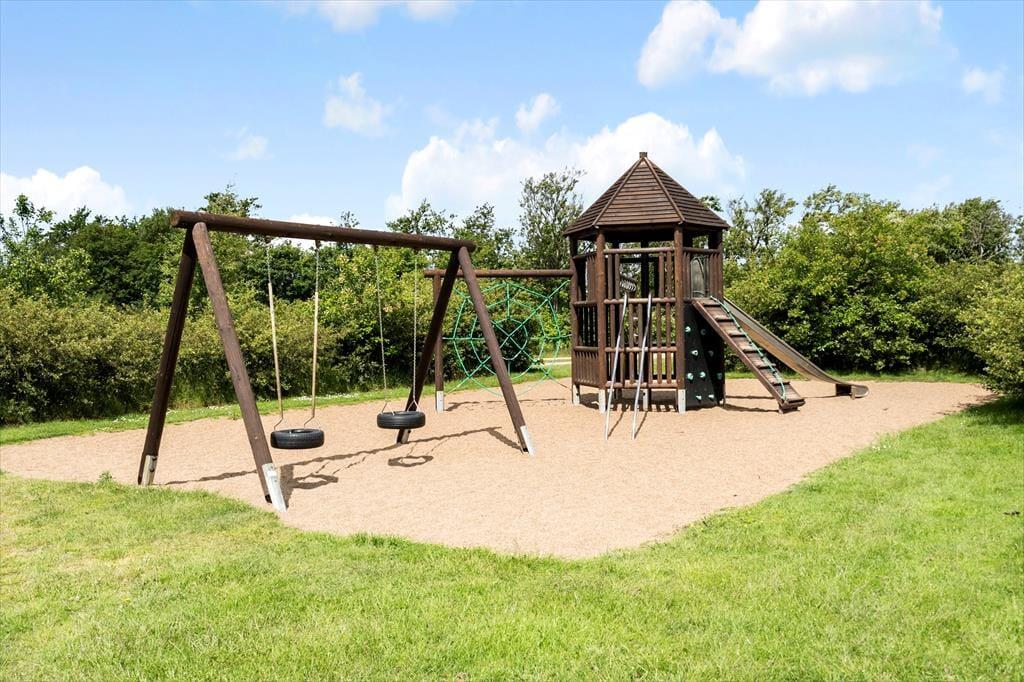 Sommerhusets grønne have er det helt rette opholdssted, når solen står højt på himlen over Bork Havn. Rundt om huset er der anlagt flere terrasseområder, blandt andet en herlig krog med gode solforhold og afskærmning. I forhaven kan bilen parkeres på det grusbelagte areal, mens baghaven er perfekt til leg og boldspil med sin store græsplæne, gyngestativ og sandkasse.