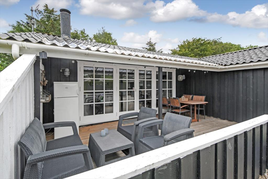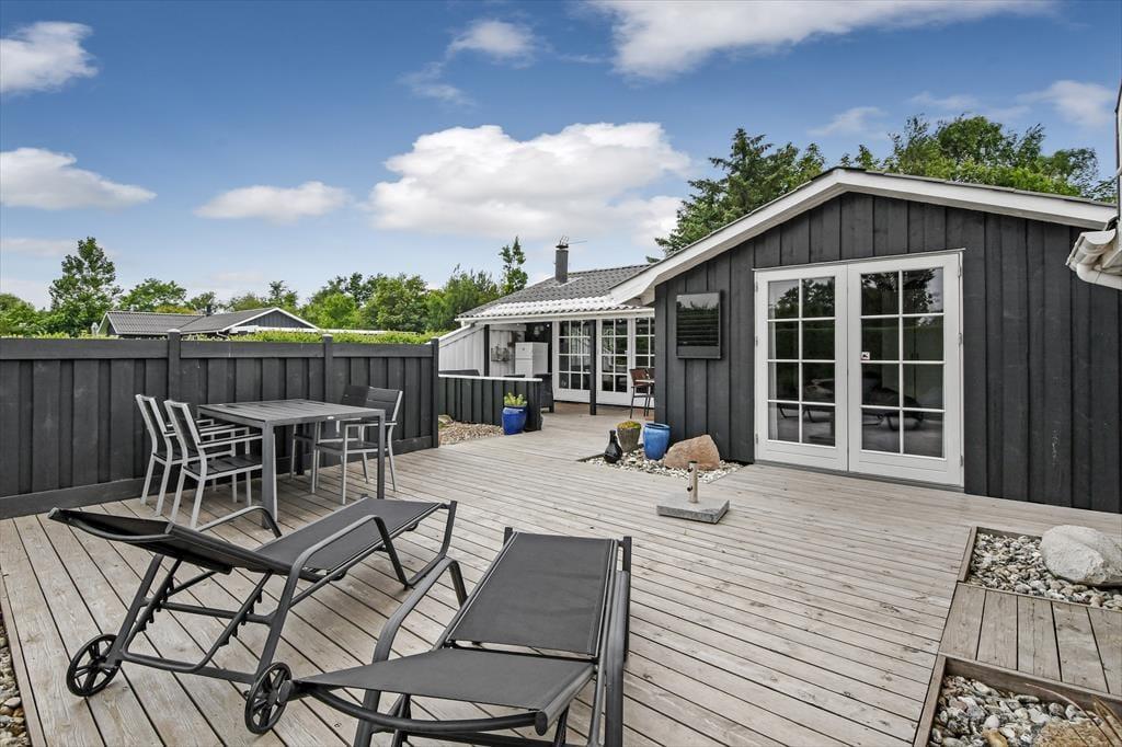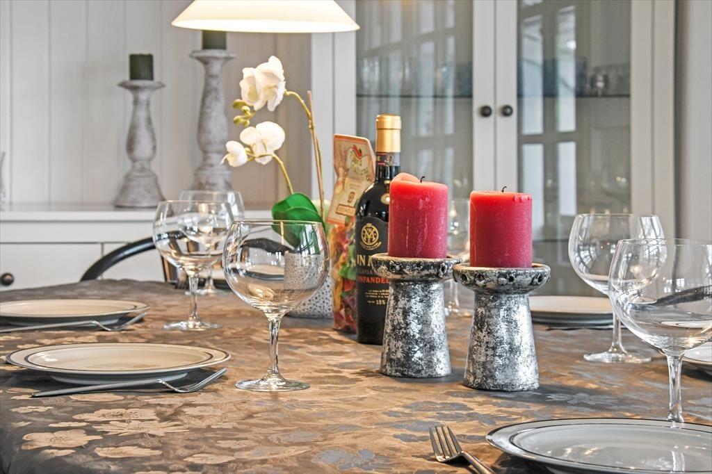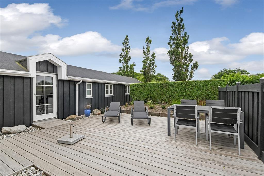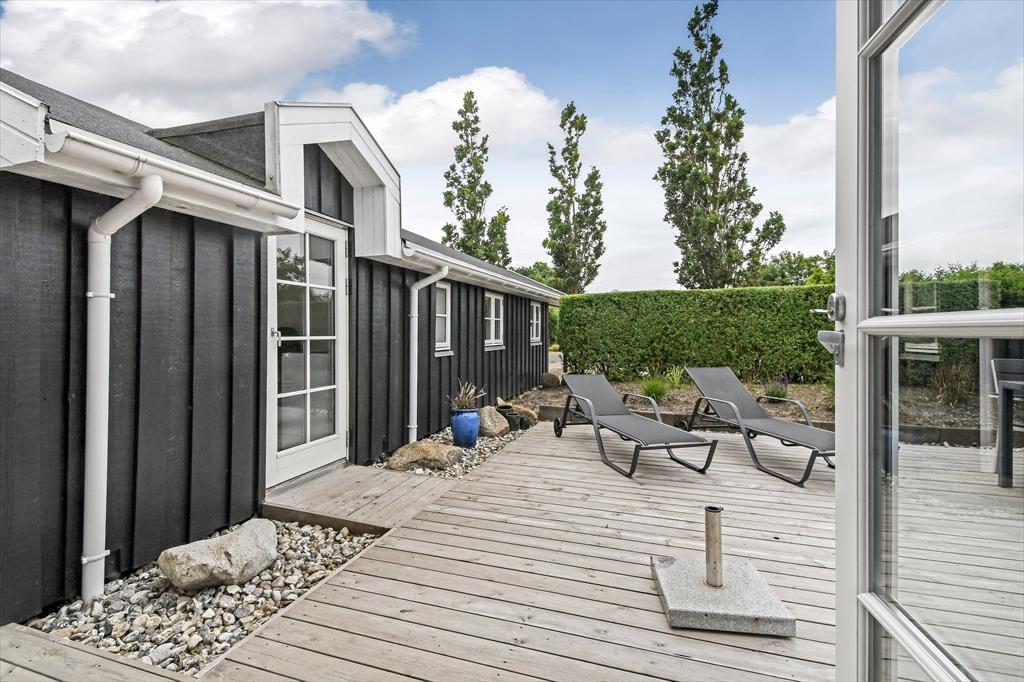 Ude i det fri har I også plads til at boltre jer på den 1.024 m2 store grund, som skærmes af grøn randbeplantning og en tæt hæk. Den velholdte græsplæne kan oplagt danne rammen om diverse havespil, og trænger I til en stille stund, er der etableret flere hyggelige opholdspladser rundt om huset og annekset. Allermest tillokkende er formentlig det store, delvist overdækkede og afskærmede terrassemiljø, som er perfekt til udendørs feriemåltider, tilbagelænet afslapning og hyggestunder med familien.