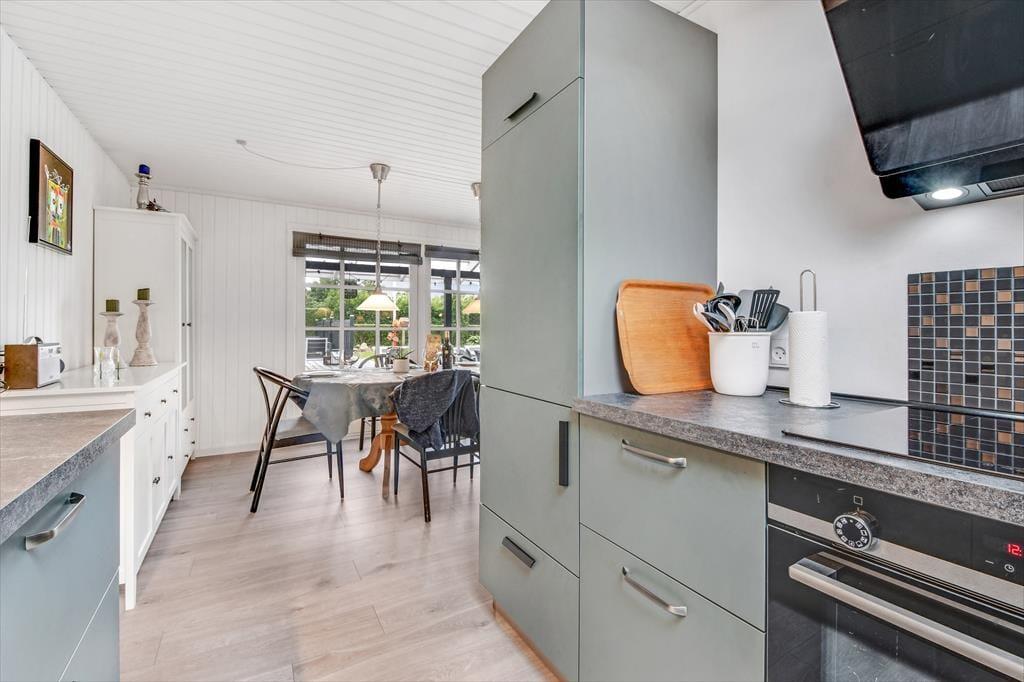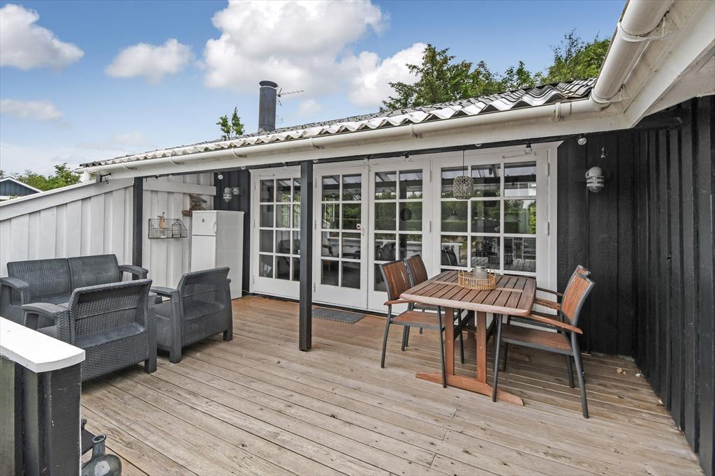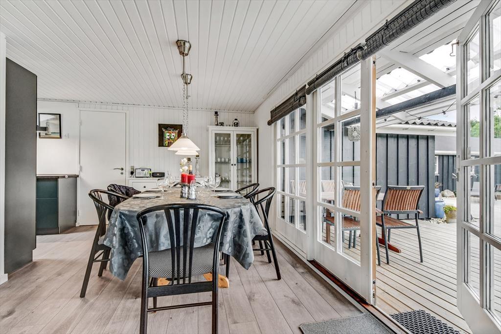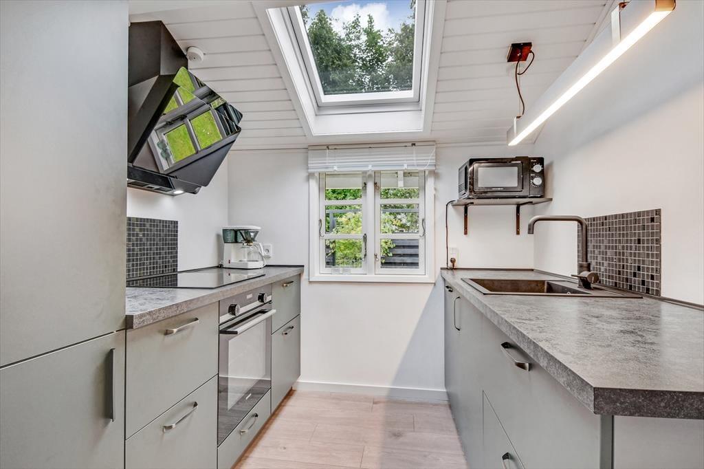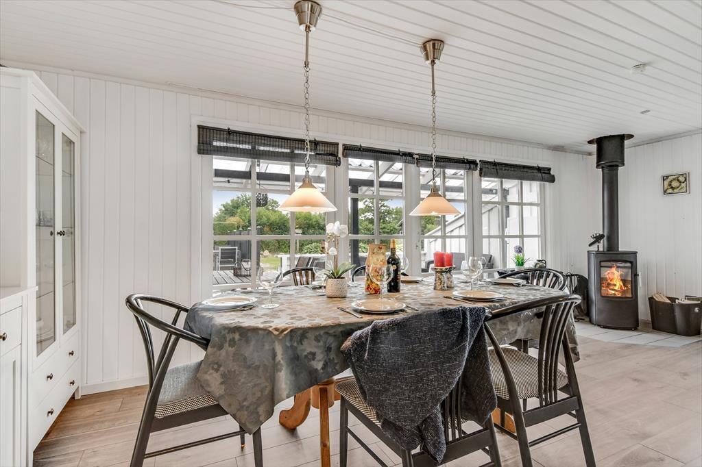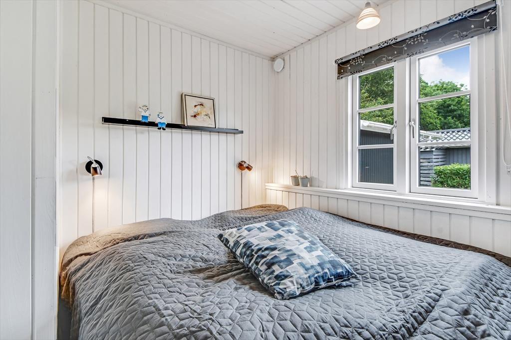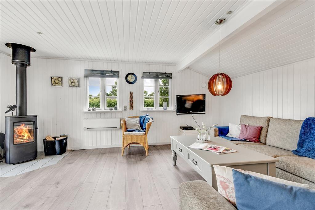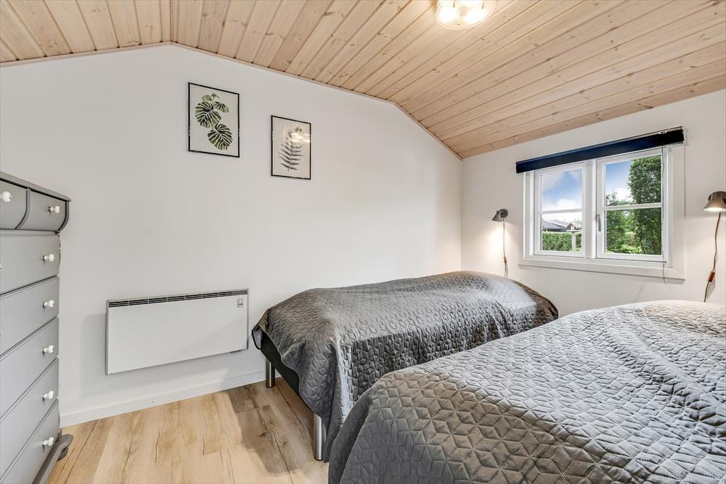 I sommerhusets hyggelige opholdsrum, hvor køkken og stue er forenet, er der både brændeovn og varmepumpe til de kølige dage, og på sommerlige dage kan I åbne havedøren op til terrassen og lade den friske luft strømme ind. Farvetonerne er lyse og lette – ikke bare her, men også på badeværelset og de to soveværelser. Den samme indbydende stil og behagelige rumfornemmelse fortsætter i det tilhørende anneks, hvor I finder et ekstra badeværelse og yderligere to gode soveværelser. Med andre ord er det intet problem for seks personer at holde ferie sammen her i huset.