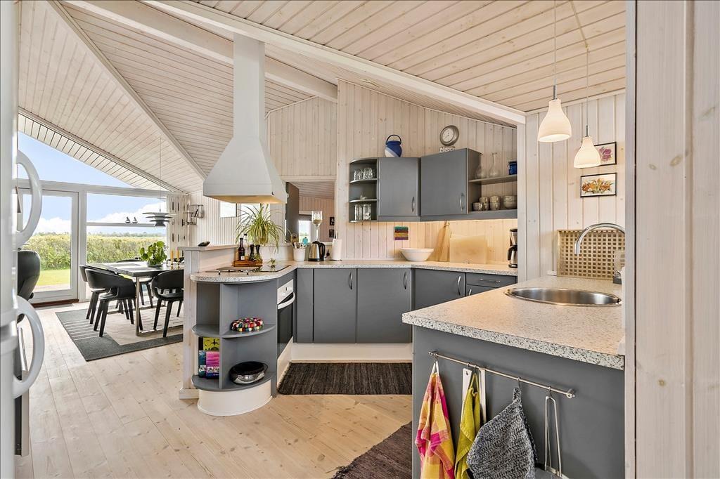 Dette sommerhus er ikke bare lyst og indbydende, men også hyggeligt indrettet med mange fine detaljer. Huset er beliggende med en dejlig udsigt over markerne og kun få hundrede meter fra Ringkøbing Fjord. Kort sagt er der mange gode grunde til at holde ferie her!