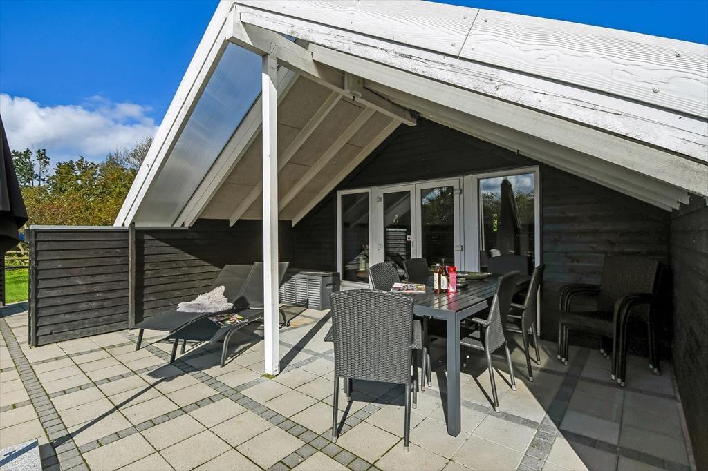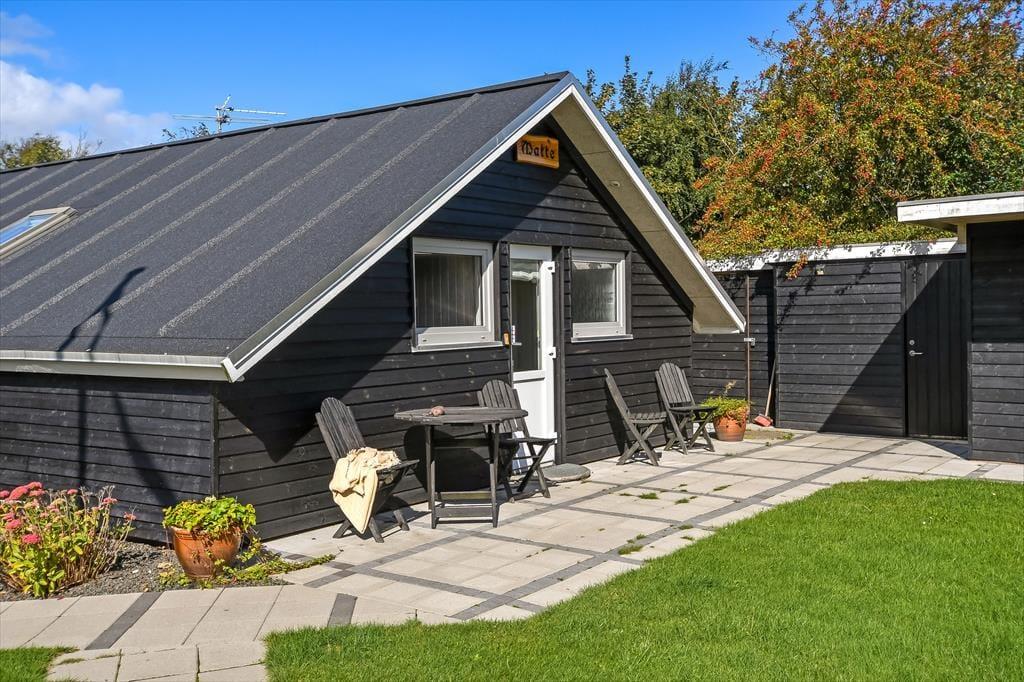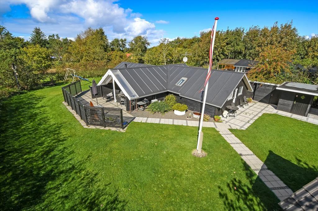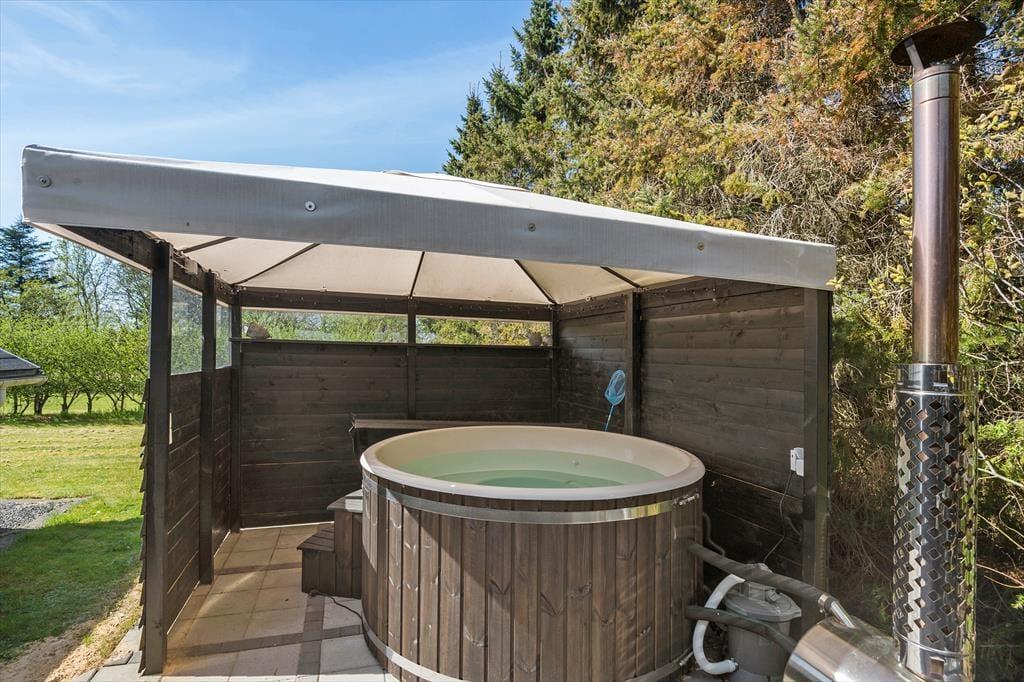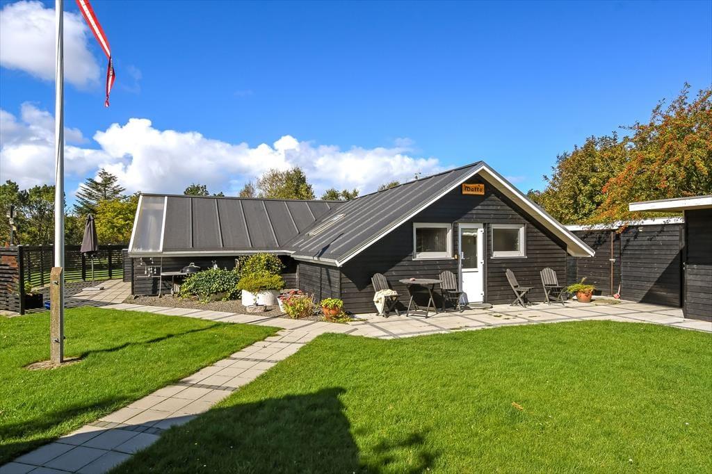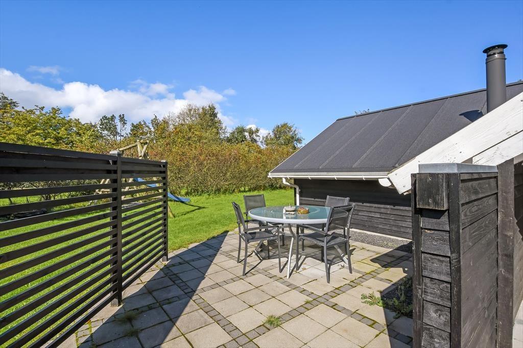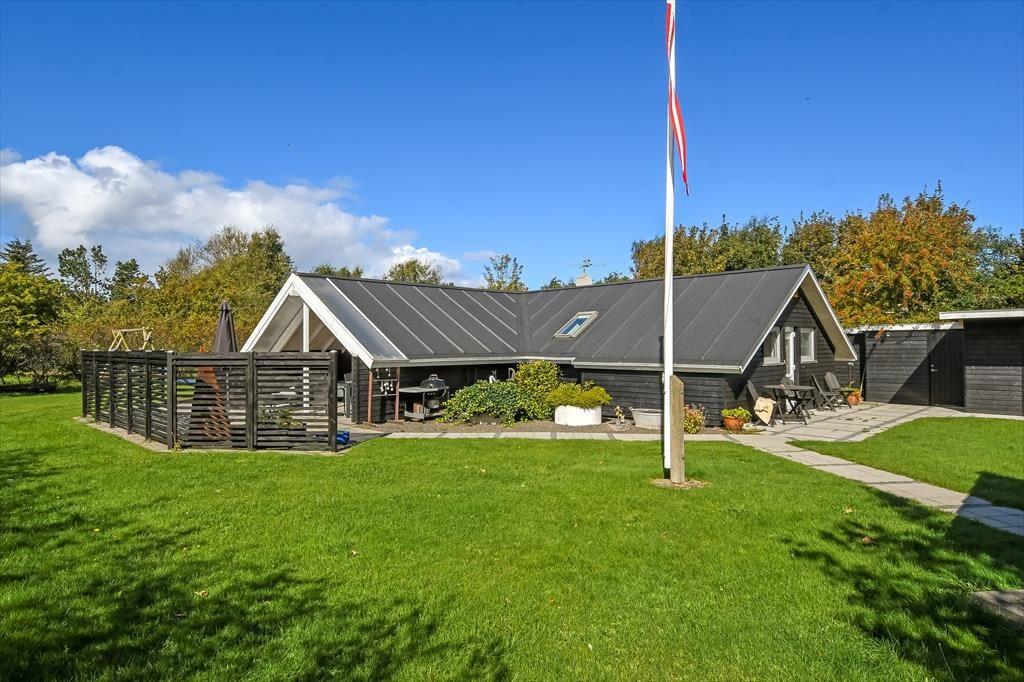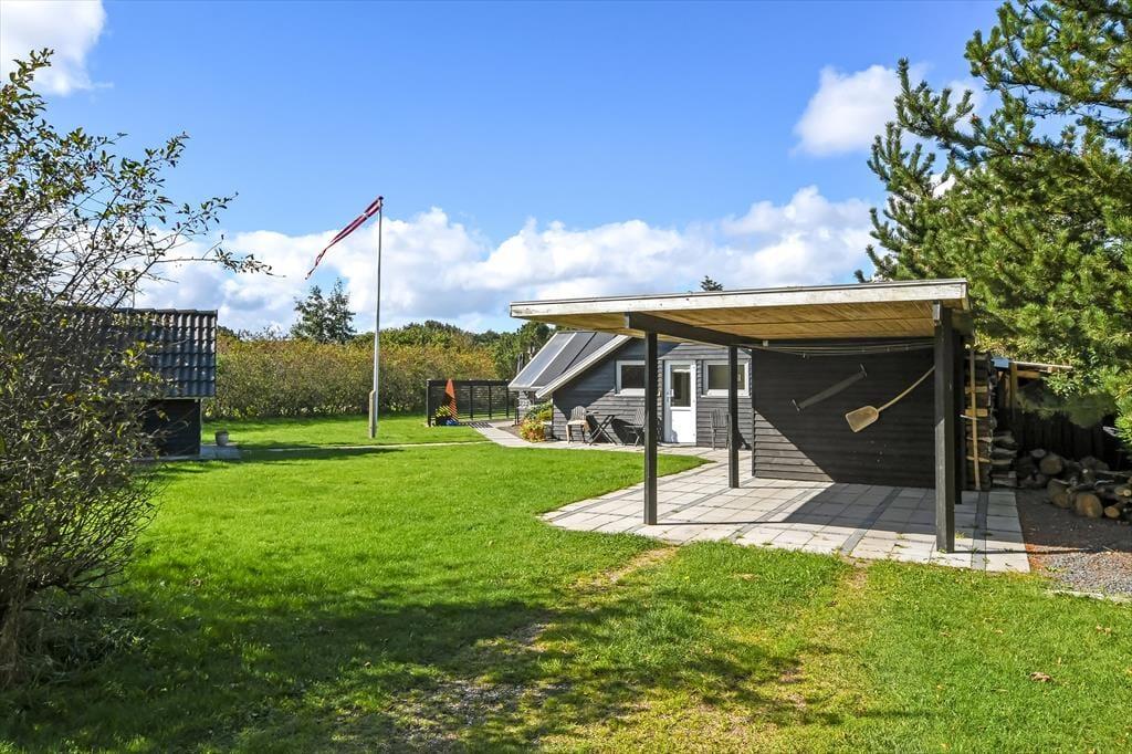 Ude på den 956 m2 store grund får I skønne rammer om alle lege- og afslapningsstunder. Skal I virkelig koble af, er det herligt at læne sig tilbage i vildmarksbadet, der står helt ugeneret omme bag sommerhuset. Rundt om huset er der flere skønne terrasseområder at vælge imellem, og på græsplænen står et legestativ med sansegynge til børnene. De små kan også lege i sandkassen, og bilen kan holde i carporten, der ligger ud mod den lukkede vej.