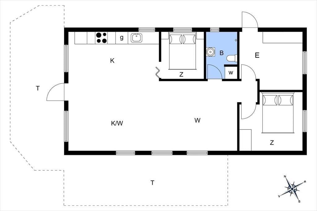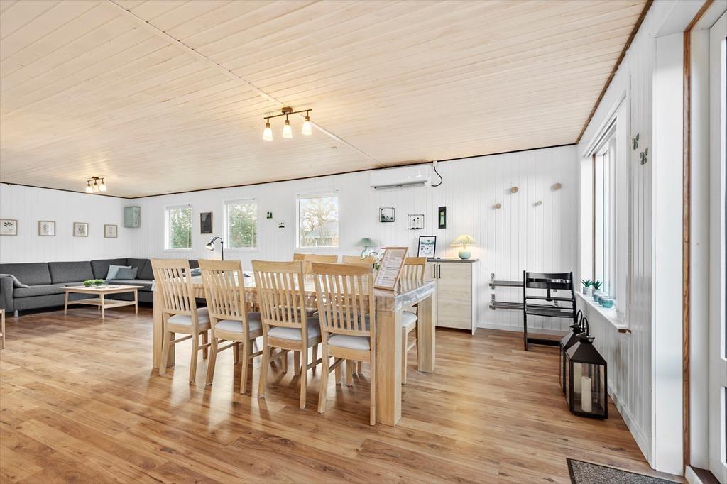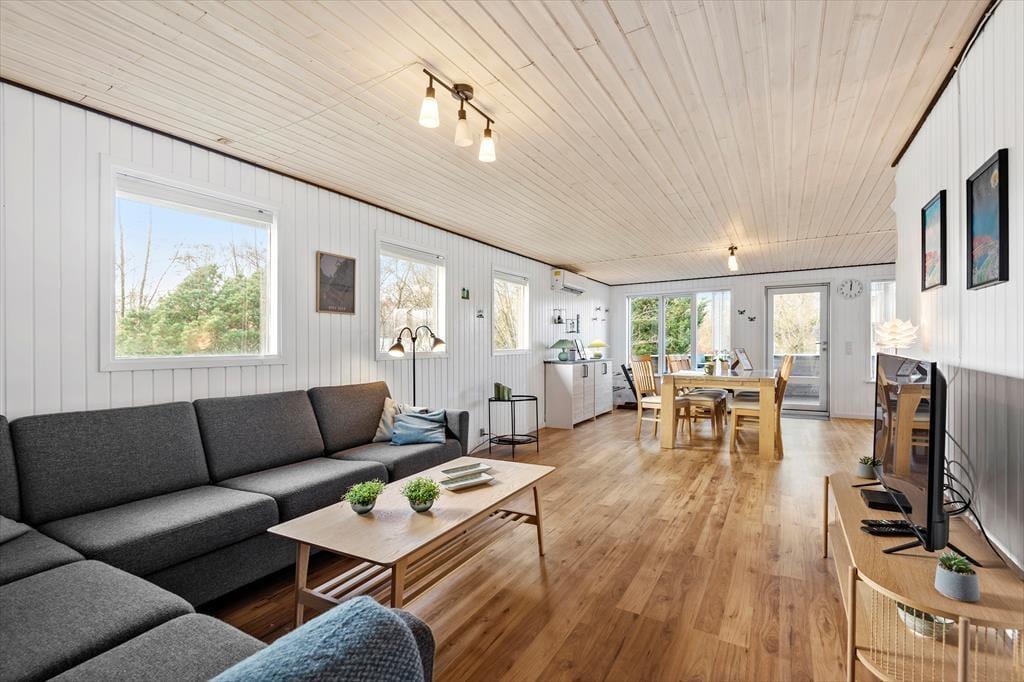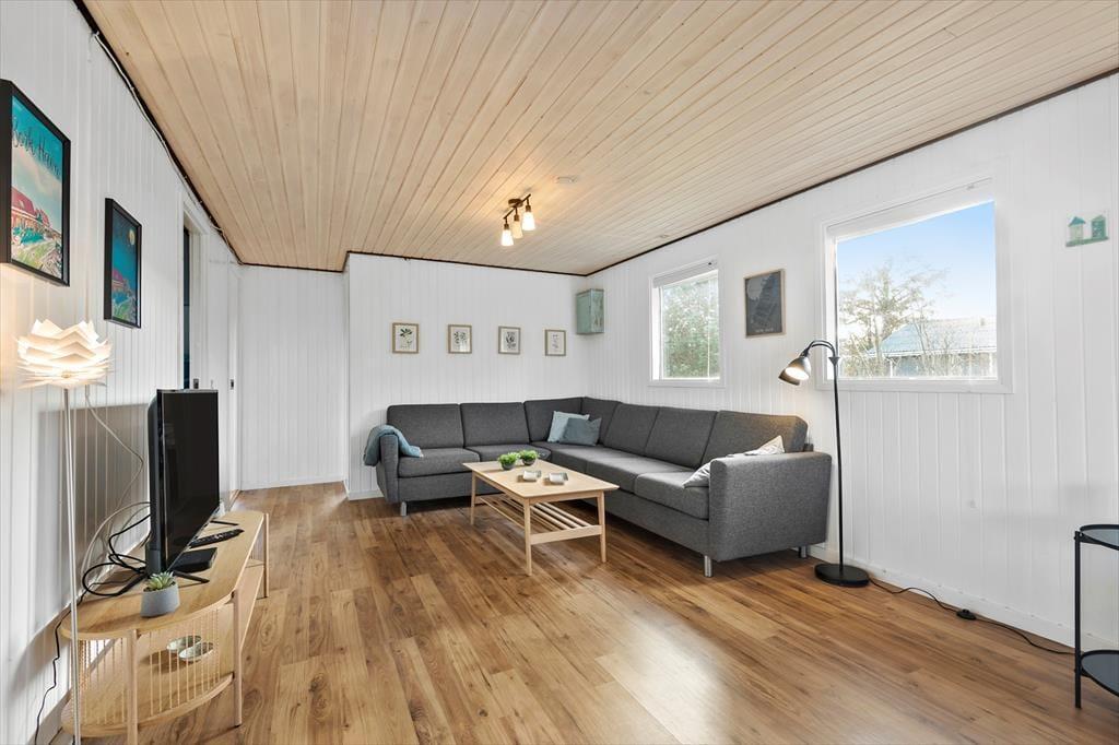 Efter seneste renovering fremstår det 73 m² store sommerhus pænt og indbydende. Et lyst badeværelse er udstyret med bruser, vaskemaskine og gulvvarme, og i det veludstyrede køkken har I alt, hvad I skal bruge, når der skal laves mad. Køkkenet ligger som del af opholdsrummet, som også byder på spisebord og sofaafdeling med fladskærms-tv, og der er desuden varmepumpe, så I kan få en passende temperatur inden døre. Planløsningen byder for øvrigt på to gode soveværelser, der begge to er med dobbeltseng, så alt i alt er det en skøn feriebolig til fire personer.