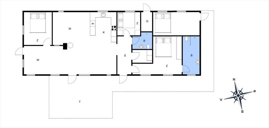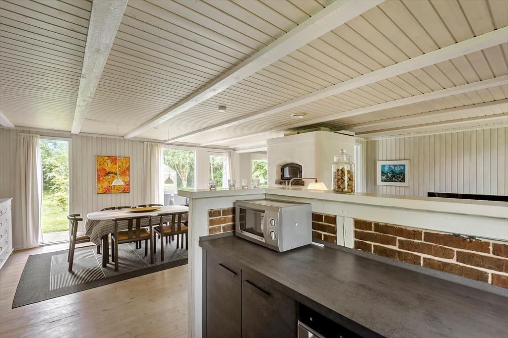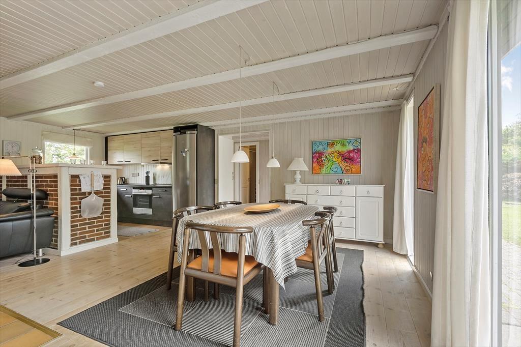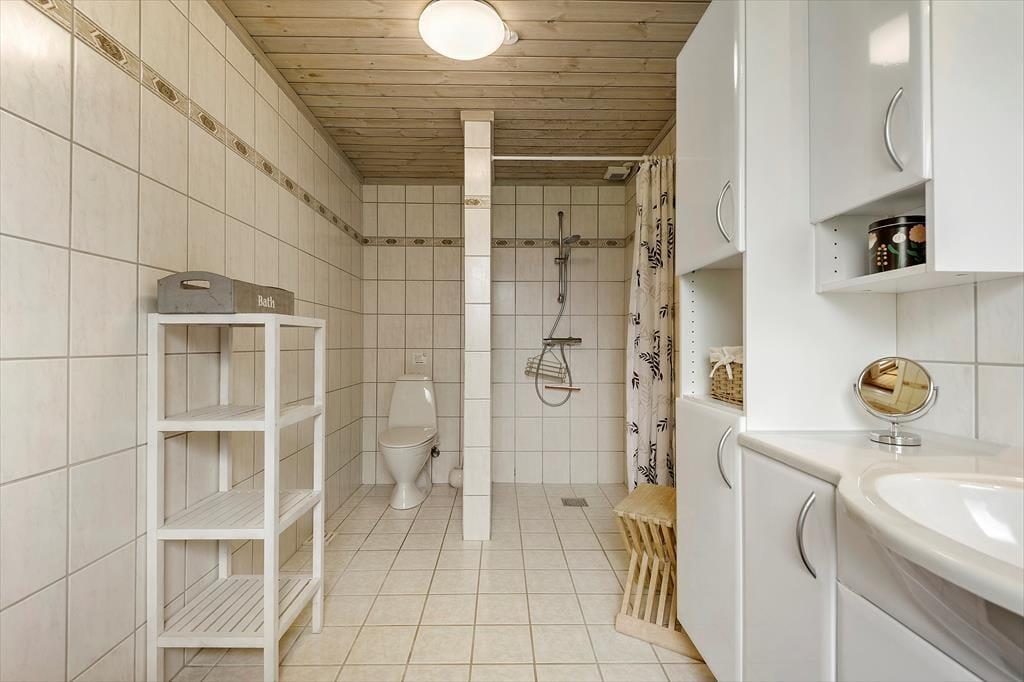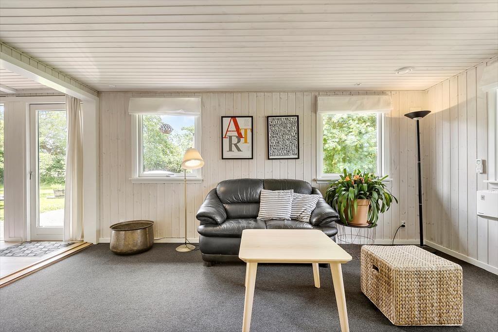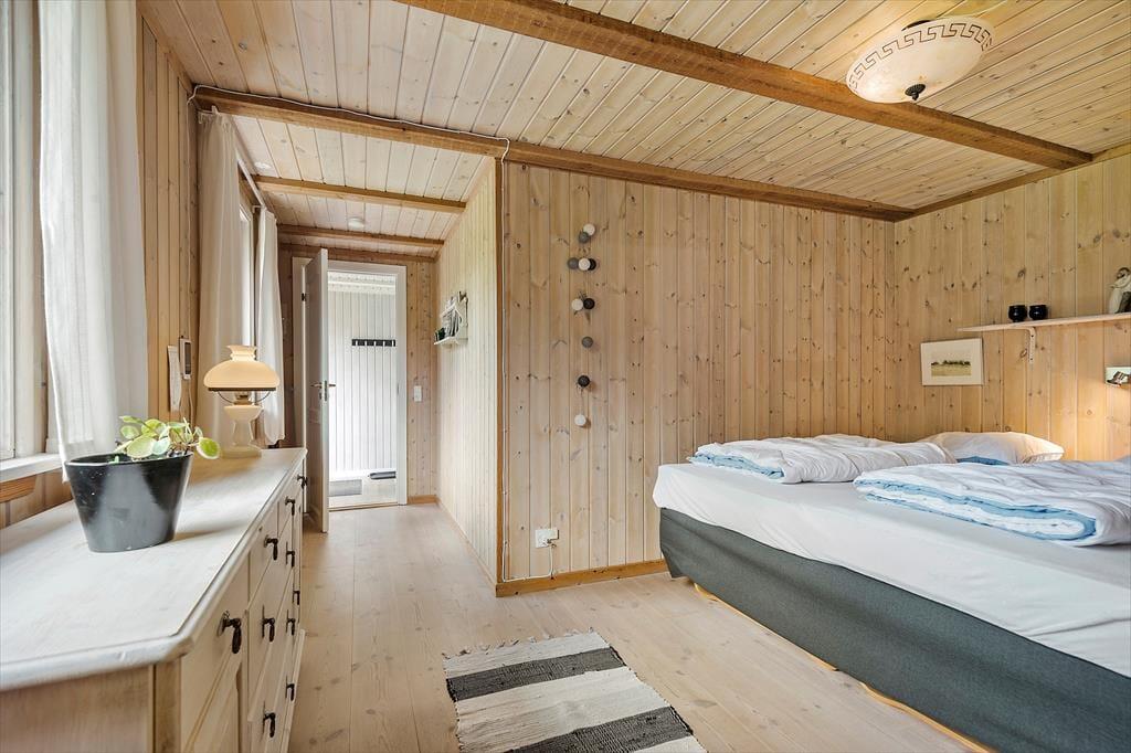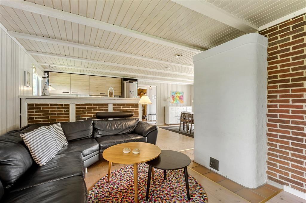 Det 130 m2 store sommerhus er blevet renoveret i 2018, og både ude og inde fremstår det pænt og velholdt. Planløsningen er god til seks personer, for I har tre soveværelser og to badeværelser at gøre godt med. Soveværelserne er alle udstyret med dobbeltseng, og på badeværelserne er der bruseniche og gulvvarme. Stuen er et kæmpe opholdsrum med integreret køkken, masseovn og flere hyggelige opholdspladser. Det er et rum, der inviterer til hygge og afslapning i sofaerne eller omkring spisebordet – og skal der være mere gang i den, er der mulighed for at tage et slag bordfodbold i aktivitetsrummet.