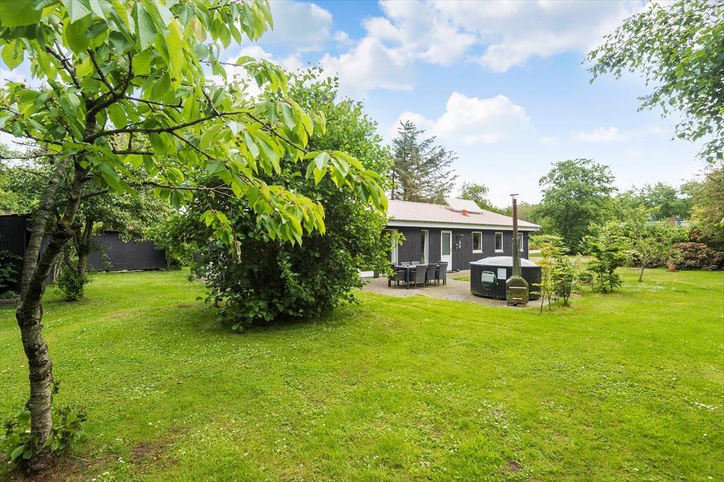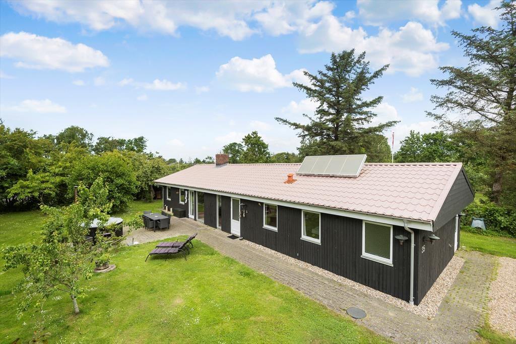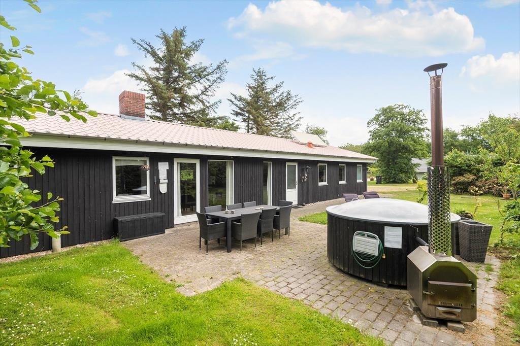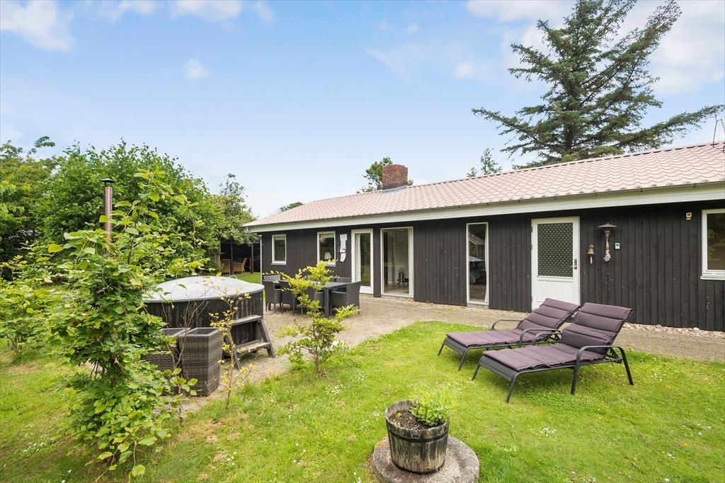 Uanset om I er i humør til leg eller tilbagelænet afslapning, kan feriehyggen også sagtens udspille sig under åben himmel. Den 1000 m2 store grund har god plads til at spille bold og lege fangeleg på græsplænen, og der er både åbne og overdækkede terrasseområder. Om aftenen kan I samles rundt om bålstedet eller forkæle jer selv med en tur i det træfyrede vildmarksbad under stjernehimlen.