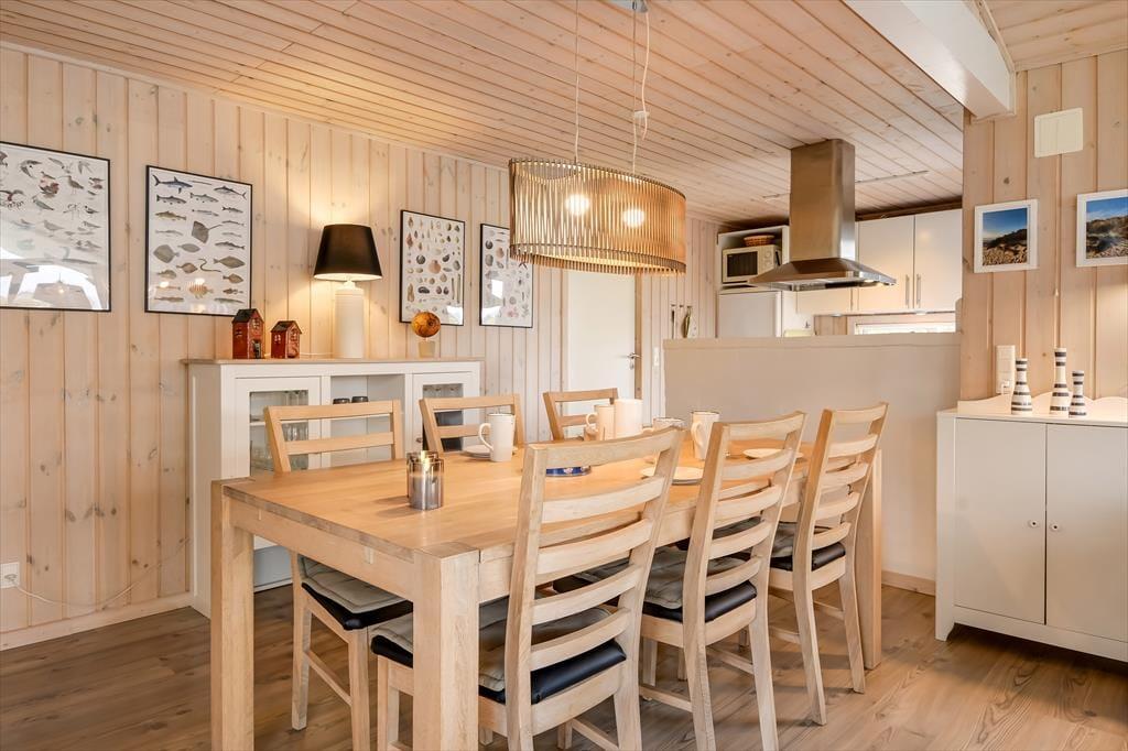 Dette hyggelige feriehus ligger i et lukket sommerhusområde meget tæt på en legeplads. Med andre ord kan I ikke finde en meget bedre beliggenhed, hvis I holder ferie med børn – og så kan I samtidig glæde jer over at have nem adgang til Bork Havns bymidte, surfstranden ved Ringkøbing Fjord, fuglereservatet Tipperne og meget mere.