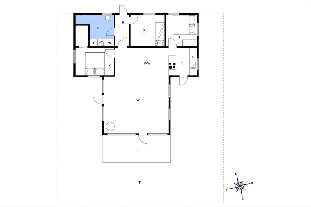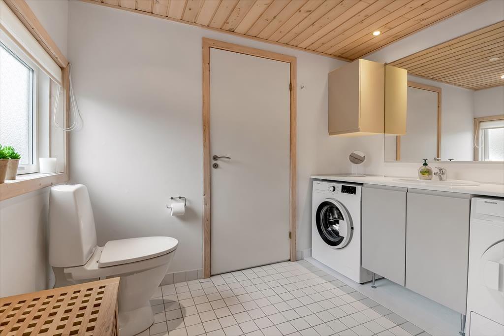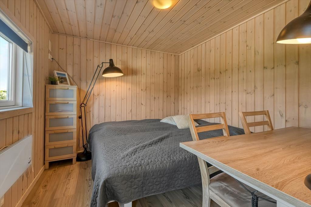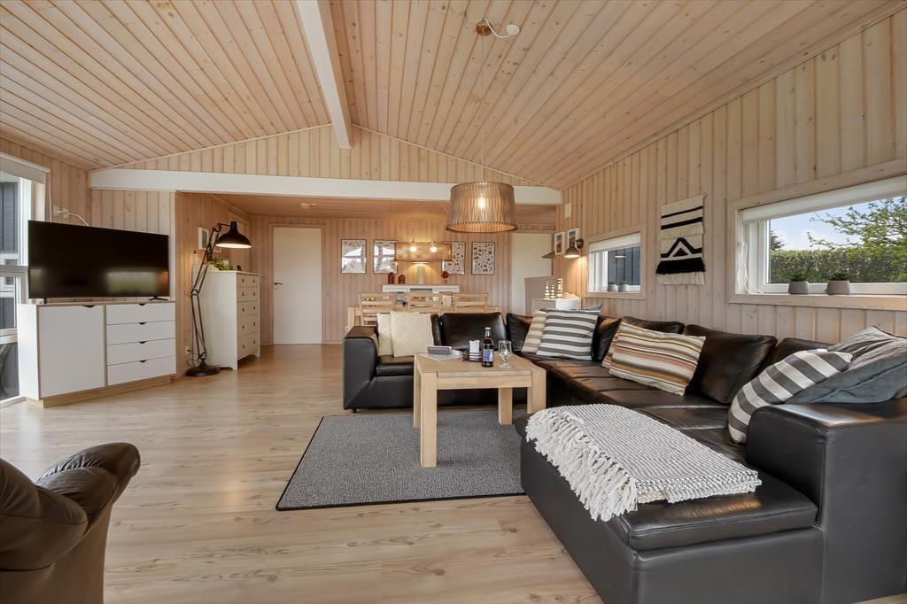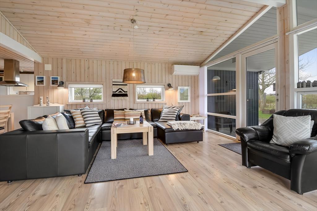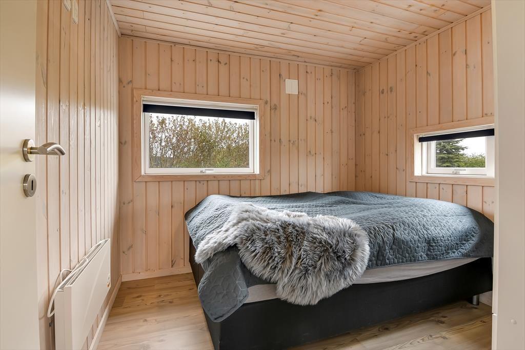 Sommerhuset er et 86 m² stort eksemplar fra 2006, der fremstår pænt og velholdt. Planløsningen passer godt til seks personer, for der er to soveværelser med dobbeltseng og et tredje med køjeseng, så det er oplagt som børneværelse. Både store og små familiemedlemmer kan samles i stuen, der er et dejligt opholdsrum med loft til kip, et godt lysindfald og direkte udgang til terrassemiljøet. Derudover er der brændeovn, sofakrog og stort fladskærms-tv, så der er lagt op til mange gode og afslappende hyggestunder. Rummets spiseafsnit ligger lige ved køkkenet, som er udstyret med opvaskemaskine og andre gode hvidevarer. Brusebadeværelset fremstår pænt og rummeligt ligesom de øvrige rum, og så skal det for øvrigt nævnes, at huset er kørestolsvenligt med brede døre uden bundstykke.