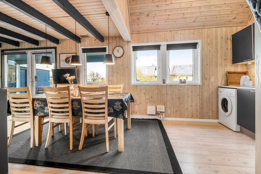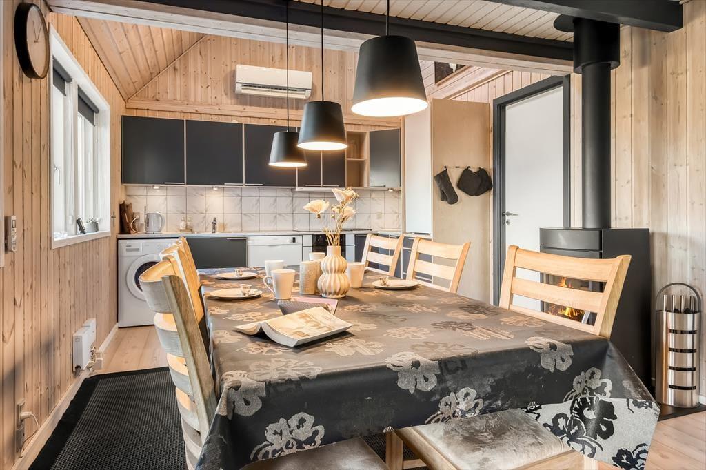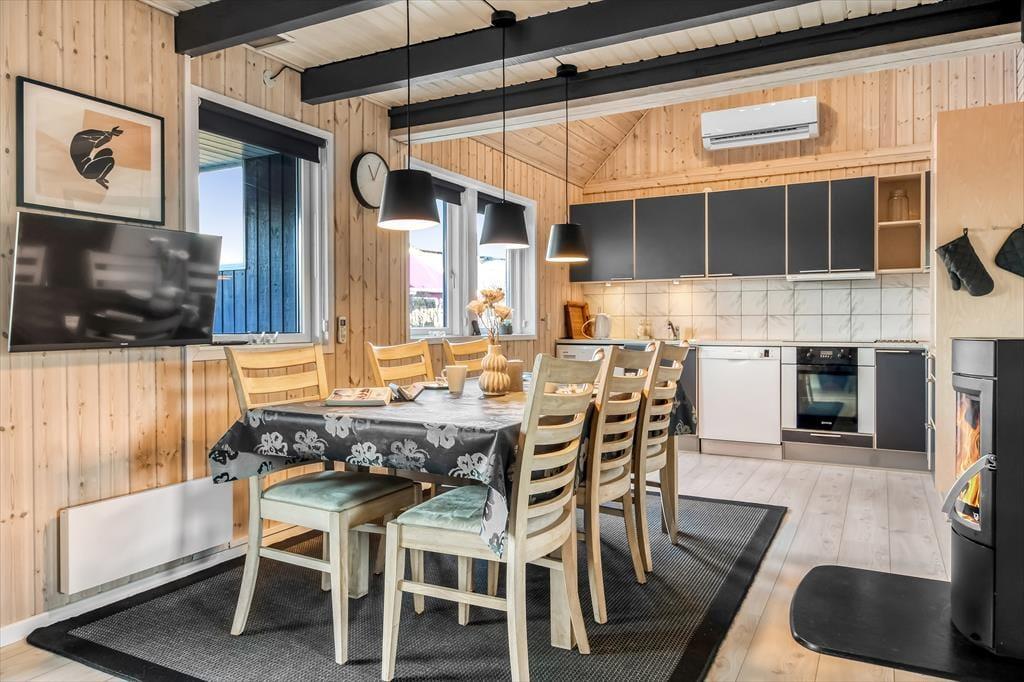 Lige fra det øjeblik, I træder ind i huset, mærker I husets varme og personlighed. Dette hus er ikke bare ”et i rækken”, men derimod et, der virkelig er kræset for gennem årene. Samlingspunktet i stueetagen er stuen, der hænger sammen med køkkenet. Her er alt det praktiske, I skal bruge for at lave mad og vaske tøj – men her er også masser af hygge, da huset har en dejlig brændeovn i midten af rummet, perfekt hvis I vil blive siddende efter maden og nyde et spil kort, eller I kan fortsætte direkte ud på den delvist overdækkede terrasse, hvor I selvfølgelig også kan nyde maden og hinandens selskab, når vejret tillader det. I stueetagen finder I også alle soveværelser, der hver har plads til to personer. Her er også husets badeværelse, samt en fin østvendt udestue og et redskabsrum med plads til alt det praktiske. På husets 1. sal er opholdsstuen indrettet med lækre møbler – og en fantastisk udsigt over fjorden. Denne kan selvfølgelig også nydes fra balkonen, og hele herligheden vender mod vest, så I kan nyde den berømte solnedgang over Vesterhavet, uden at skulle køre efter det.