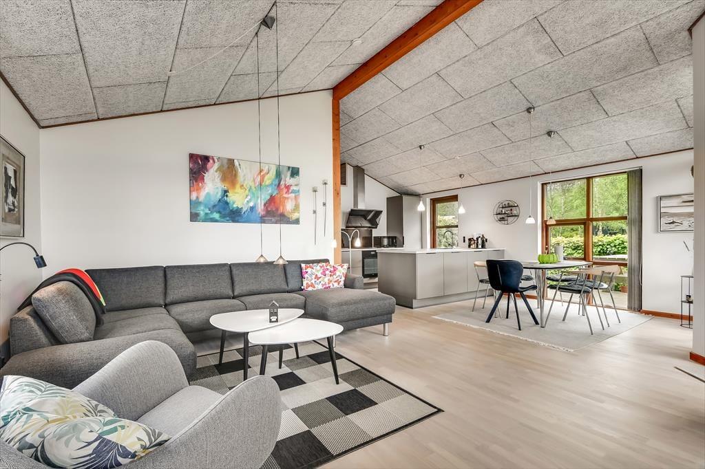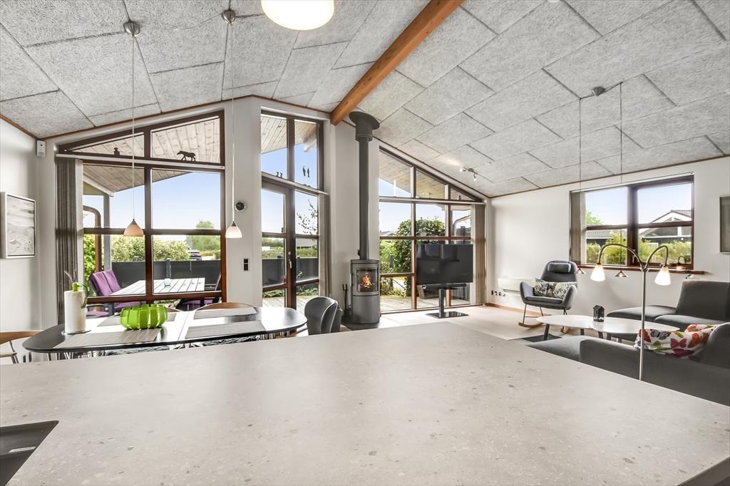 Med et så velfungerende og rart kvalitetshus som dette kan ferien foregå på alle tider af året. Når vejret lægger op til indendørs afslapning, er det skønt at kunne sænke sig i et varmt spabad eller læne sig tilbage i badeværelsets sauna, og hvis du er mere i humør til at spille brætspil eller læse bøger nær brændeovnen, kan det sagtens lade sig gøre i stuen. Kan du lide at lave mad, vil du helt sikkert blive glad for husets veludstyrede køkken, der har induktionsplader og meget andet godt – og her er der for øvrigt åben forbindelse til stuen, så du kan nyde det sociale samvær og tage del i hyggesnakken, selvom du er i gang med at røre i gryderne. Selv nattesøvnen kommer til at foregå i komfortable rammer her i huset, for planløsningen byder på tre gode soveværelser.