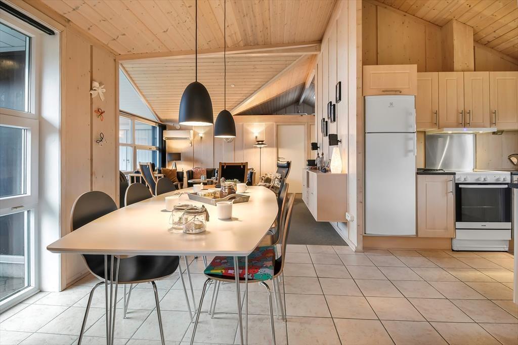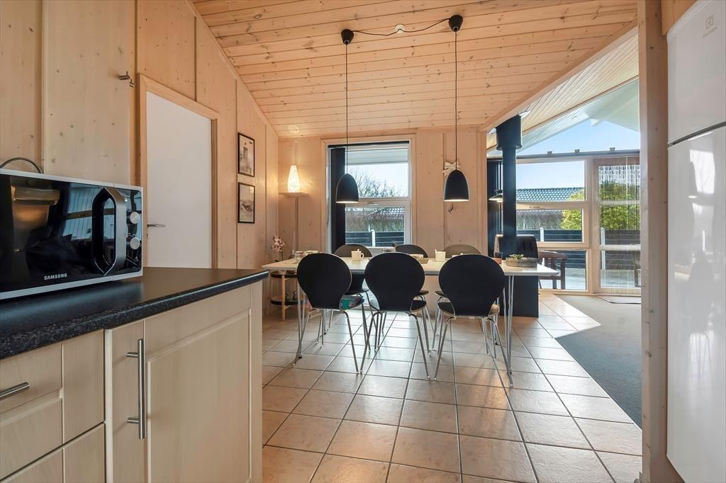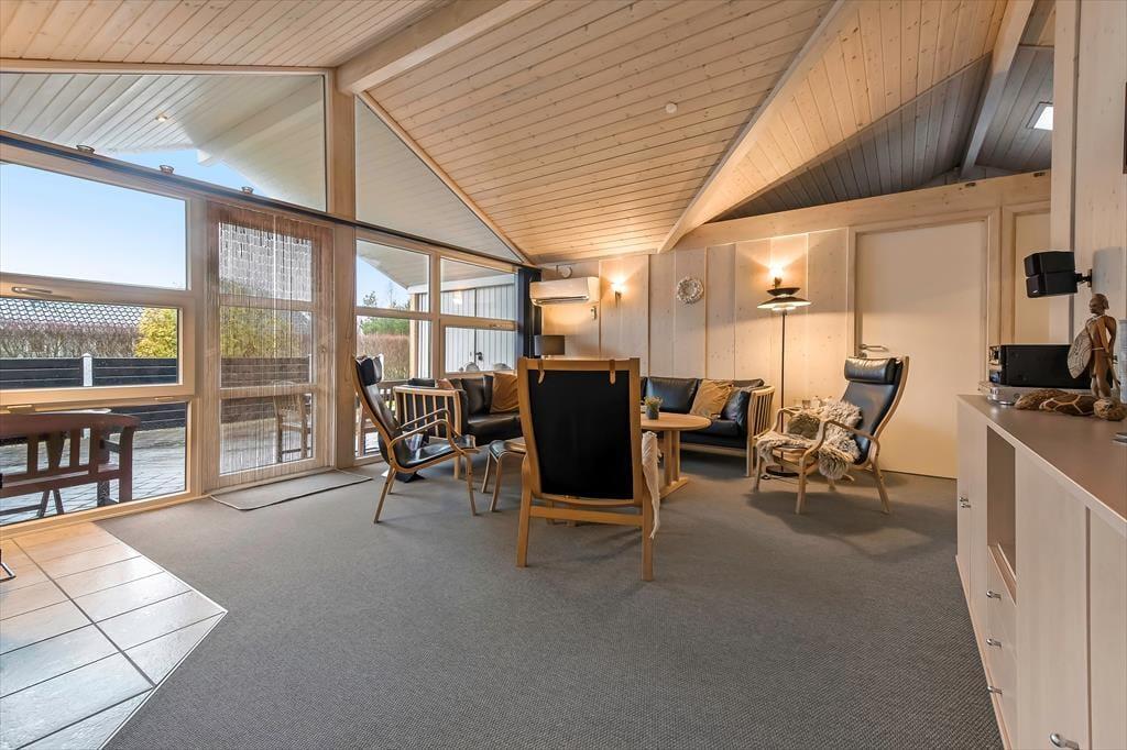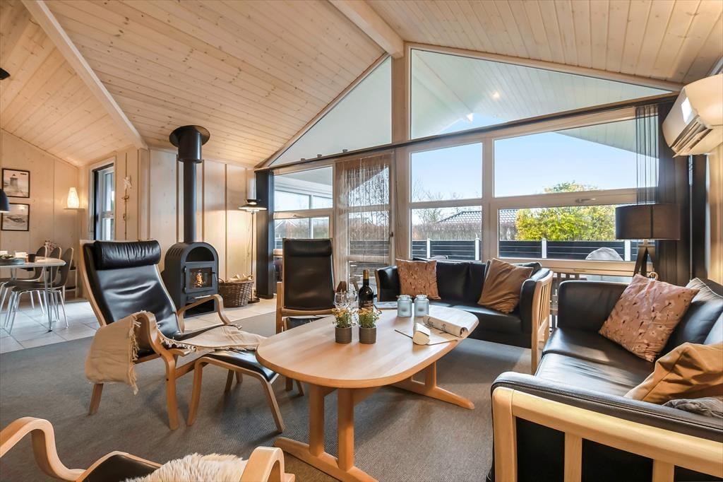 Feriehuset er stort og velindrettet, og her er der både plads til, at par, familier eller venner kan slappe af og nyde hinandens selskab, samtidig med, at alle kan trække sig tilbage og nyde den fred og ro, der er i dette feriehus. Husets hjerte er den store stue, der både hænger sammen med køkkenet og spisepladsen, og som også har direkte udgang til den store, sydvendte terrasse. Det store vinduesparti i stuen sikrer jer en masse naturligt lys, når I skal nyde tiden på terrassen eller sammen i sofaen. Huset byder også på tre gode soveværelser med skabsplads, en hems og et dejligt stort badeværelse, som har både indendørs spa og sauna – den perfekt kombination, når man skal koble af og nyde en tiltrængt sommerhusferie.