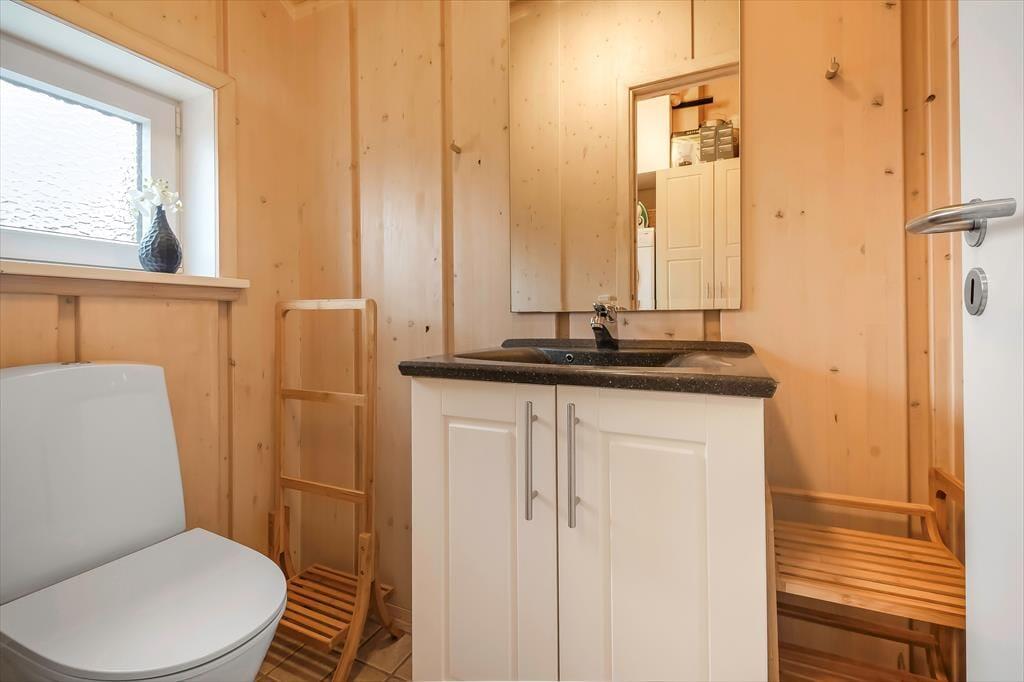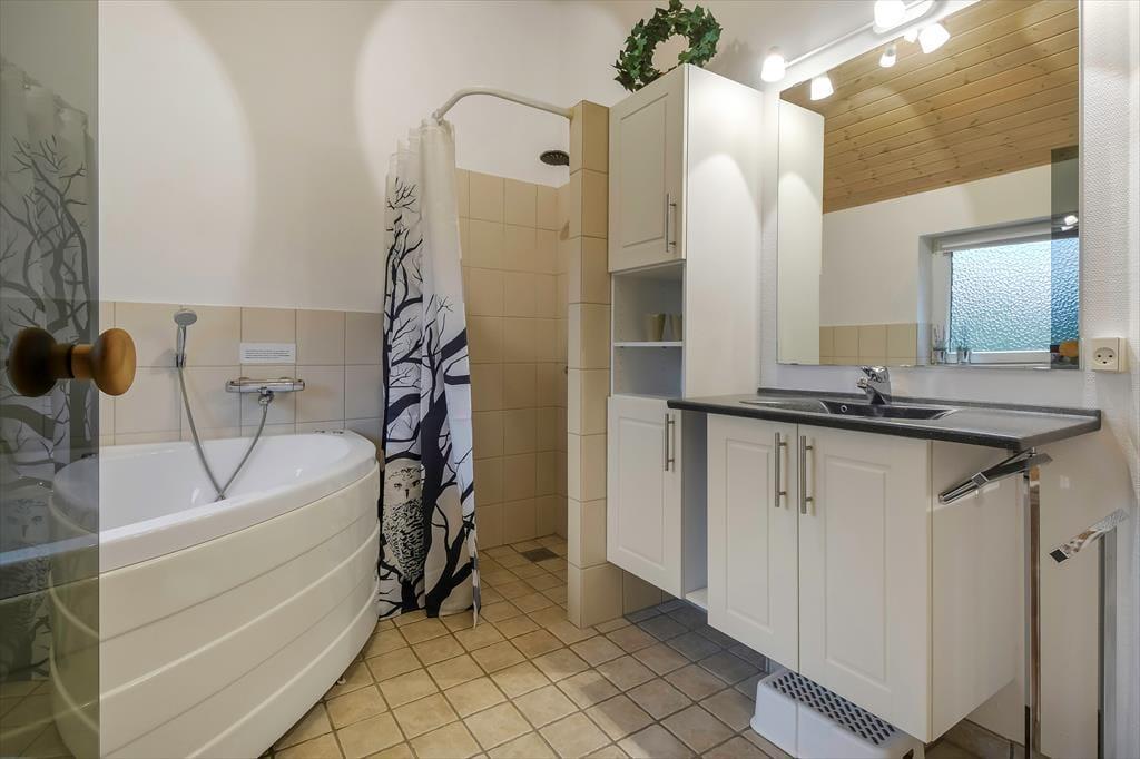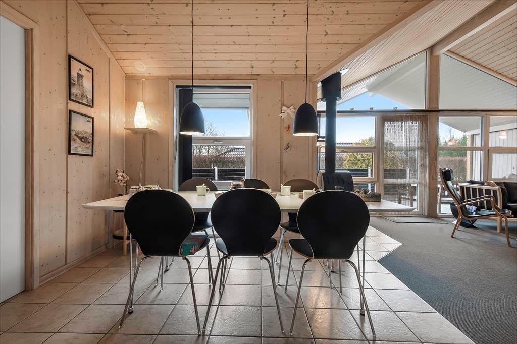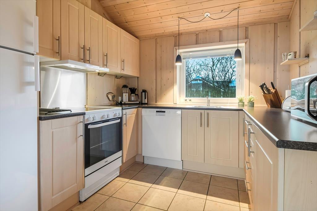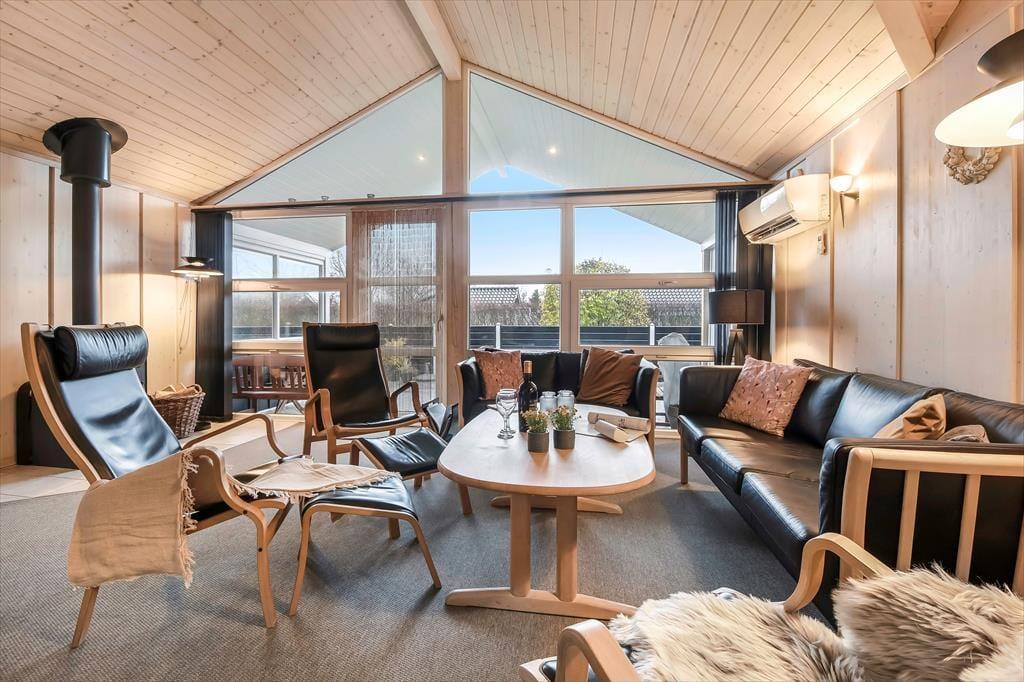 Feriehuset er stort og velindrettet, og her er der både plads til, at par, familier eller venner kan slappe af og nyde hinandens selskab, samtidig med, at alle kan trække sig tilbage og nyde den fred og ro, der er i dette feriehus. Husets hjerte er den store stue, der både hænger sammen med køkkenet og spisepladsen, og som også har direkte udgang til den store, sydvendte terrasse. Det store vinduesparti i stuen sikrer jer en masse naturligt lys, når I skal nyde tiden på terrassen eller sammen i sofaen. Huset byder også på tre gode soveværelser med skabsplads, en hems og et dejligt stort badeværelse, som har både indendørs spa og sauna – den perfekt kombination, når man skal koble af og nyde en tiltrængt sommerhusferie.