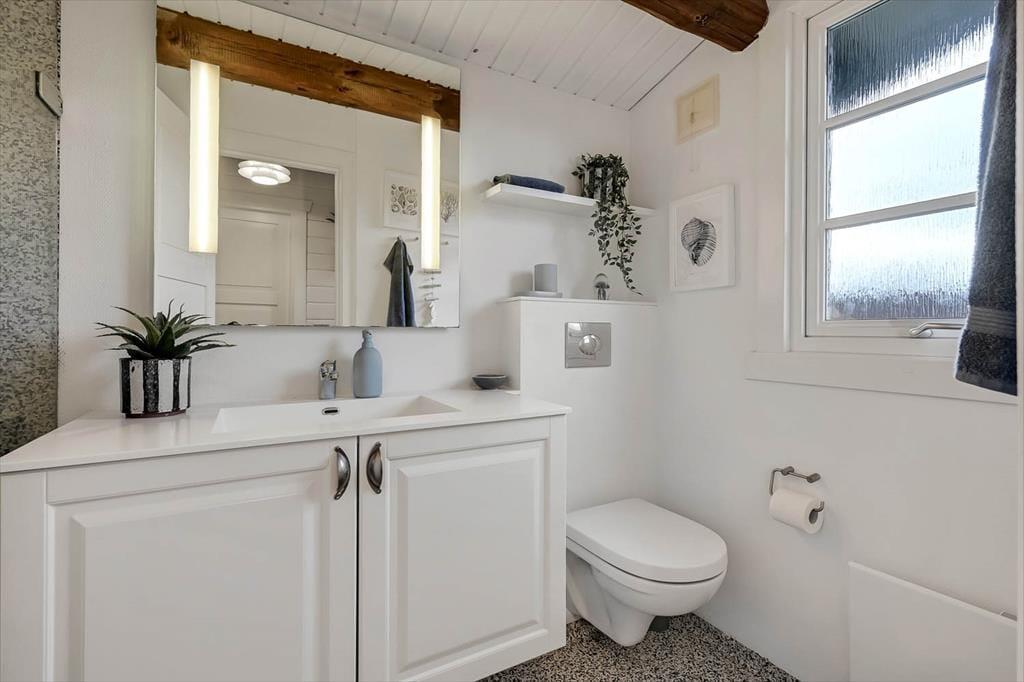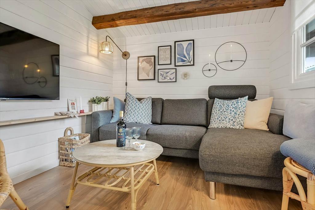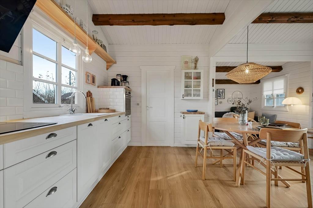 Indenfor mødes du af en varm og indbydende atmosfære, hvor den klassiske sommerhusstil får lov at folde sig ud. Her er der tænkt i hygge, komfort og funktionalitet – uden at det mister sin sjæl. Stuen danner et naturligt samlingspunkt, hvor I kan slappe af efter dagens oplevelser, spille spil, læse bøger eller bare nyde hinandens selskab. Den hjemlige stemning gør det let at føle sig godt tilpas fra første øjeblik. Her er rammerne sat for afslappede dage, hvor I kan tage tingene i jeres eget tempo og nyde ferien uden hastværk. Og familiens firbenede medlem er selvfølgelig også velkommen, så ingen behøver at blive hjemme.
