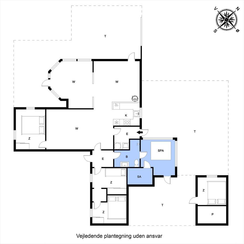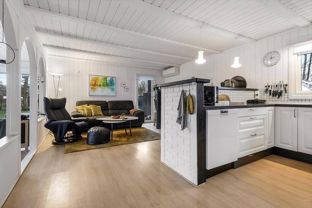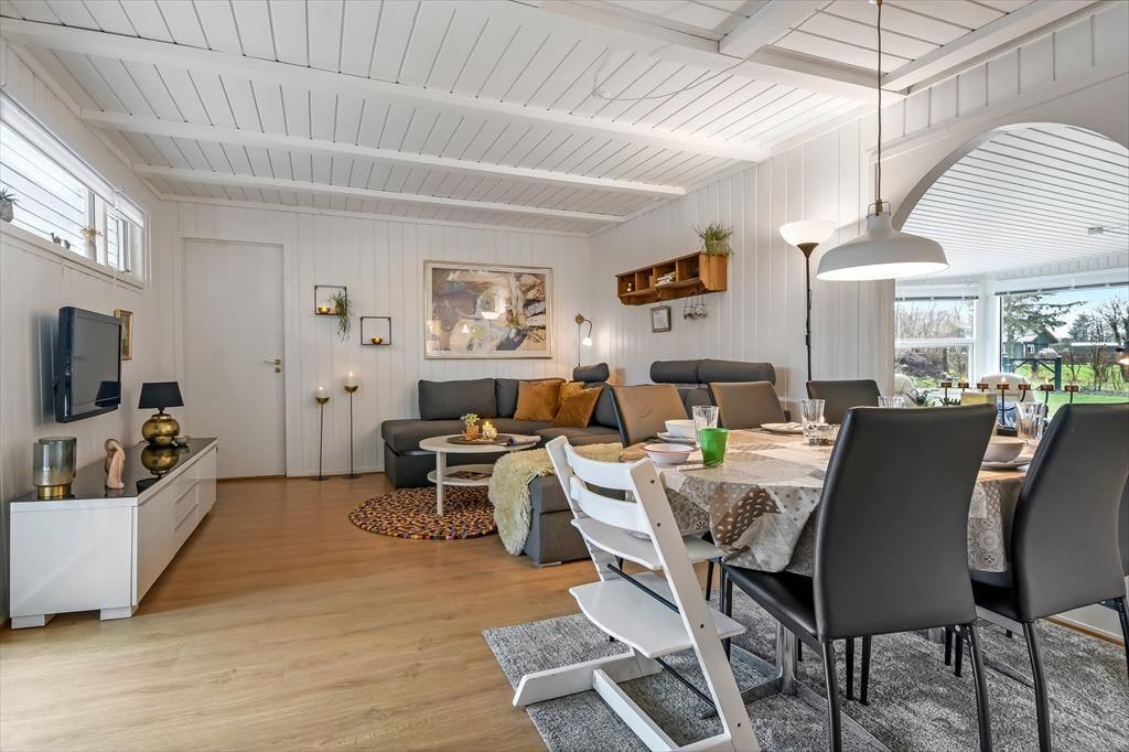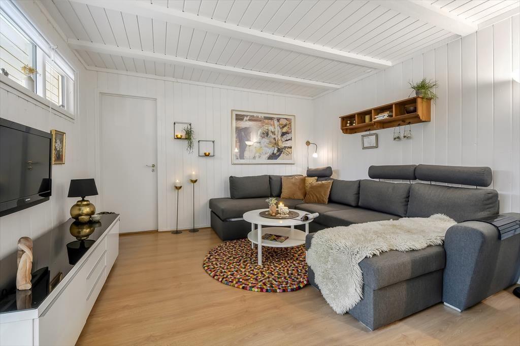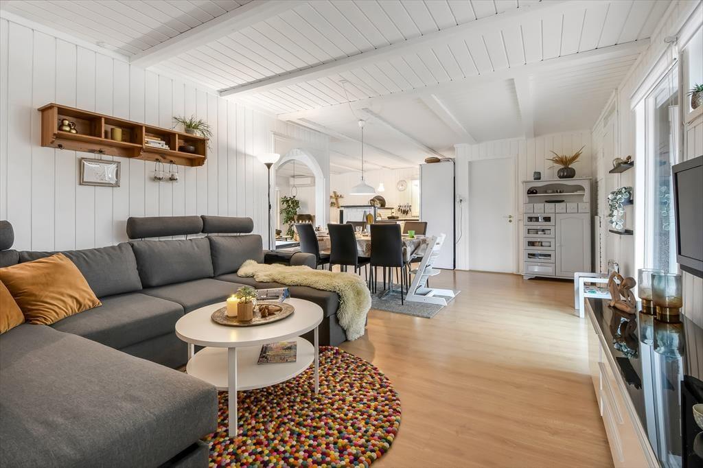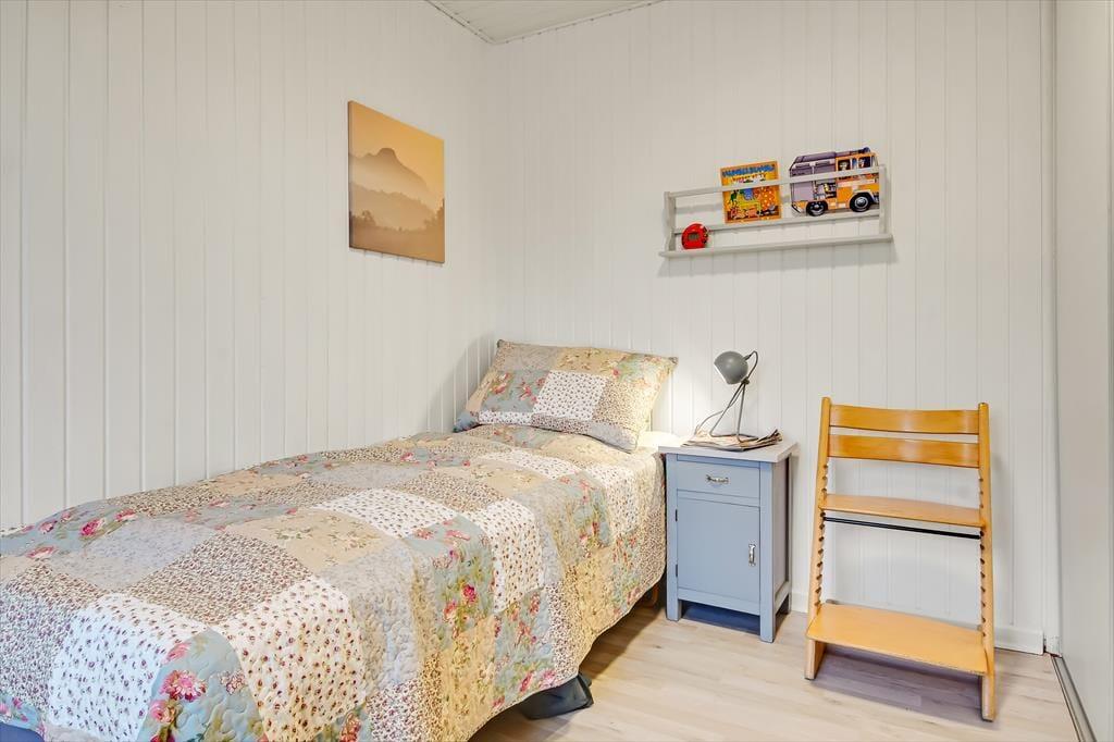 Efter seneste renovering, der foregik i 2023, fremstår sommerhuset særdeles pænt og indbydende. Opholdsafdelingen er stor, og den er opdelt i flere hyggelige afsnit, så der er masser af sofaplads og bløde lænestole – og det er rart, hvis huset af fuldt af liv. I alt kan I være syv personer fordelt på tre soveværelser og et anneks. Bemærk, at det ene soveværelse er et gennemgangsrum, så hvis du har et barn, der gerne vil sove tæt på de voksne, er det med andre ord en praktisk planløsning. Fra badeværelset har du adgang til husets ’wellnessrum’, som er en tilbygning med spabad og sauna, der inviterer til at flade ud og mærke feriefreden brede sig helt ud i kroppen.
