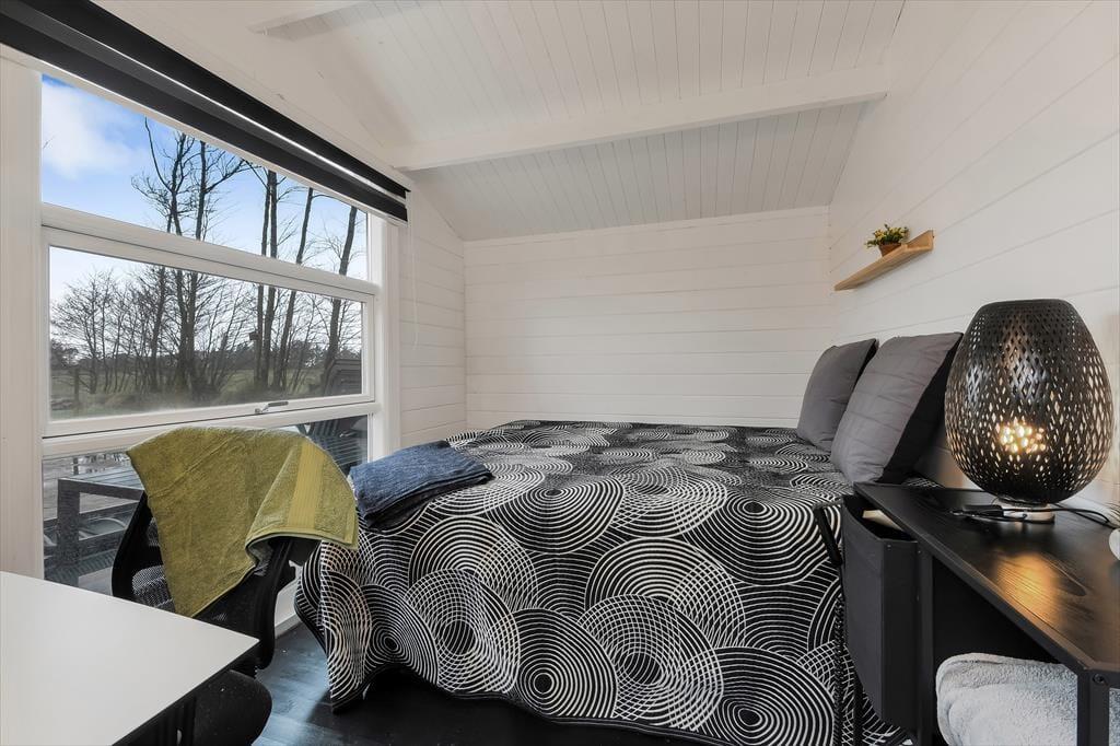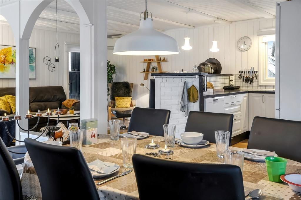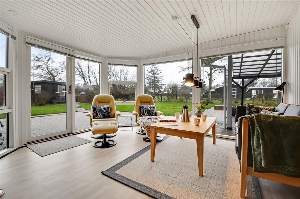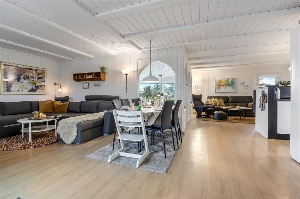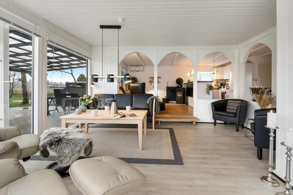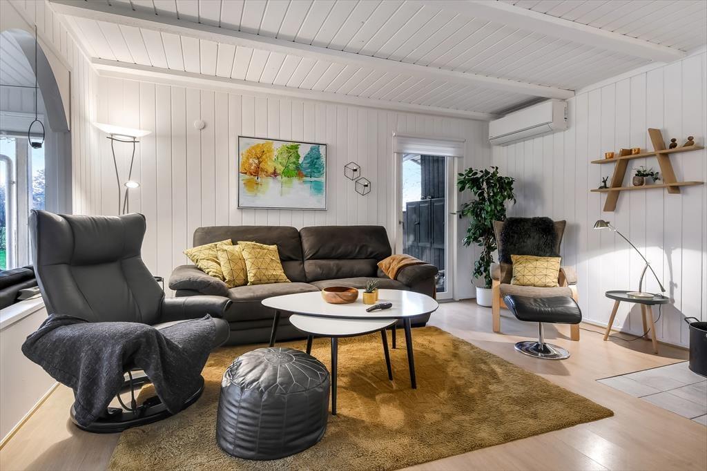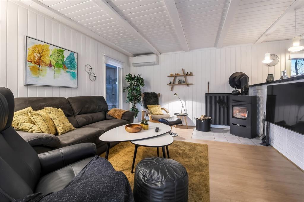 Dette dejlige sommerhus er fuld af skønne opholdspladser og hyggekroge. Så uanset om du er i humør til at slappe af nær brændeovnen, sidde med udsigt til den grønne have eller læne dig tilbage i et spabad eller en sauna, kan det lade sig gøre her på Husfold 8 i Bork Havn.
