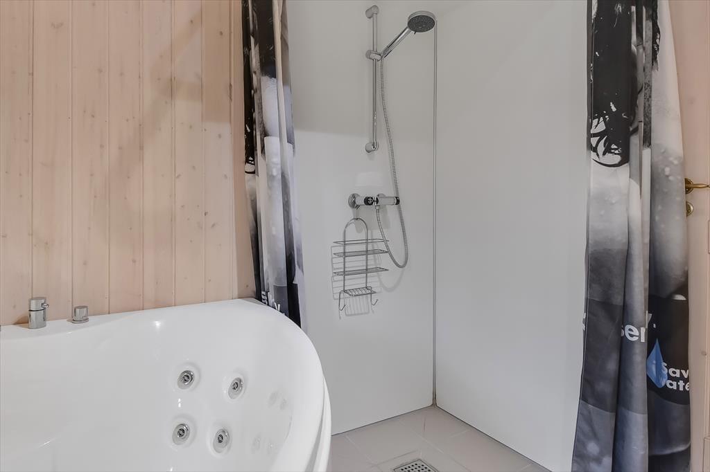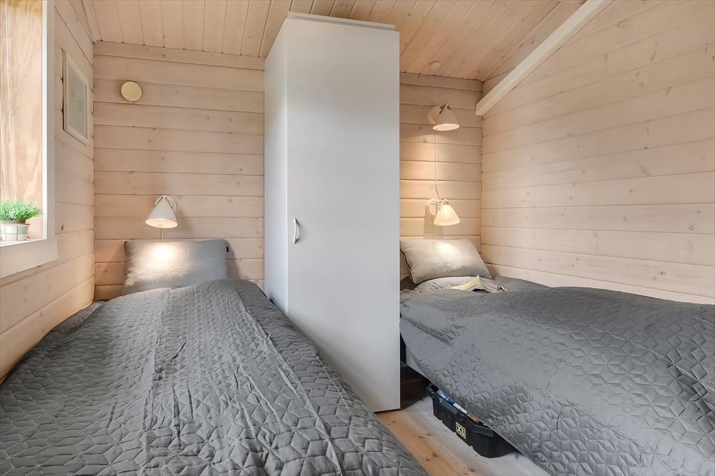 Allerede udefra er førstehåndsindtrykket godt, for huset har en køn, hvidmalet træfacade og småsprossede døre, der inviterer dig direkte ind i stuen. Her er brændeovnen kun et af de elementer, der er med til at skrue op for hyggestemningen – for rummet er smagfuldt indrettet og har derudover lyse trævægge, loft til kip og stige op til en hems. Et velfungerende køkken er også integreret i rummet, så du kan nemt holde hyggesnakken i gang, selvom det er din tur til at stå for madlavningen. Selv soveværelserne er hyggelige, og på badeværelset står spabadet, der garanterer for, at du kan få slappet af inden døre.
