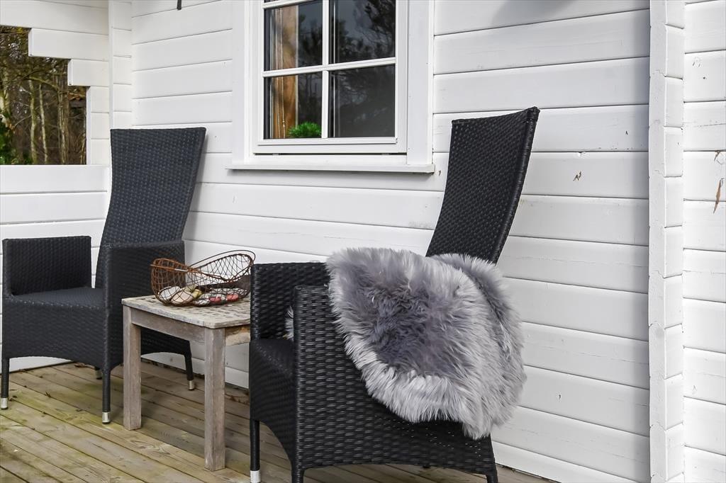 Sommerhusets vildmarksbad er et af de steder, hvor de sødeste ferieminder kan opstå. Bare tænk på, hvor dejligt det kan være at sidde herude i det varme vand, mens fuglene synger fra trætoppene, eller stjernerne lyser på himlen! Du kan sikkert også mærke roen helt ud i kroppen, når du slår dig ned på husets sydvestvendte terrasse. Den er udstyret med havemøbler af god kvalitet, og havedøren gør det nemt at smutte ind i køkkenet, hvis du vil fylde mere kaffe i koppen eller hente næste ret i aftenens udendørs feriemåltid.