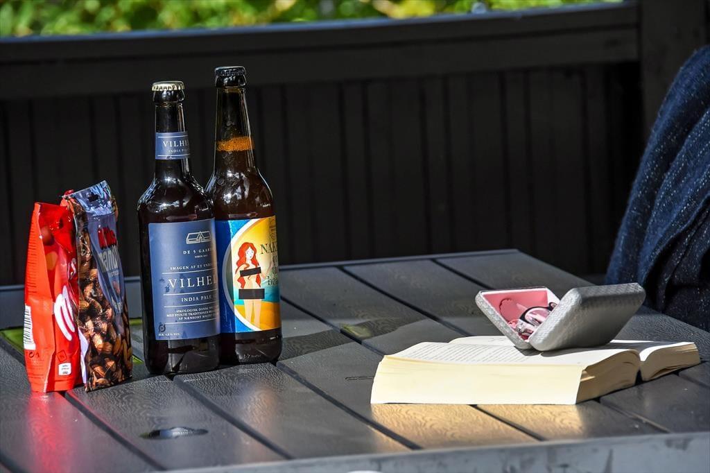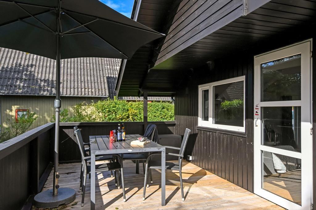 Ud mod den lille lukkede vej er der et flisebelagt terrasseområde og et græsareal, hvor bilen kan holde eller børnene lege. Men når du og familien vil slappe af, er det nok mere sandsynligt, at I søger om i den sydvendte baghave. Her venter der en stor træterrasse, der indbyder til solbadning i liggestolene, siestaer under parasollen og lækre måltider tilberedt på grillen. På en stille sommeraften er det skønt at sidde og nyde de rolige omgivelser helt frem til sengetid – når I altså ikke er ude for at lege på hyttebyens grønne fællesarealer eller hygge jer på havnen i Bork Havn.
