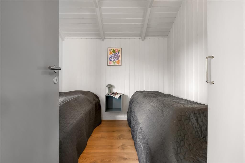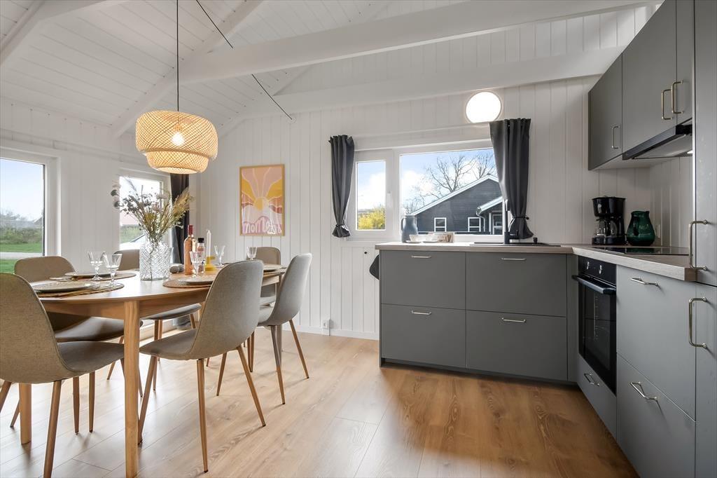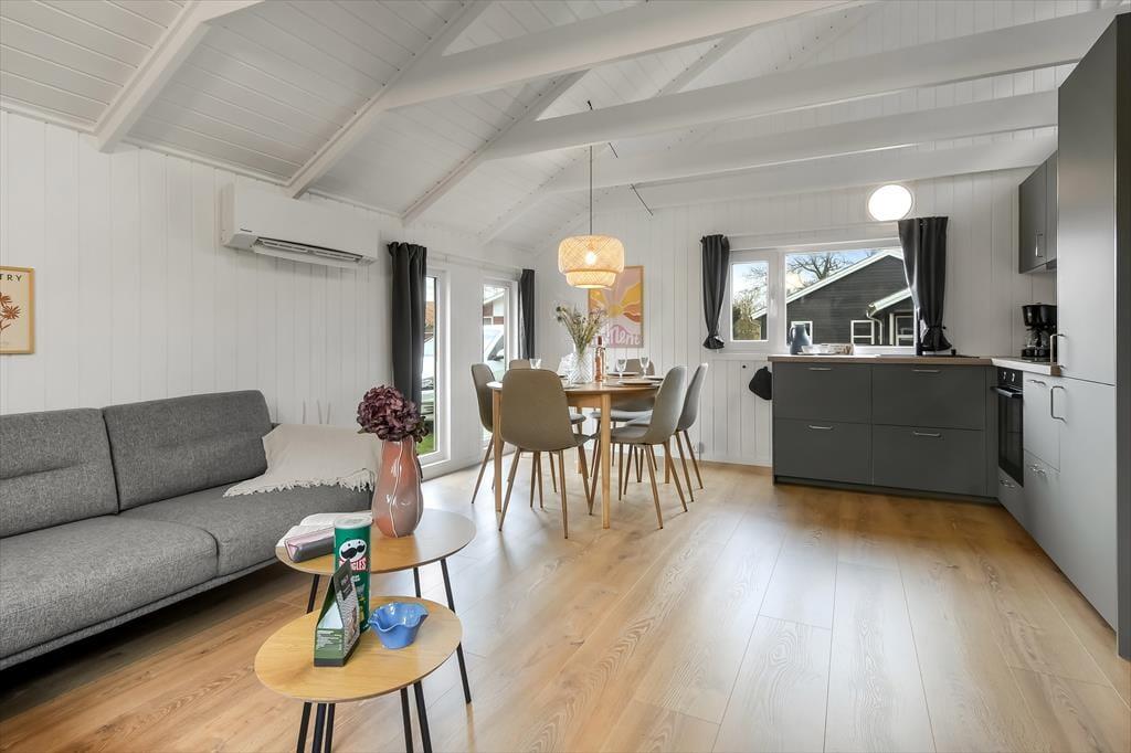 Sommerhusets 50 m2 er virkelig fornuftigt udnyttet, og med to gode soveværelser kan I fint være fire personer inden døre – og fra stuen har I sågar også adgang til en hems, hvis en af jer foretrækker at sove heroppe. Husets rum fremstår lyse og lækre efter den omfattende renovering i 2024, og alt, lige fra badeværelsets rainshower til stuens komfortable hjørnesofa er med til at gøre feriedagene ekstra behagelige. Hvis det er din tur til at lave mad, har du gode arbejdsforhold i det åbne køkken, og med mindre I sætter jer ud på terrassen for at spise, er det herligt at samles omkring spisebordet til en veltilberedt middag.