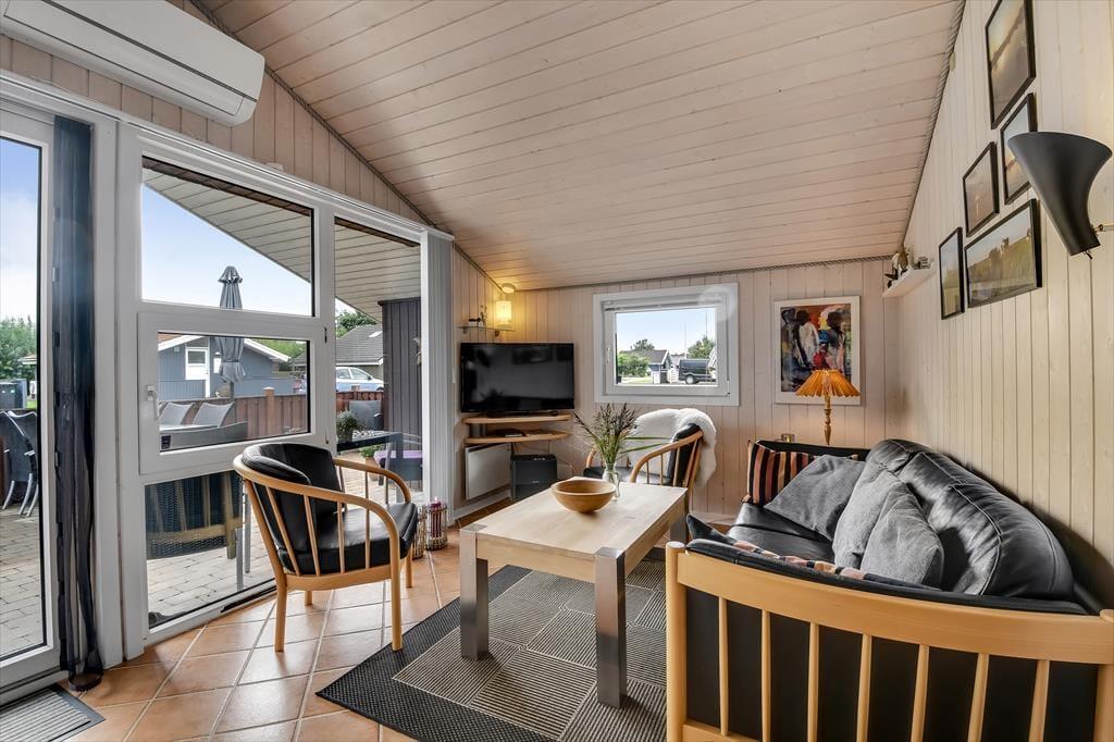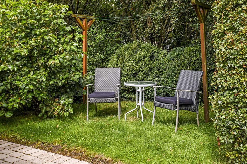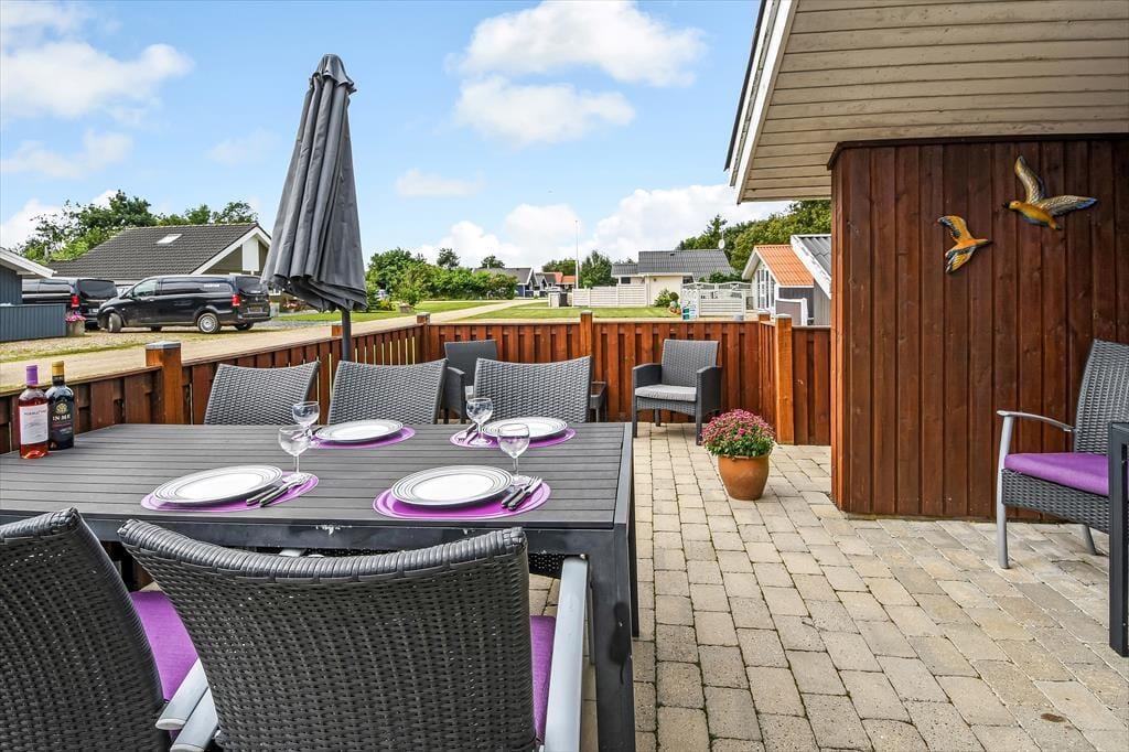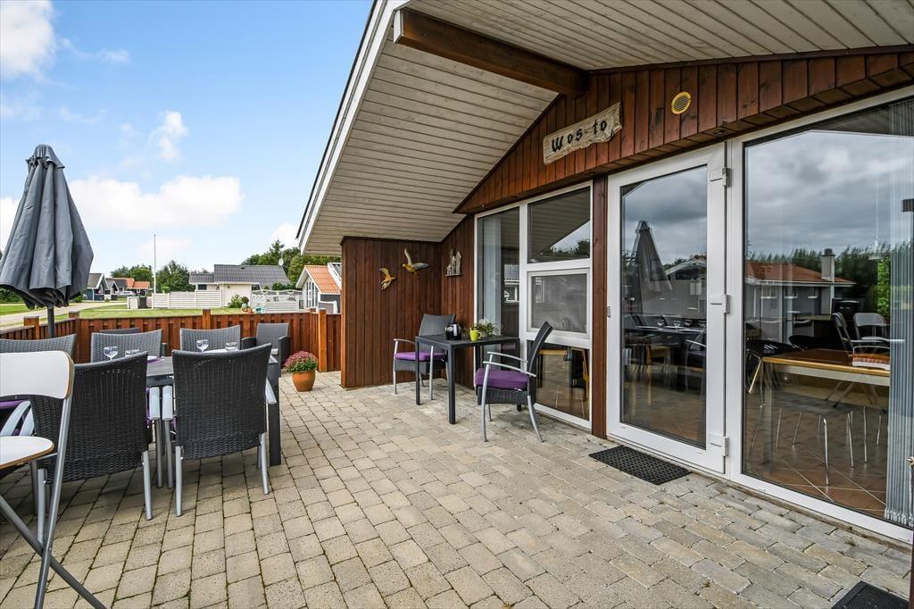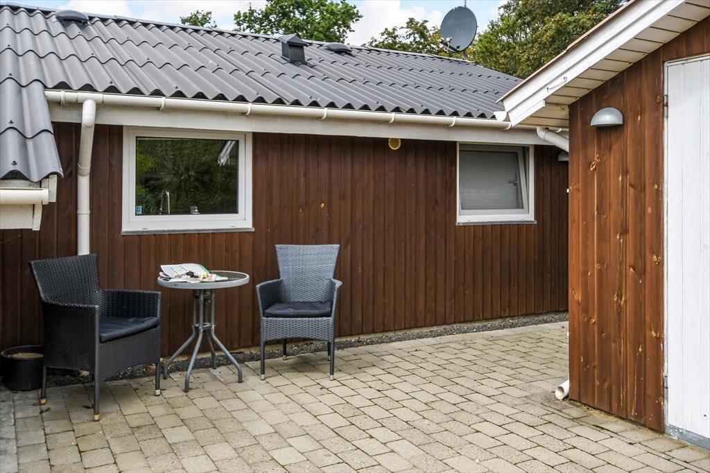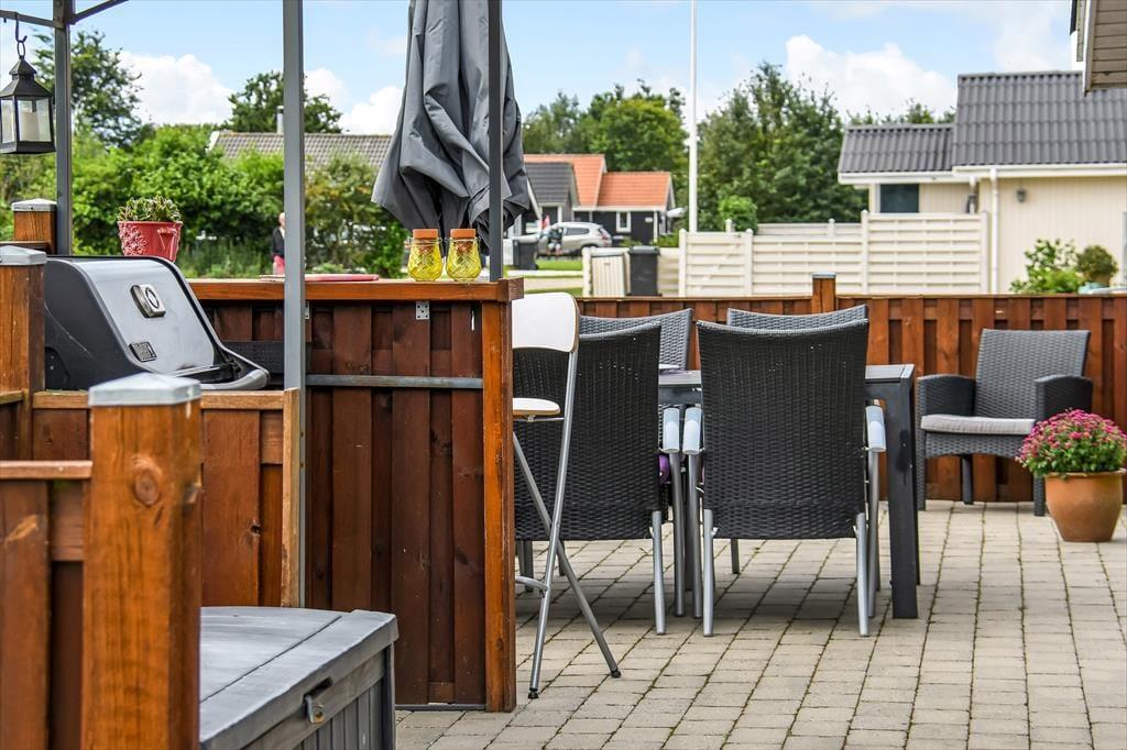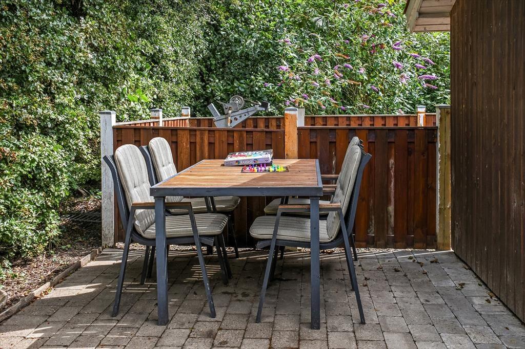 Udenfor er der store, pæne terrasser på begge sider af huset, samt en siddekrog i forlængelse af indkørslen. Bag huset kan I nyde den lune aftensol, mens I nyder aftenkaffen eller aftensmaden, mens I får fuld sol hele dagen på den terrasse, der ligger i forlængelse af stuen.