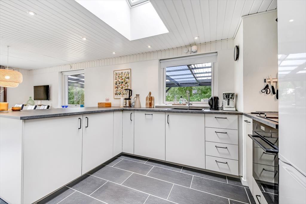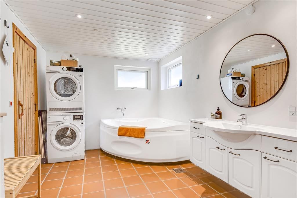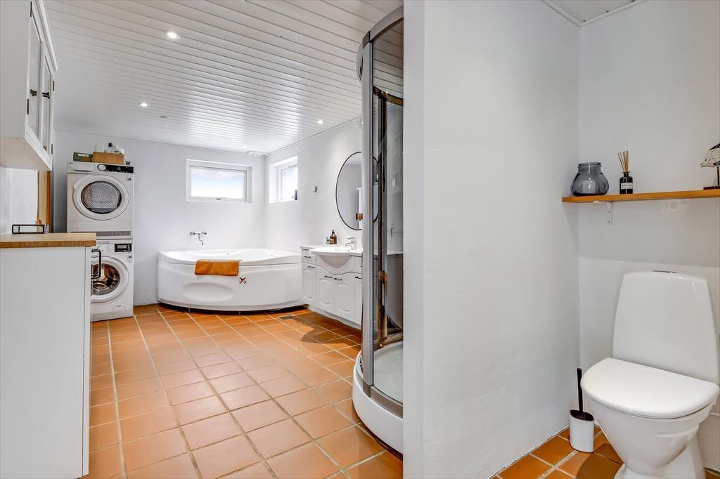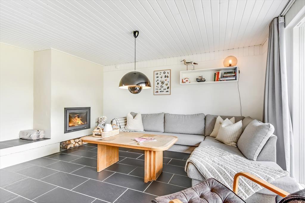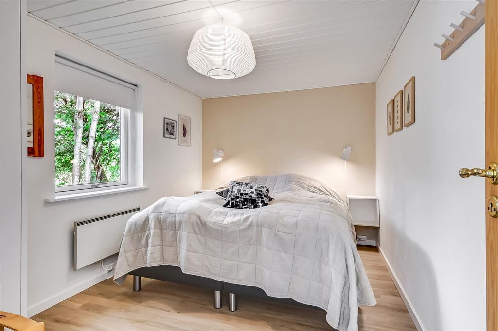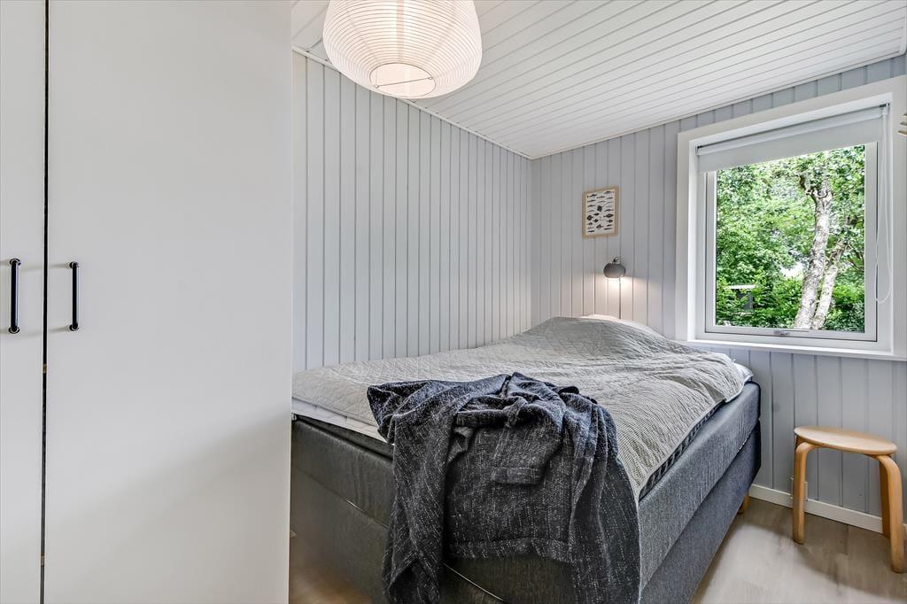Alt i alt får du og dine kære en skøn ramme om ferielivet her på adressen. Sommerhuset blev grundigt renoveret i 2024, og der er hele 124 m2 at brede sig på, så selv hvis I er seks personer samlet, kan I have følelsen af at have godt med plads omkring jer. Når det er sengetid, har I fire soveværelser at fordele jer på. Det ene ligger lidt for sig – og lige ved siden af det største af husets to badeværelser. Her er der for øvrigt ikke bare en bruser, men også et spabad og en sauna, så hvis du drømmer om at fylde ferien med wellness og afslapning, kan det passende foregå her. Det er for øvrigt rart at opholde sig i stuen, der er et indbydende rum med integreret køkken, indbygningspejs nær sofaen og en dejligt lys atmosfære.