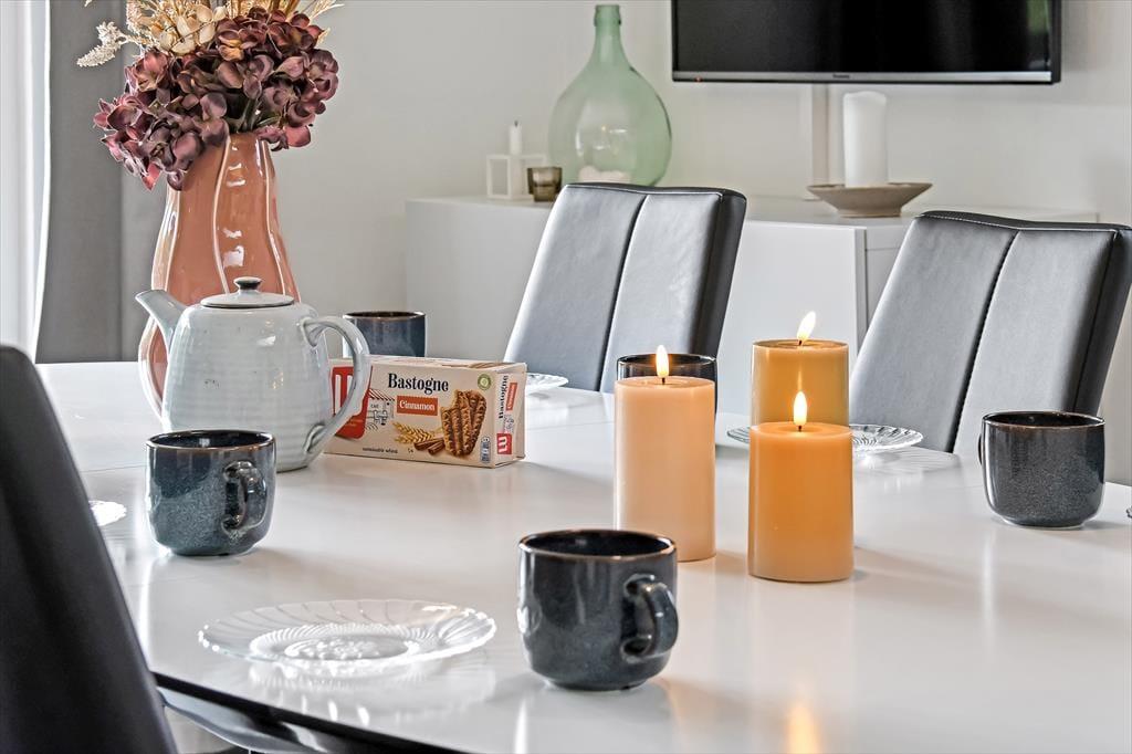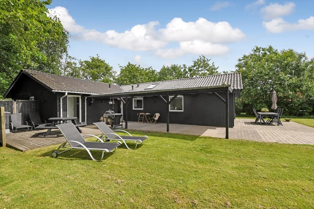 Det gode solskinsvejr og de grønne omgivelser kan nydes i fulde drag, når du slapper af på husets terrasser. Der er flere at vælge imellem – inklusiv en overdækket opholdsplads, hvor du og dine kære kan blive siddende til langt ud på aftenen, selvom duggen for længst er faldet. Hvis der er nogen i familien, der hellere vil hoppe på trampolin frem for at slænge sig i en liggestol, er der mulighed for det. Og I kan også alle deltage i en hurtig fodboldkamp eller en dyst i kongespil på græsplænen, inden det er tid til at tage ud for at udforske Bork Havn og omegn.