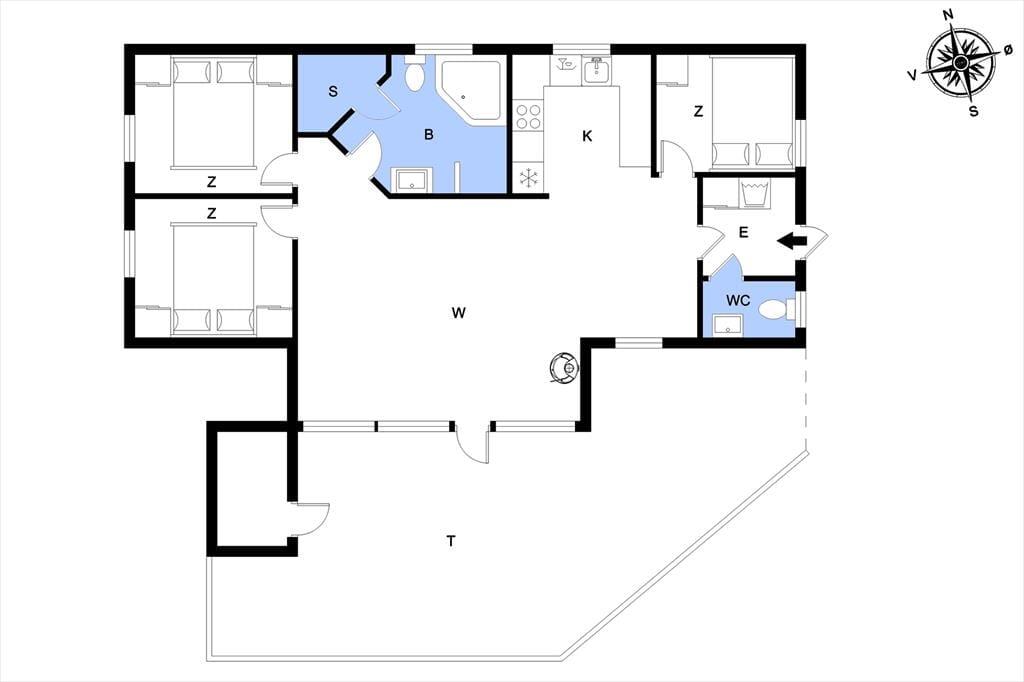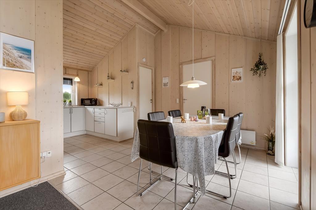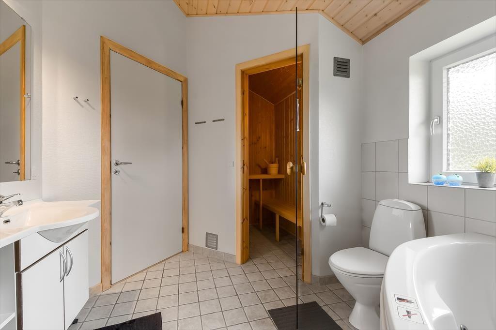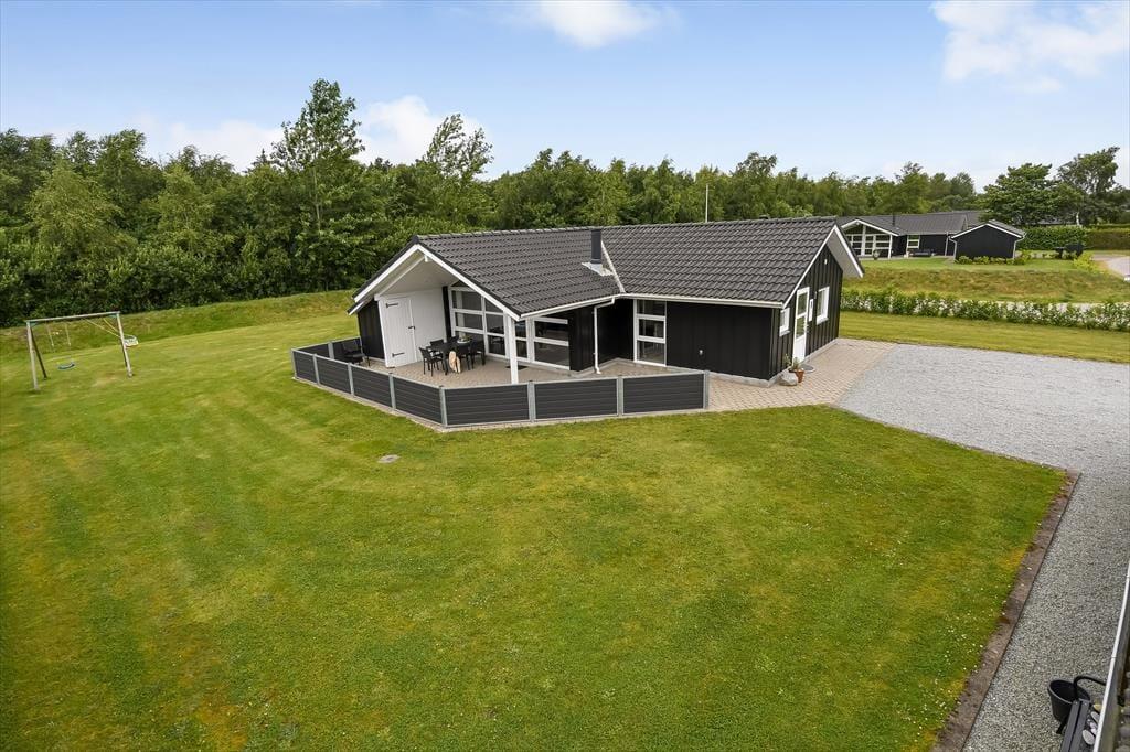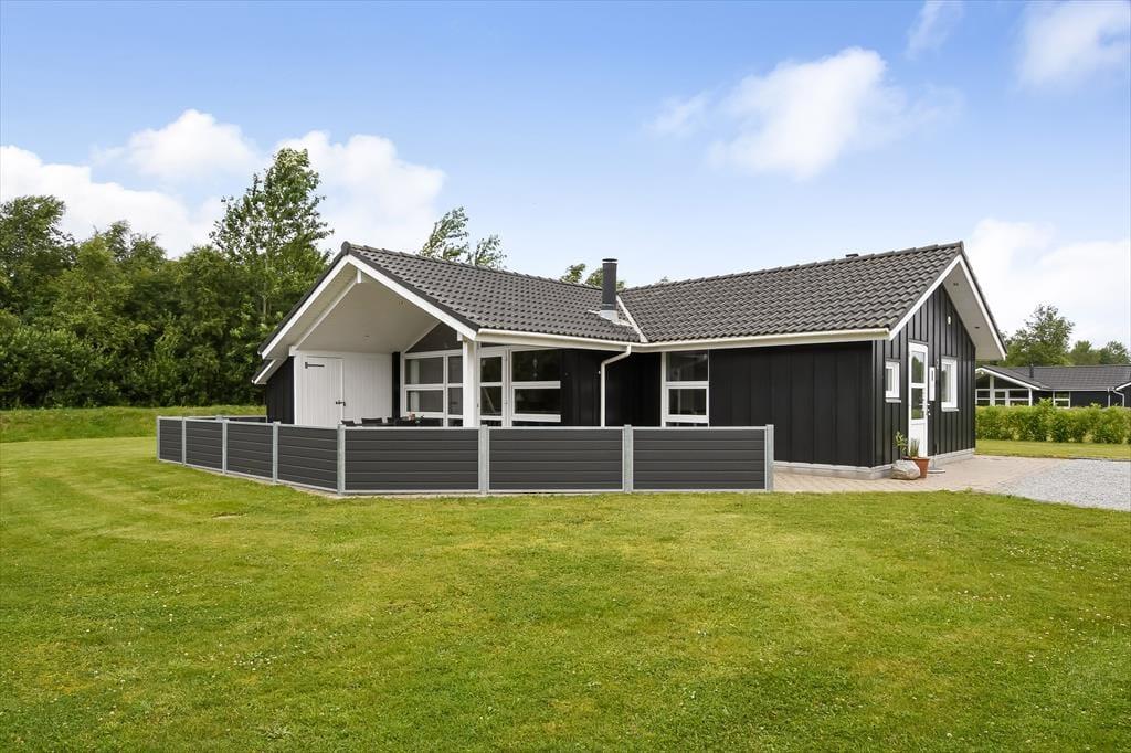 Sommerhuset er et kønt og velindrettet eksemplar, der har loft til kip og lys træbeklædning på væggene såvel som brændeovn og komfortabelt interiør. Hver eneste af husets 87 m2 er godt udnyttet, og der er sengepladser til seks personer fordelt på tre soveværelser, så hvis du gerne vil invitere bedsteforældrene eller børnenes yndlingsmoster med på ferie, kan det sagtens lade sig gøre. Et gæstetoilet ligger på praktisk vis lige ved entréen, mens det store badeværelse byder på både spabad og sauna. Det er sikkert lige noget for dig, når der rigtigt skal slappes af – med mindre du hellere vil koble af med at lave mad i det åbne køkken eller flade ud med en god film i stuens sofaafdeling.