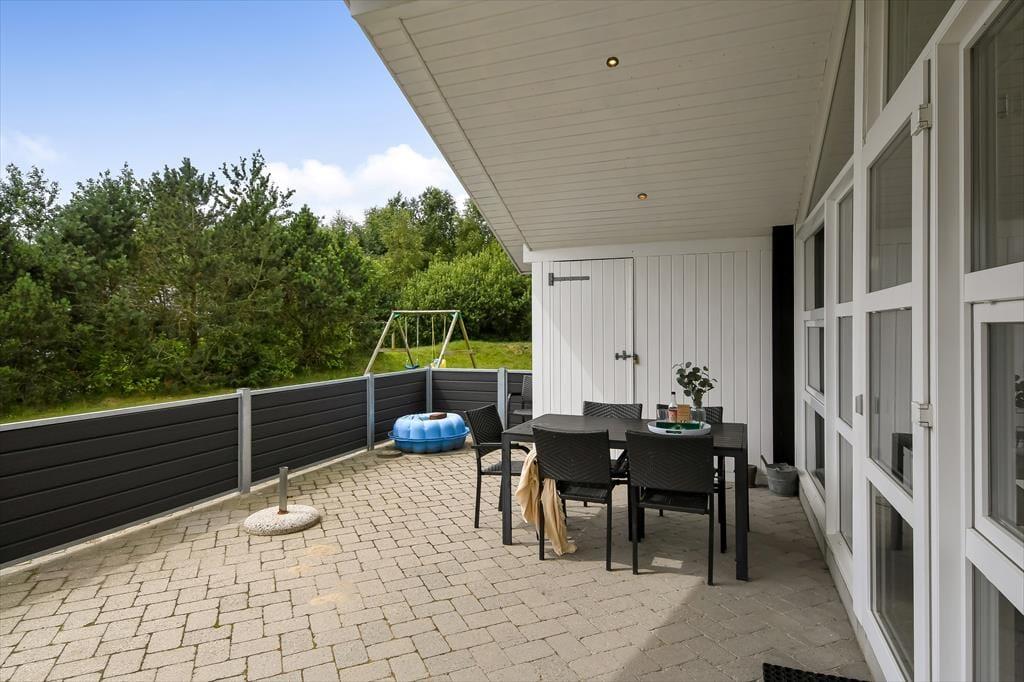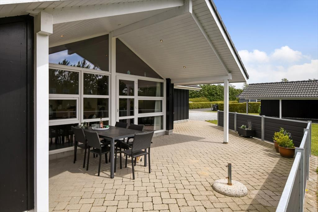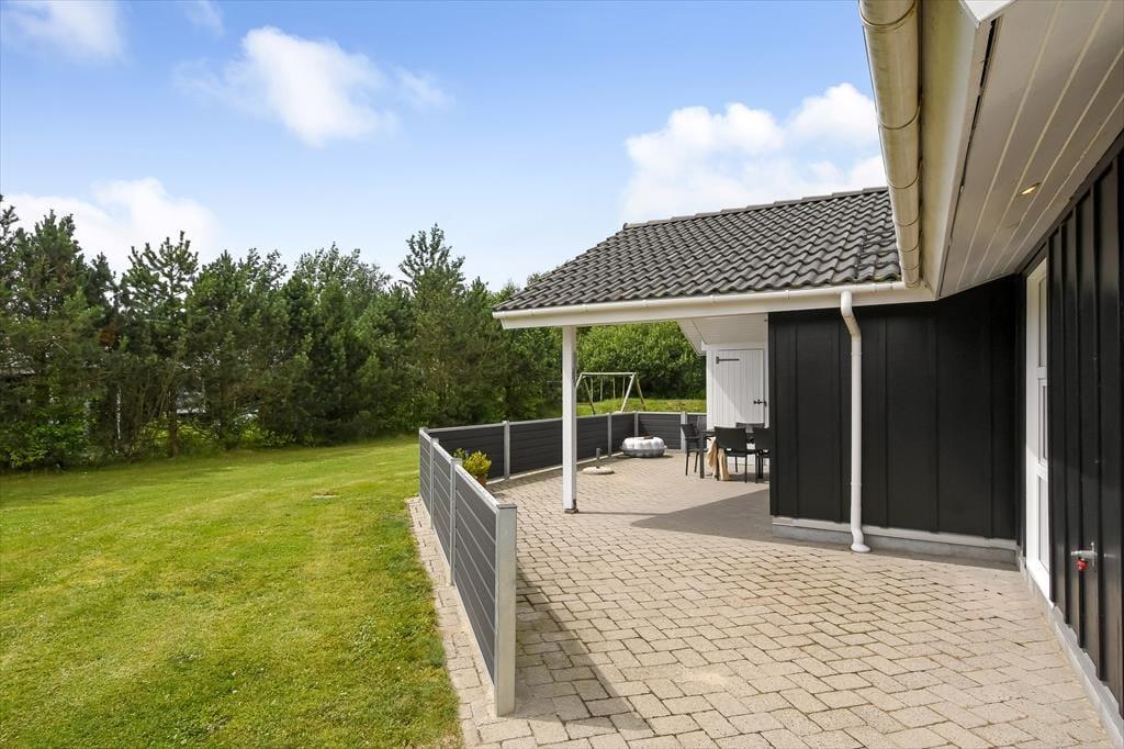 Udearealerne er gode på Fasanvænget 2, for grunden er med sine 1200 m2 dejligt stor, og der er gynger og sandkasse i haven til børnene, mens hele familien kan hygge sig med at spille havespil og lege fangeleg på den grønne græsplæne. En rolig pause i solen skal der selvfølgelig også være plads til, og den kan passende foregå på den store og delvist overdækkede terrasse, der breder sig syd for sommerhuset. Her er der havemøbler og en parasol til rådighed, og hvis du elsker at grille, kan du allerede nu begynde at overveje, hvad du skal forkæle dine kære med af frisktilberedte, lokale lækkerier.
