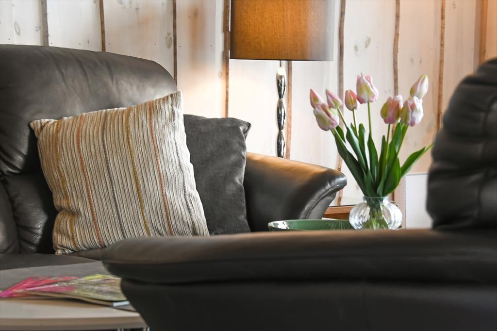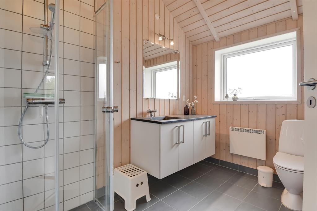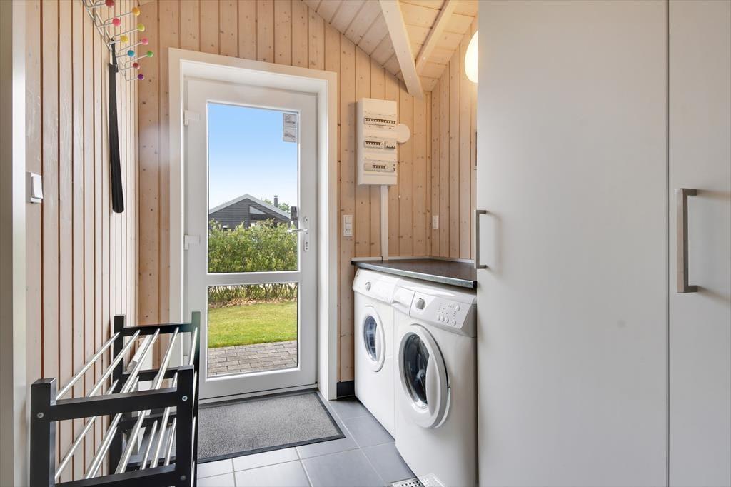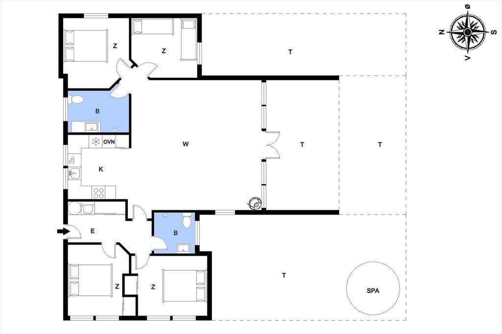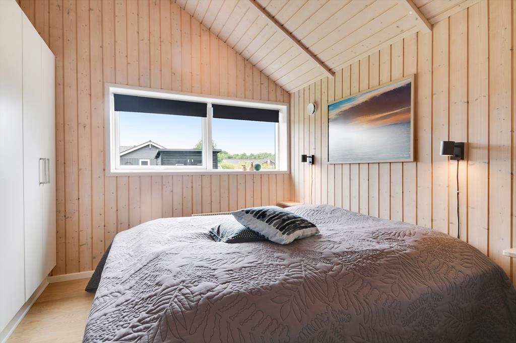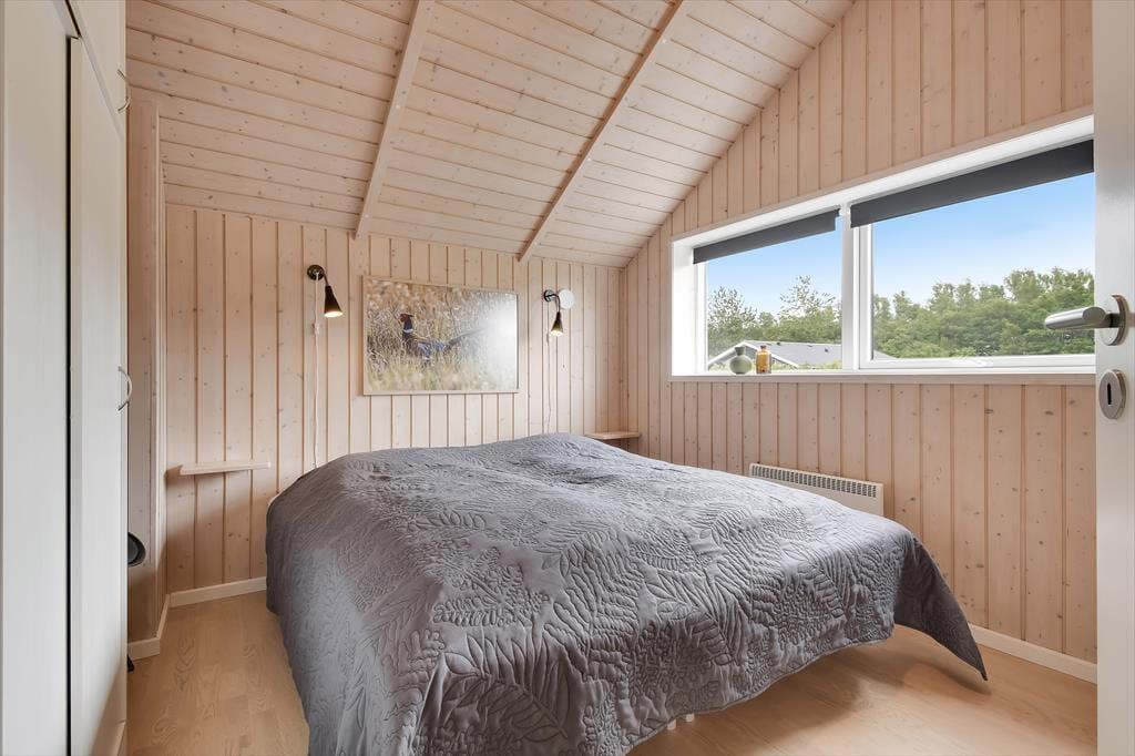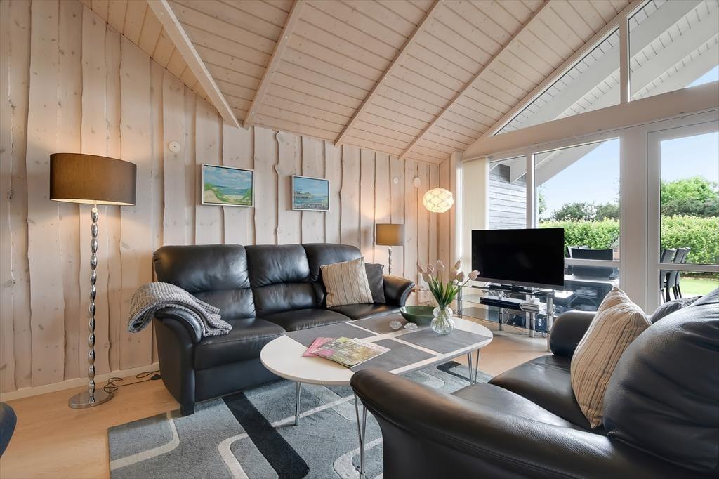 Sommerhuset er med sine 111 m2 dejligt rummeligt, og takket være den veludformede planløsning kan bedsteforældrene eller vennerne sagtens komme med familien på ferie. På de fire soveværelser er der sengepladser til otte personer, og værelserne er endda opdelt i to afsnit med hver sit badeværelse, så to børnefamilier kan ligeledes sagtens bo her sammen. Centralt i huset ligger køkken og stue forenet, og her er der skruet op for hyggestemningen, for der er brændeovn, fladskærms-tv, en komfortabel sofaafdeling og et langt spisebord, hvor I alle kan samles til en god frokost eller en overdådig middag med både forret og dessert.