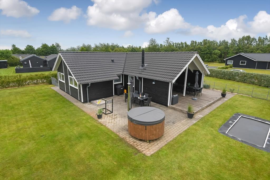 Både børn og voksne kan se frem til en skøn ferie på Duevænget 29 i Bork Havn. Prøv bare at se den skønne have, der breder sig rundt om dette moderne sommerhus: Her er der trampolin til de yngste og et lækkert vildmarksbad, hvor du kan læne dig tilbage under stjernehimlen med din bedre halvdel – og hele familien kan samles til grillmiddage og hygge på det store terrassemiljø. Det er ferieliv, når det er allerbedst!