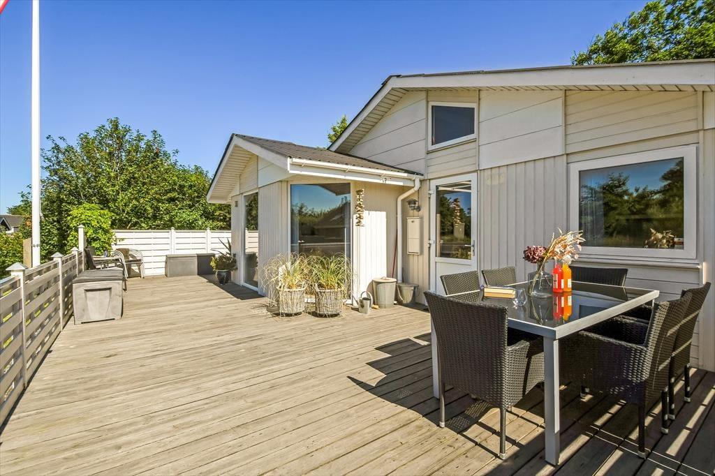 På solbeskinnede og sommervarme dage er det intet mindre end herligt at tilbringe tiden i det fri. Grunden er med sine 225 m2 ikke specielt stor, men pladsen er godt udnyttet, så der er en lille græsplæne og en grusbelagt indkørsel foruden grøn randbeplantning, som skærmer af mod syd og vest. Sidst, men ikke mindst, råder du over en skøn terrasse, der er helt aflukket og har flere gode opholdspladser mod øst, syd og vest. Hvis solen bliver for hed, kan du sætte dig ind under parasollens skygge, og sidst på dagen handler det bare om at tænde for grillen, hvis du vil lave mad under åben himmel.