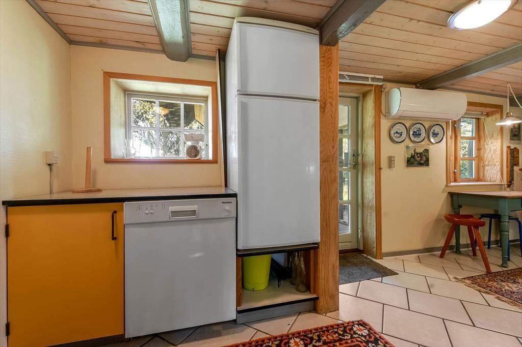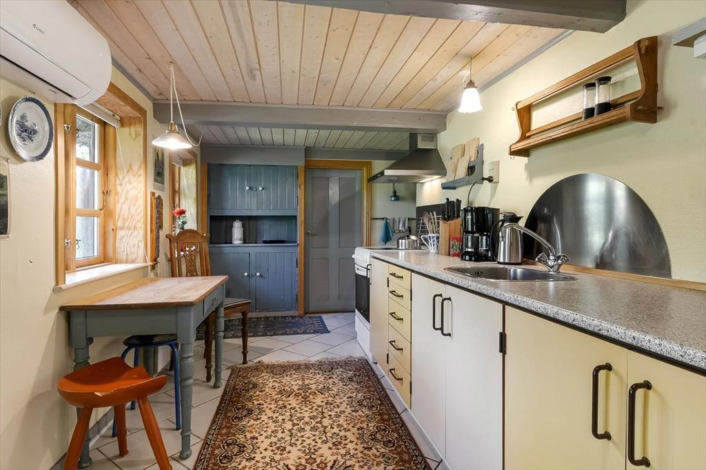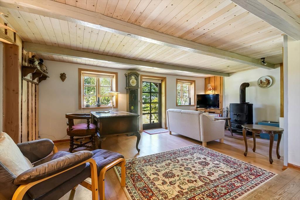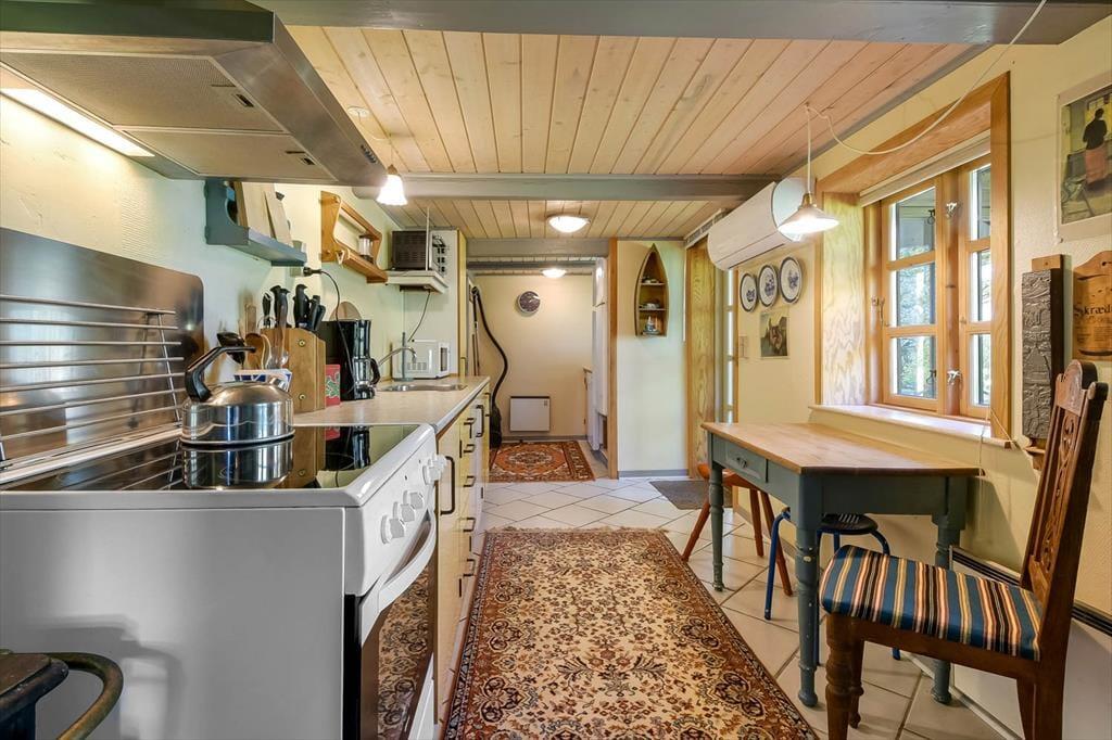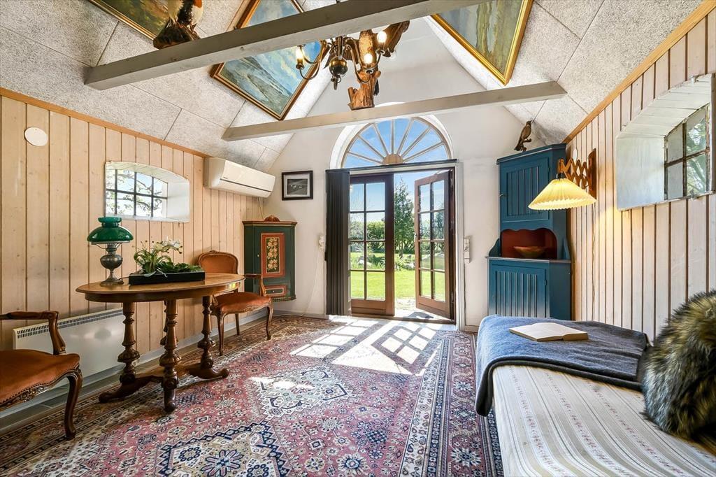 Sommerhuset er hyggeligt indrettet med en autentisk charme og lavt til loftet, der får dig til at sænke skuldrene i samme øjeblik, du træder ind. Her er ikke tale om moderne minimalisme, men om varme farver, personlige detaljer og en stemning, der inviterer til afslapning. I stuen er der god plads til at slænge sig med en kop kaffe og en bog, mens brændeovnens knitren skaber hygge, når mørket falder på. Når natten falder på, kan du falde i søvn til stilheden og vågne til morgensolens bløde stråler gennem vinduet – en oplevelse, som både to mennesker og to hunde vil sætte pris på.