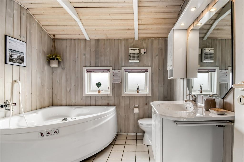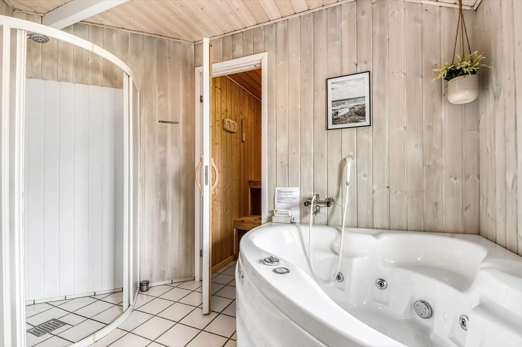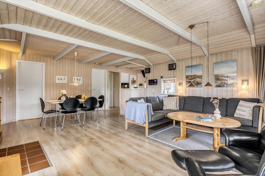 Dette hyggelige sommerhus er et oplagt valg, hvis du gerne vil invitere hele familien eller gode venner med på ferien uden at gå på kompromis med hverken plads eller komfort. Med tre soveværelser, en hyggelig alkove og to badeværelser kan I sagtens være op til otte personer – og en hund er sågar også velkommen. Huset byder for øvrigt på både spabad og sauna, så du og dine kære kan slappe helt af efter en dag på surfbrættet eller rundt i Bork Havn og omegn.