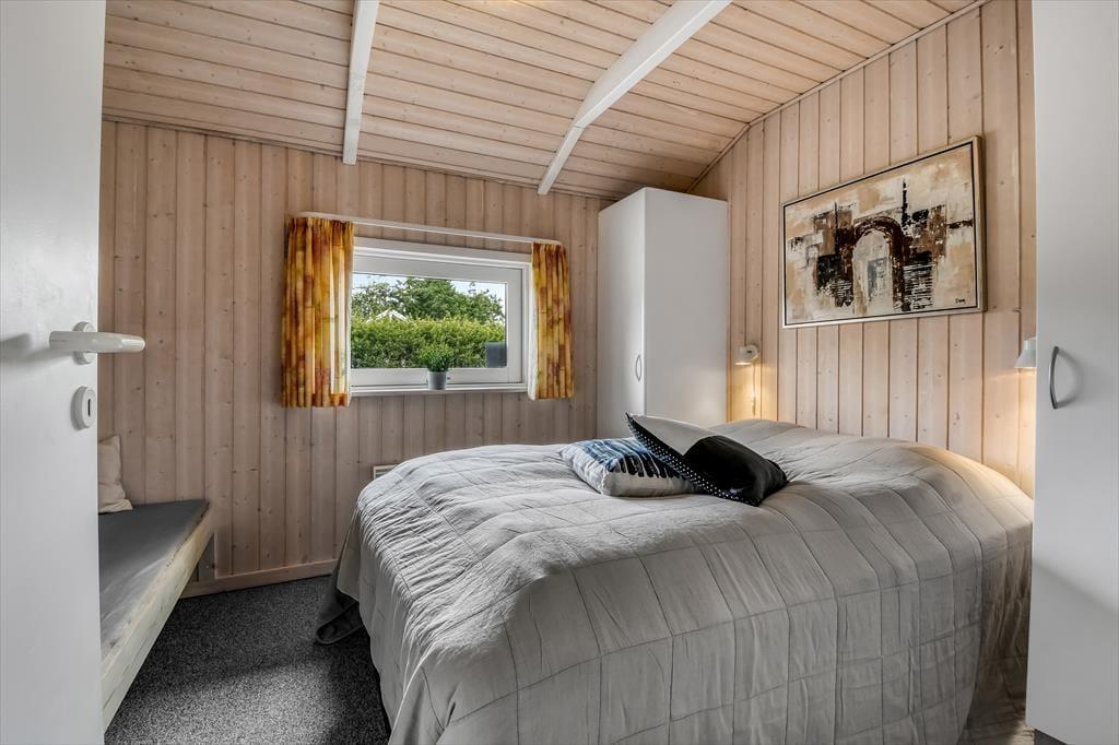 Sommerhuset ligger i bunden af et lukket vænge, så du kan nyde de fredelige omgivelser og slappe helt af sammen med dine kære. Og selvom du bor roligt, har du samtidig nem adgang til alle de gode tilbud i Bork Havn – lige fra seværdigheder som Bork Vikingehavn og Bork Legeland til gode spisesteder, minigolfbanen og den maritime atmosfære ved selve havnen. Ved byens største strand kan du prøve kræfter med windsurfing eller bare nyde udsigten over Ringkøbing Fjord inde fra land, og hvis du vil besøge Vesterhavet, bor du kun en kort køretur fra Nymindegab Strand og hele den smukke kyststrækning.