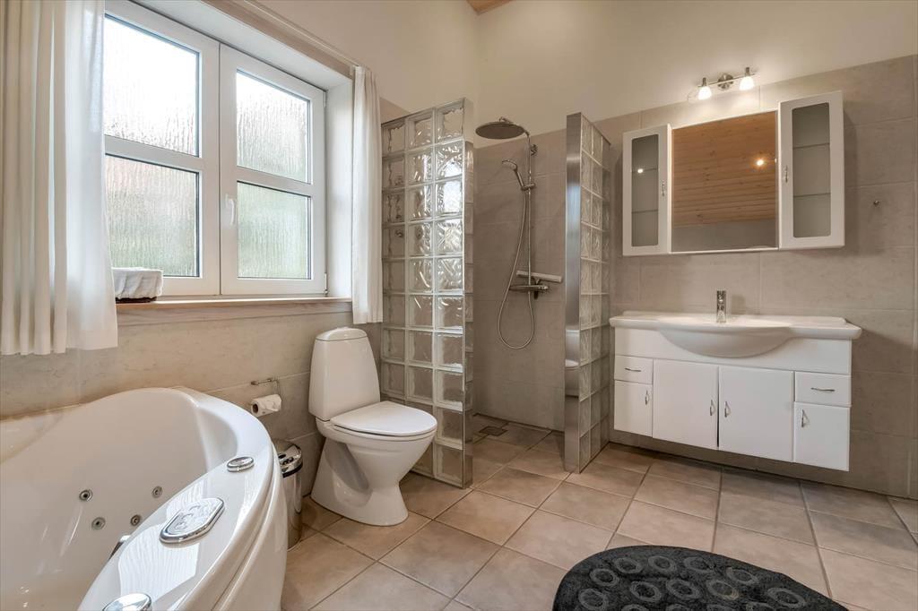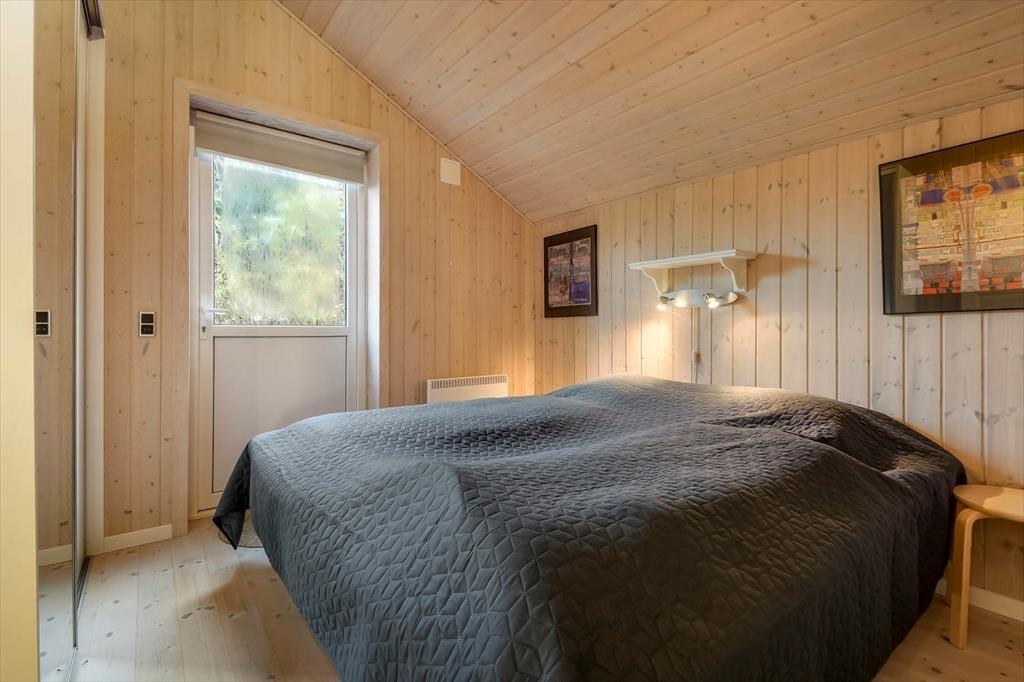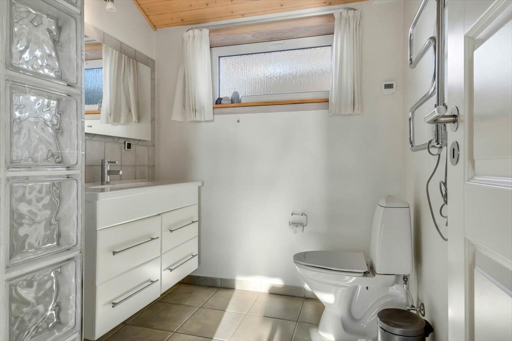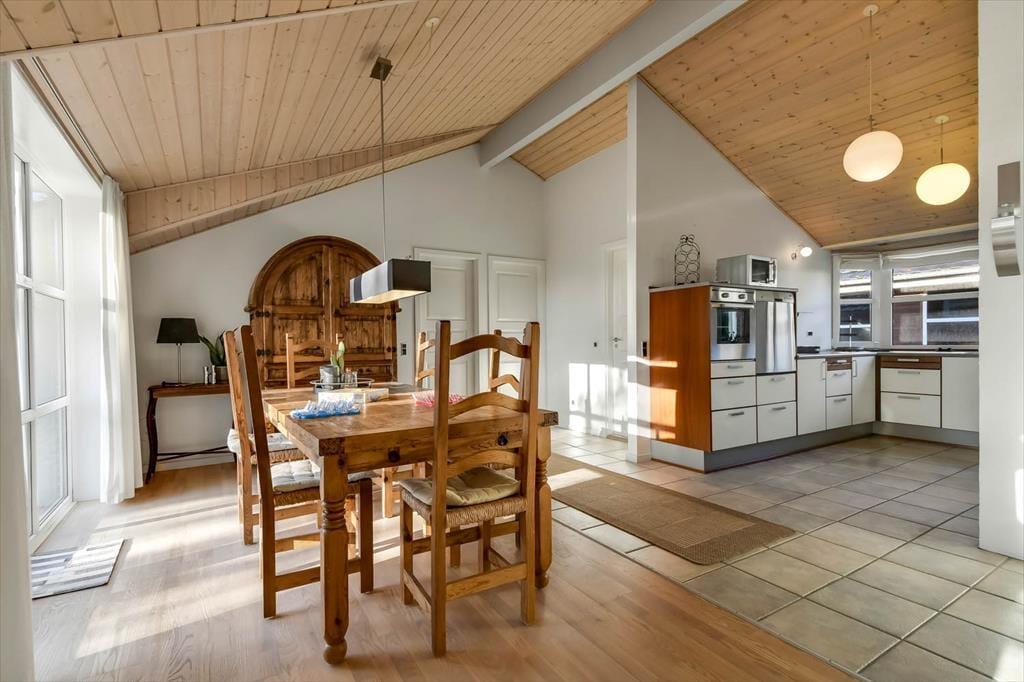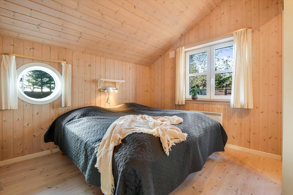 Indenfor bliver du mødt af et dejligt, lyst rum, hvor store vinduespartier lader lyset strømme ind og skaber en åben og luftig atmosfære. Her er et opholdsrum, der fungerer som ferieboligens samlingspunkt, og med brændeovnens varme og det hyggelige sofahjørne er det nemt at finde ro, uanset om du vil fordybe dig i en bog eller nyde en god film. Det åbne køkken ligger i direkte forbindelse med spiseområdet, så du kan holde samtalen i gang, mens aftensmaden bliver tilberedt. Huset byder på tre soveværelser, som alle inviterer til en god nattesøvn, og badeværelset er moderne indrettet med god plads til både afslapning og praktiske gøremål.