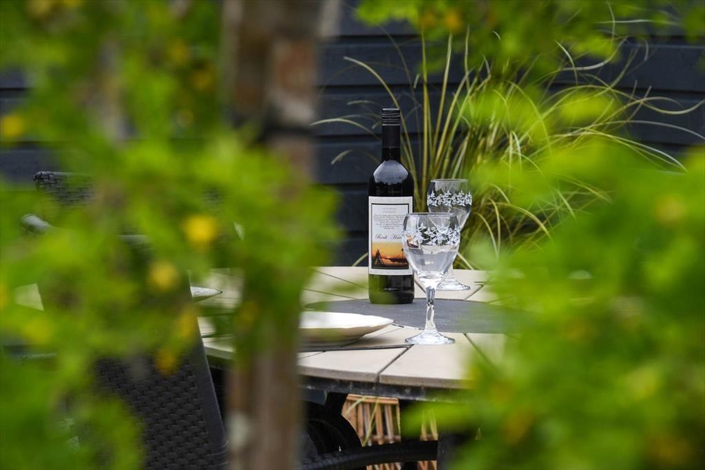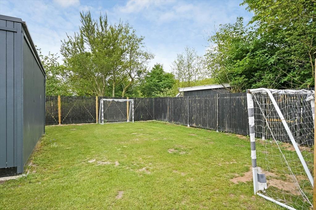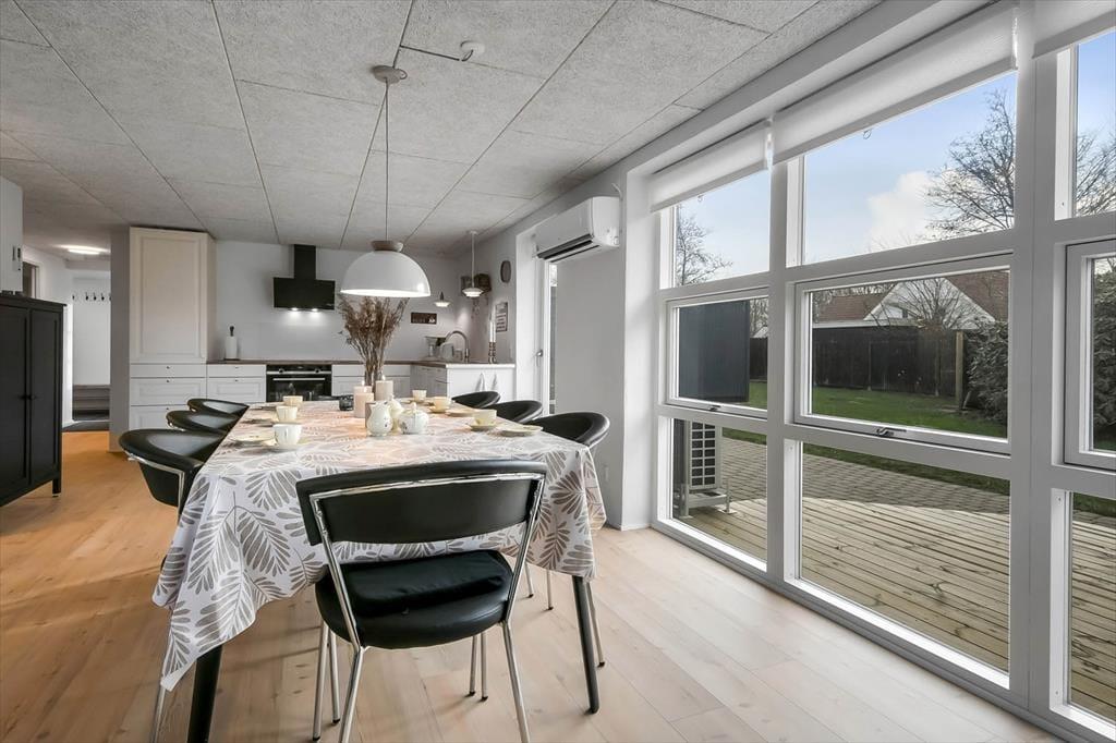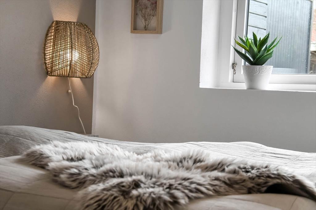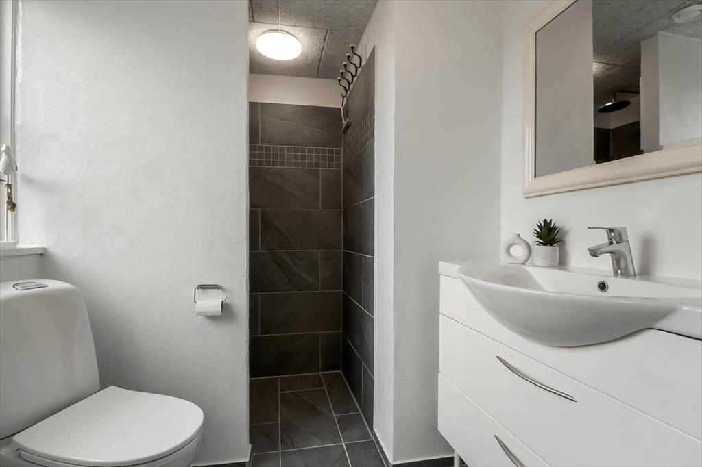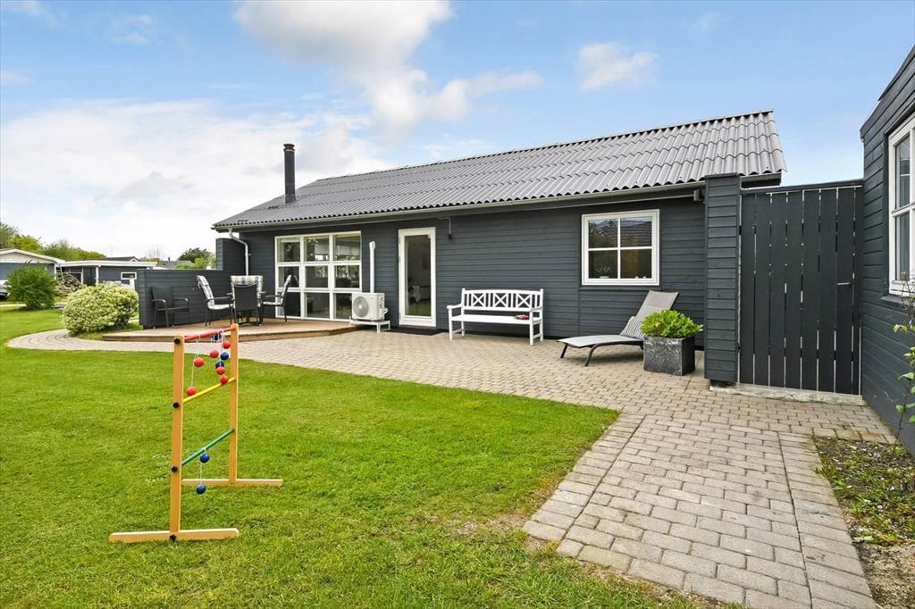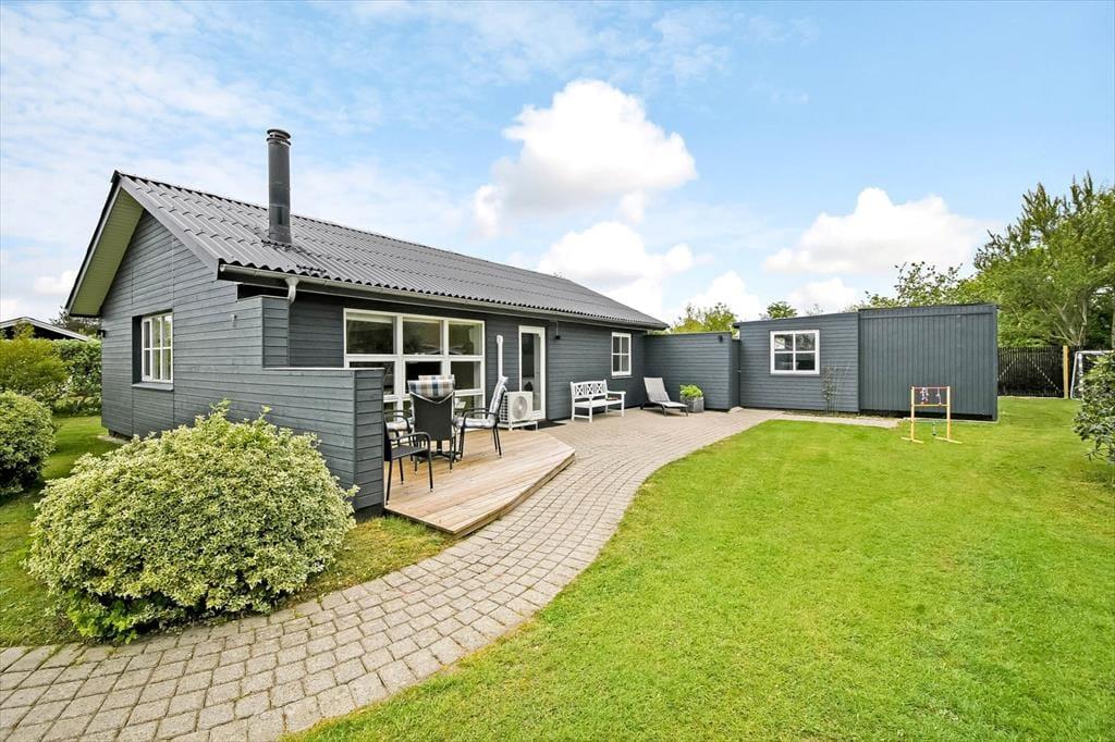 Udenfor venter en skøn lukket gårdhave, hvor du kan nyde solen i fuldkommen ro og mag. De to terrasser giver mulighed for at følge solens gang hele dagen – start morgenen med en kop kaffe på den ene terrasse og afslut dagen med en lækker grillmiddag på den anden. Børnene kan lege trygt på græsplænen, mens de voksne slapper af med en god bog eller et glas vin.