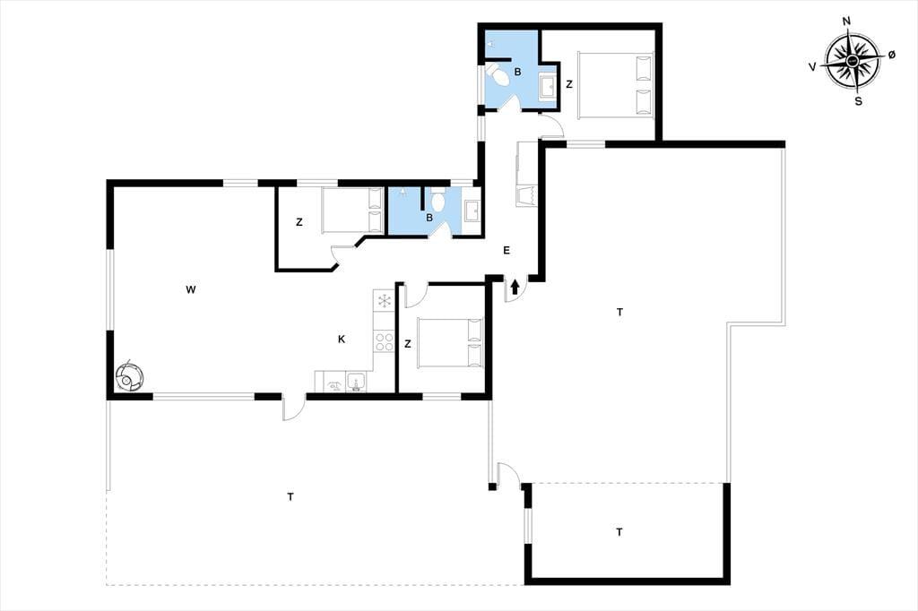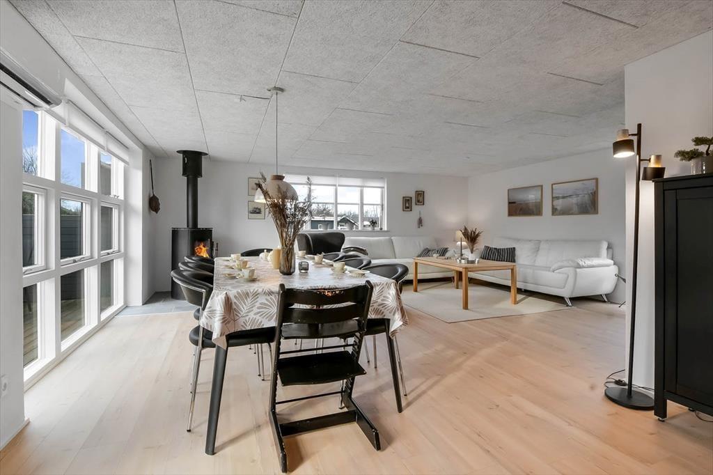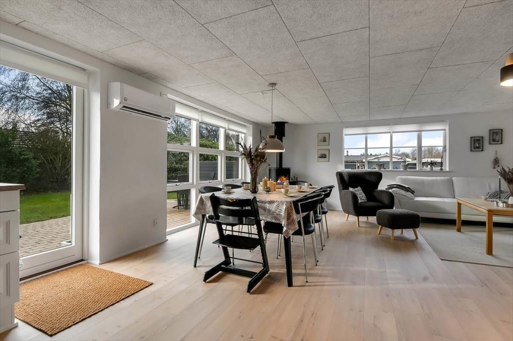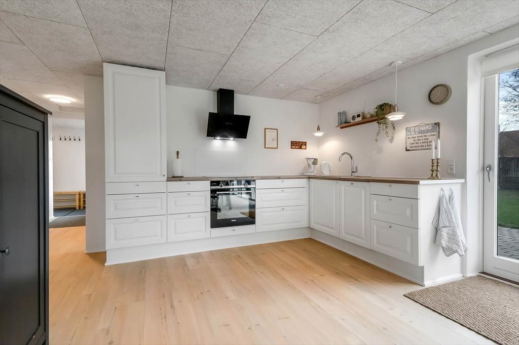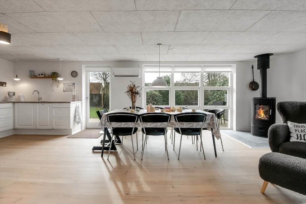 Når du træder ind i dette lyse og indbydende sommerhus, mødes du af en rummelig stue med brændeovn, der skaber en varm og hyggelig atmosfære på kølige dage. Det åbne køkken er fuldt udstyret og ligger i direkte forbindelse med stuen, hvilket gør det nemt at være sammen, selv når der tilberedes måltider. Huset rummer tre soveværelser med dobbeltsenge, ideelt til en familie eller vennegruppe samt to badeværelser.