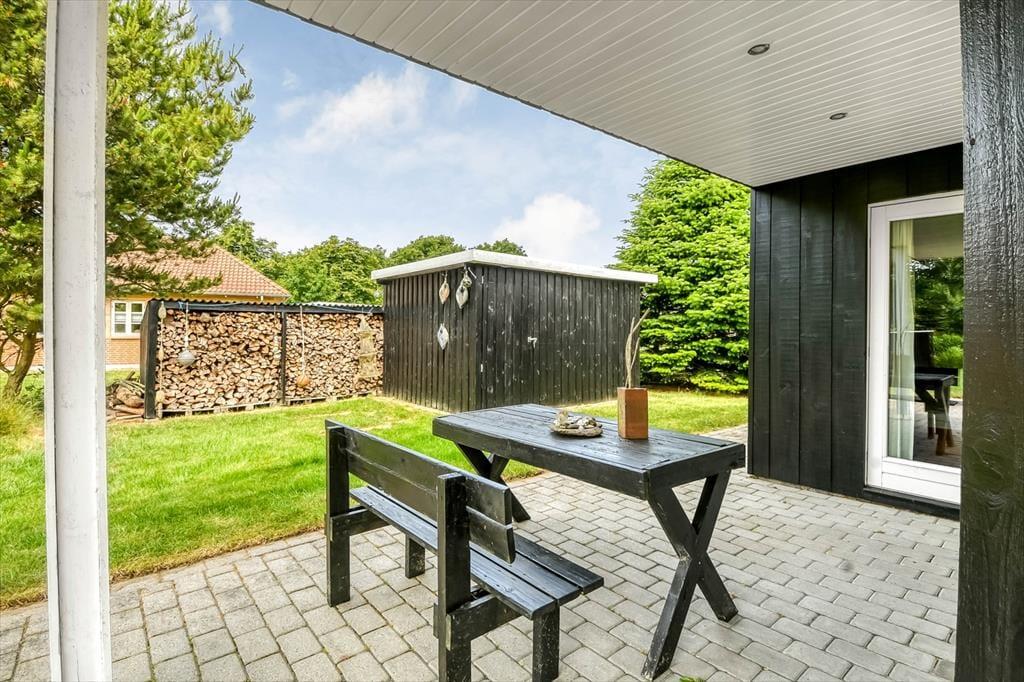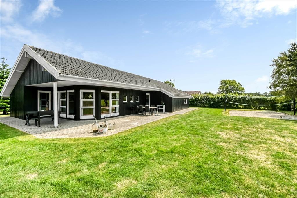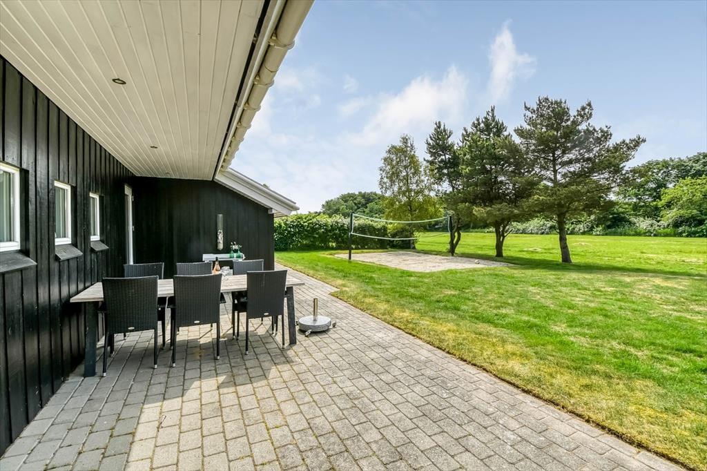 Sommerhusets store grund er en oase for både store og små. Her kan I tage en frisk dyst på den private volleyballbane, hvor grin og gode stunder hurtigt finder vej. Den grønne have omkranses af hæk og buske, som sikrer jer masser af privatliv, og terrassen inviterer til afslappende stunder i solen eller hyggelige grillaftener. Fra haven kan I nyde den fredfyldte udsigt til det omkringliggende, grønne område, der strækker sig bag grunden – et perfekt sted at lade tankerne flyve og bare være til stede i nuet.