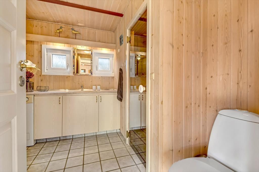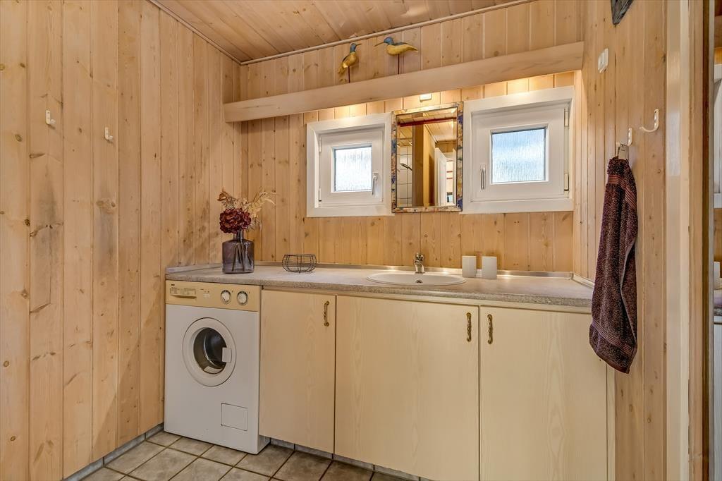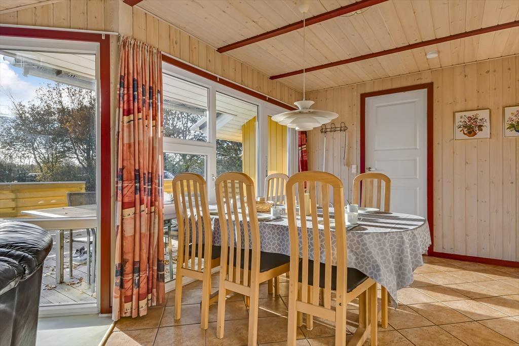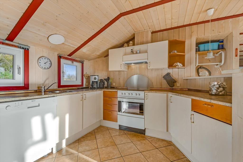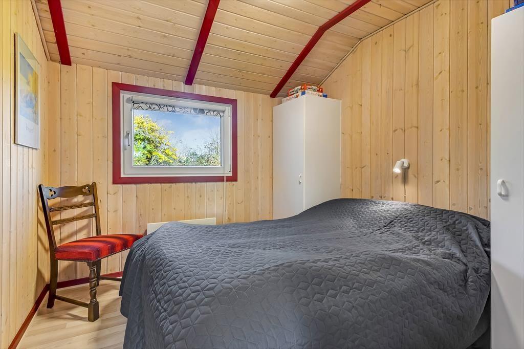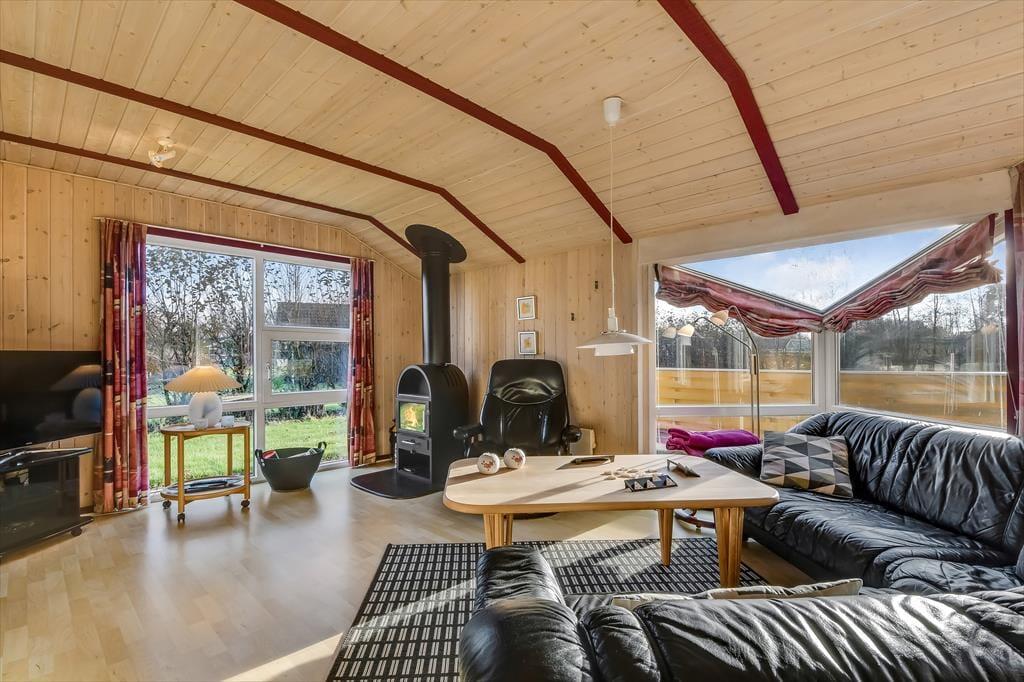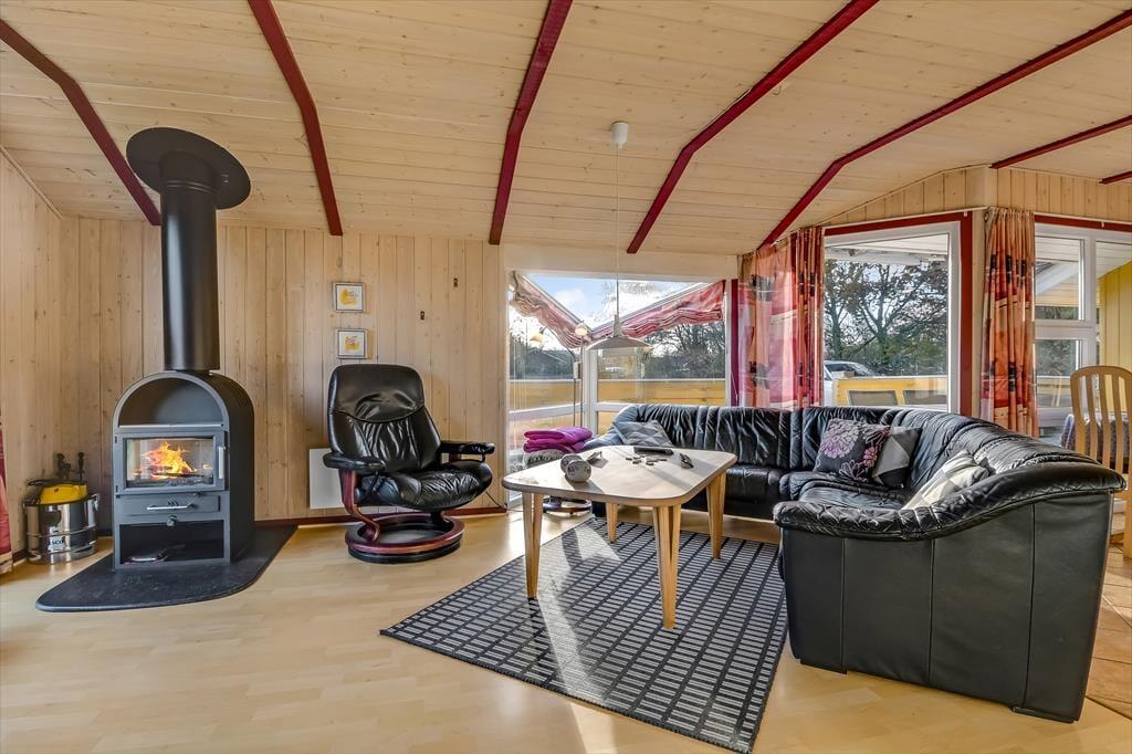 Træd ind i dette lyse sommerhus, der straks får dig til at føle dig hjemme. Stuen er indrettet med store vinduespartier, der inviterer naturen indenfor og skaber en lys og venlig atmosfære. Brændeovnen står klar til at sprede varme og hygge på kølige aftener, mens den åbne forbindelse mellem køkken og stue gør det nemt at samles om madlavning og gode samtaler. Huset rummer tre komfortable soveværelser og et rummeligt badeværelse, der med sin praktiske indretning gør det nemt at holde ferie i ro og mag.