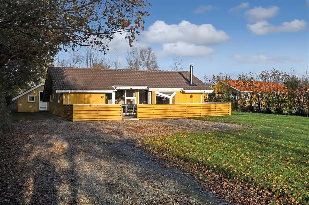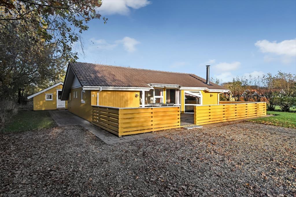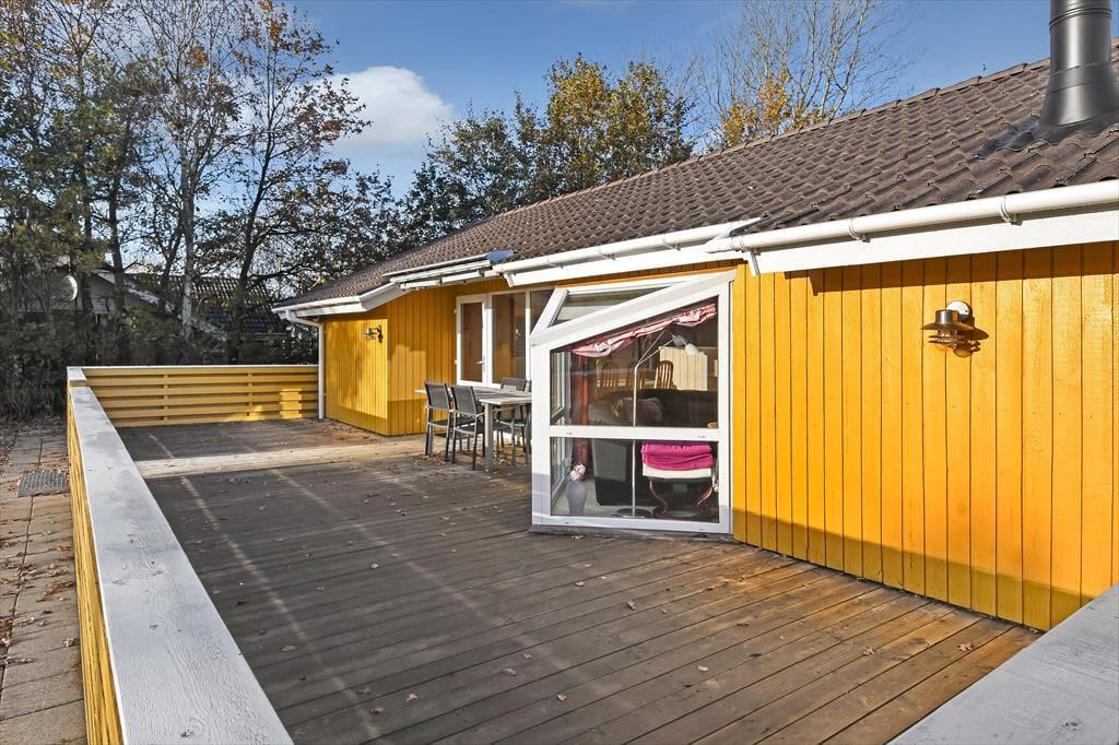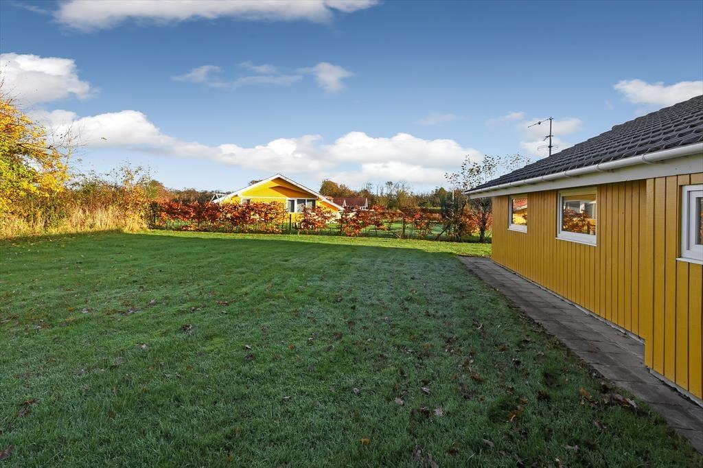 Sommerhuset omkranses af en stor terrasse, der indbyder til at nyde solen fra morgen til aften. Start dagen med en kop kaffe i de komfortable havemøbler, og afslut med en grillaften, hvor hele familien kan samles omkring det store havebord. Haven er rummelig og perfekt til leg og boldspil for både børn og voksne, mens den omkransende beplantning skaber en fredfyldt og privat atmosfære. På de lune sommeraftener kan du høre bølgernes sagte brusen fra fjorden og lade freden sænke sig.