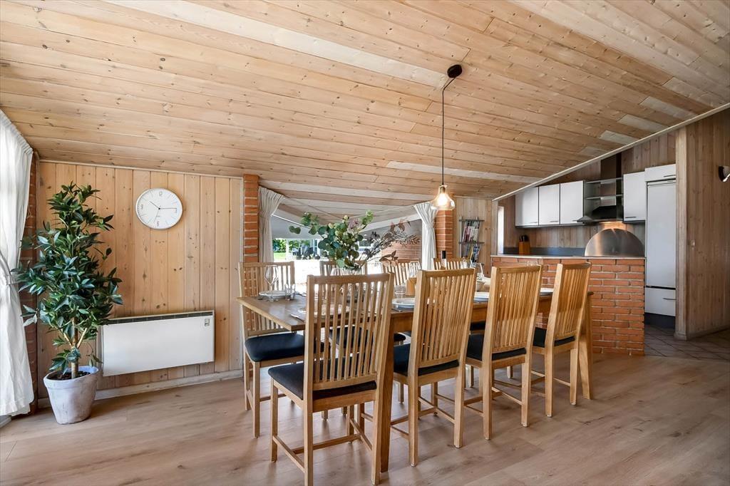 Træd indenfor i det hyggelige sommerhus, hvor en varm og indbydende atmosfære møder dig. De rustikke træelementer og den hyggelige indretning understreger husets charme, mens brændeovnen spreder en behagelig varme i stuen. Her kan du nyde roen med en god bog, et brætspil med familien eller en hyggelig filmaften. Køkkenet ligger i åben forbindelse med opholdsrummet, så du kan være med i samtalerne, mens du tilbereder dagens måltider. Soveværelserne byder på komfortable rammer for en god nats søvn, og badeværelset er funktionelt indrettet med alt det nødvendige.
